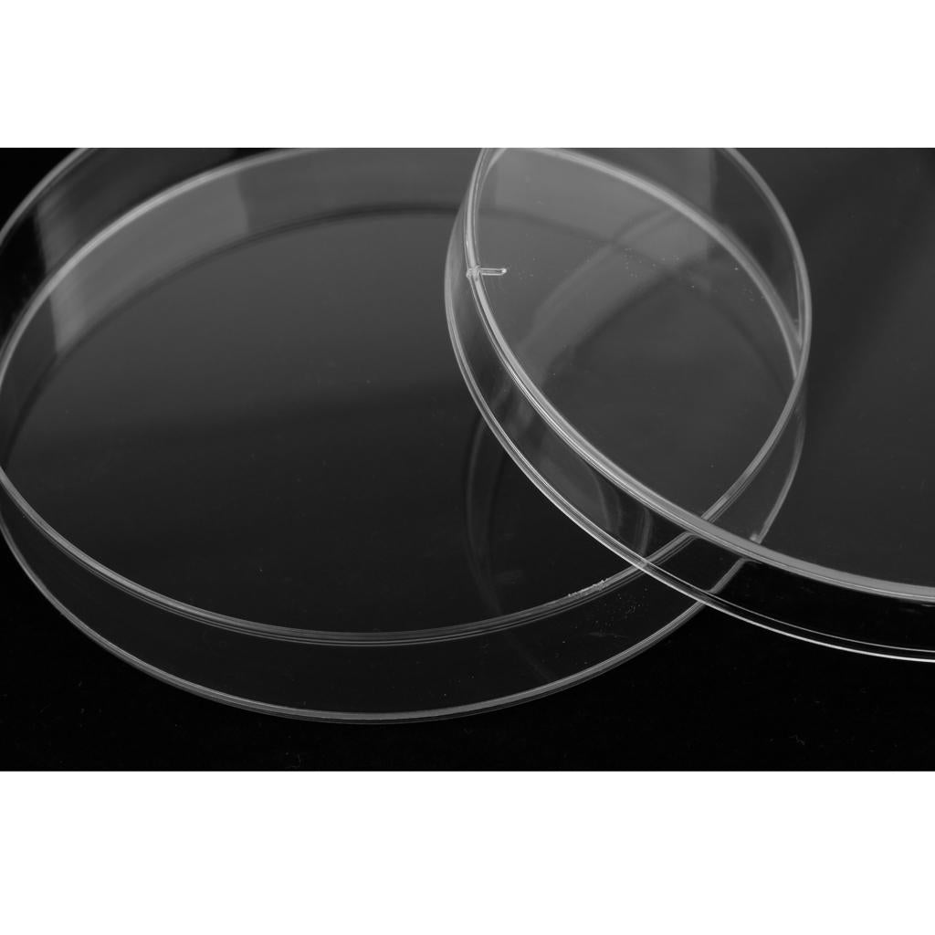 Clear, soda lime plastic petri dish with cover for culturing cells and other scientific applications