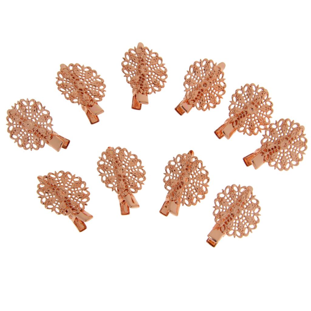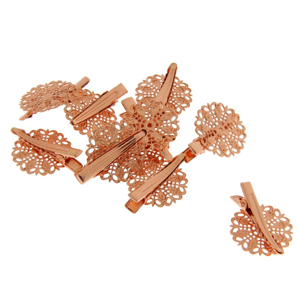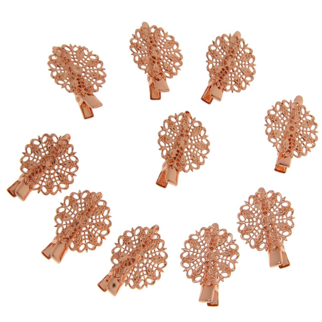 10 Vintage DIY Hair Clips Barrettes Pins Grips with Teeth Flower Rose Gold