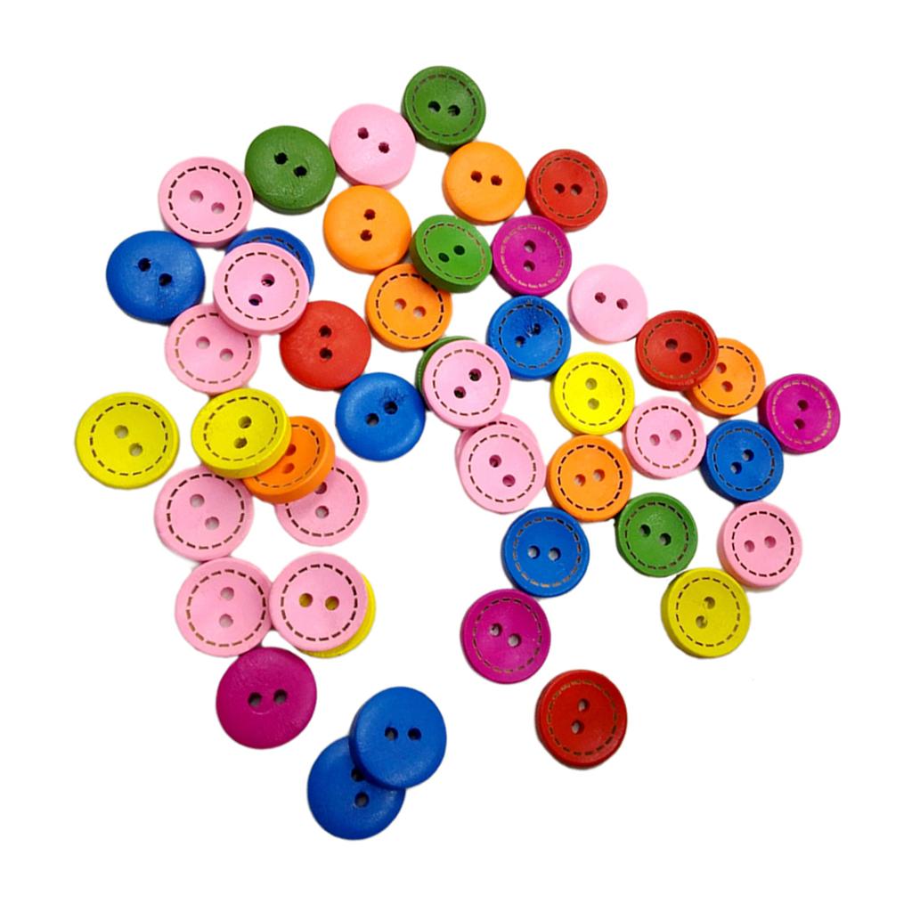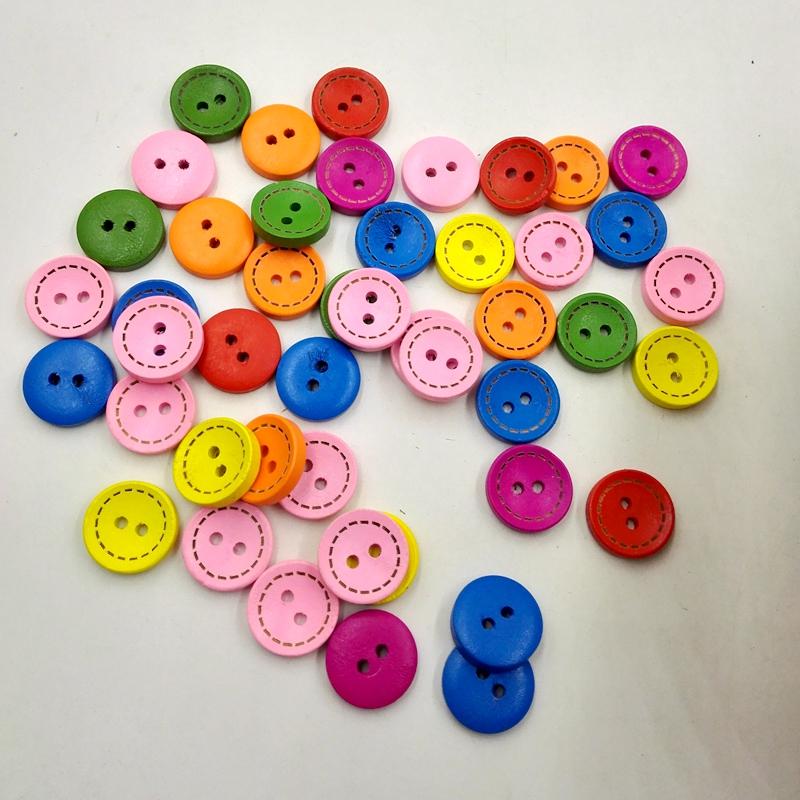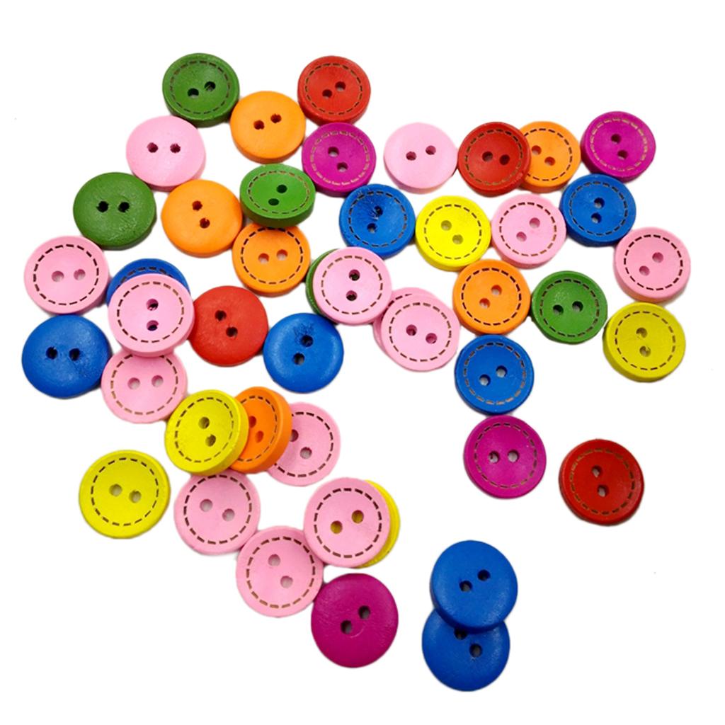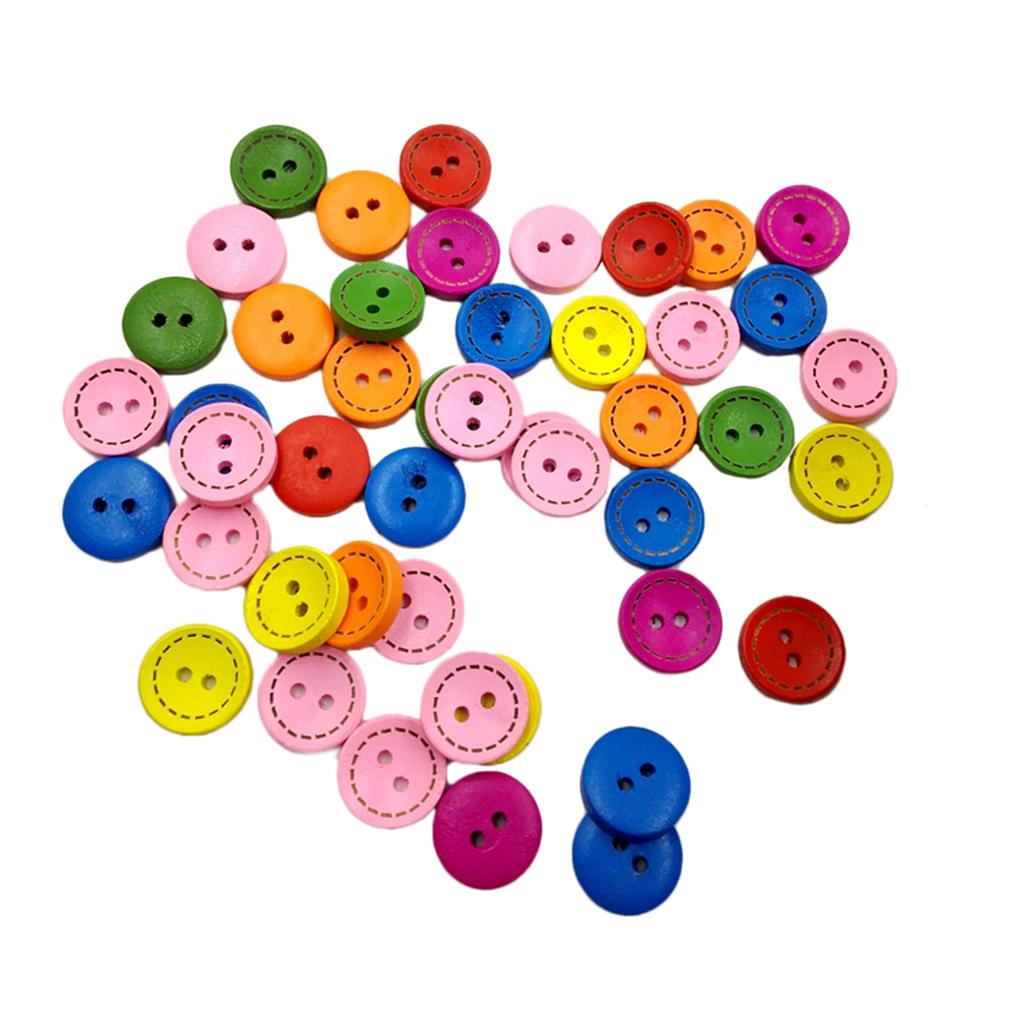 100 Mixed Round Wooden Buttons Two Hole Embellishment Scrapbooking Craft DIY