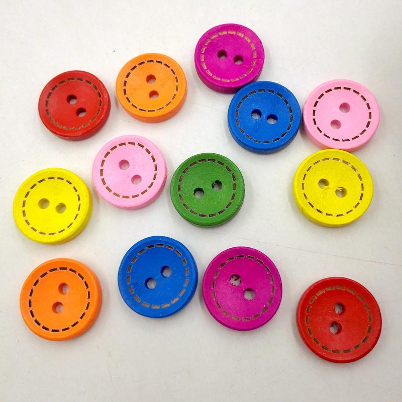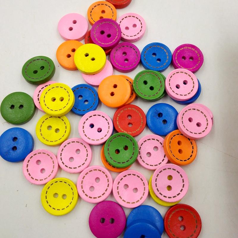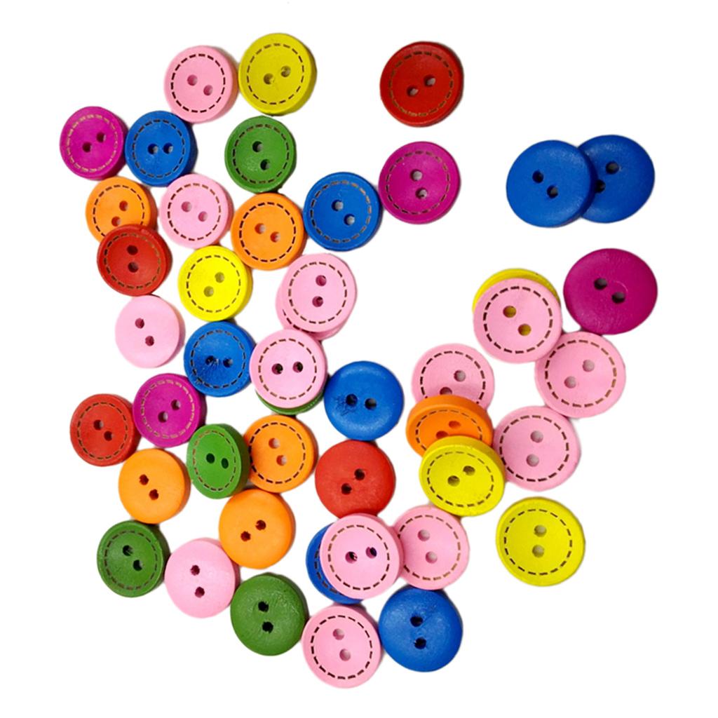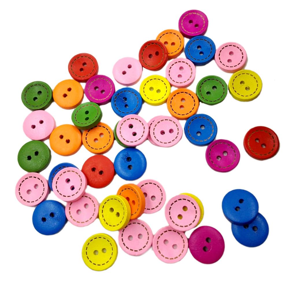 100 Mixed Round Wooden Buttons Two Hole Embellishment Scrapbooking Craft DIY