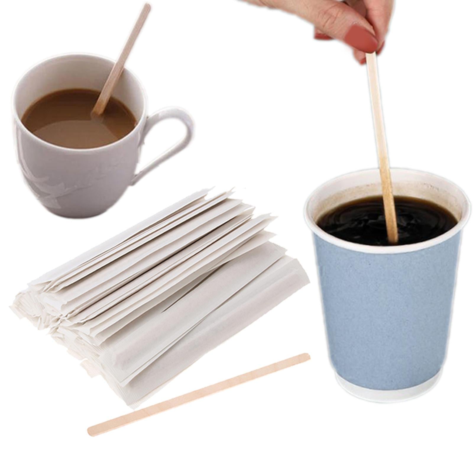100 Pcs 140mm Disposable Wooden Coffee Stirrer For Hot Cold Drink Beverage 5.5'' of 100% Pure Birch Wood