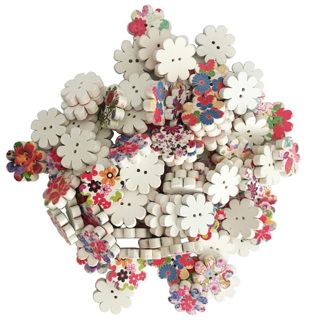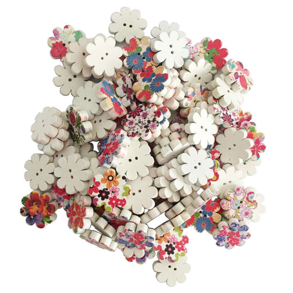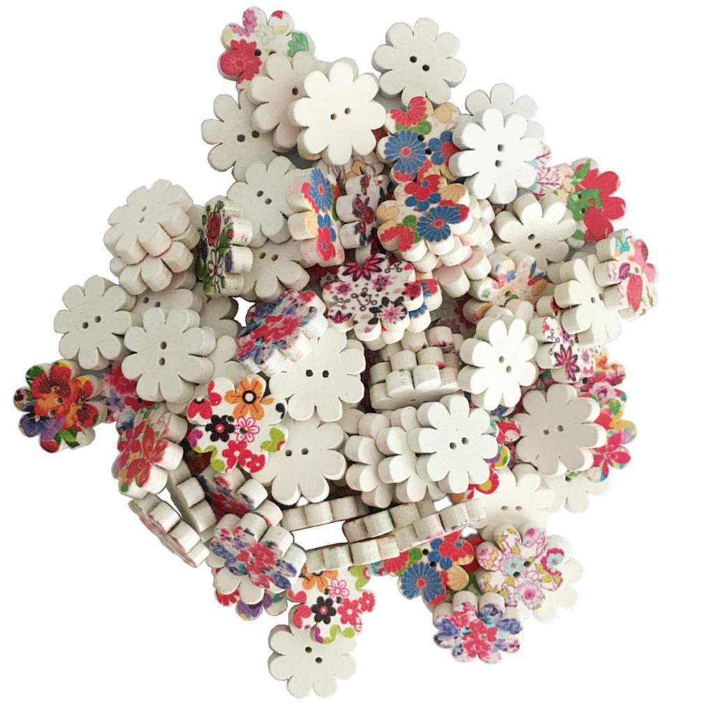 100 Pcs/pack Colors Printed Flower Wood Buttons for Sewing Crafts Supplies