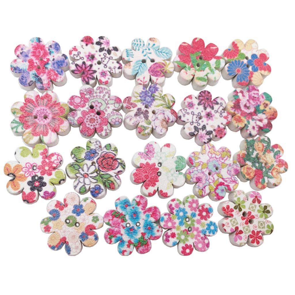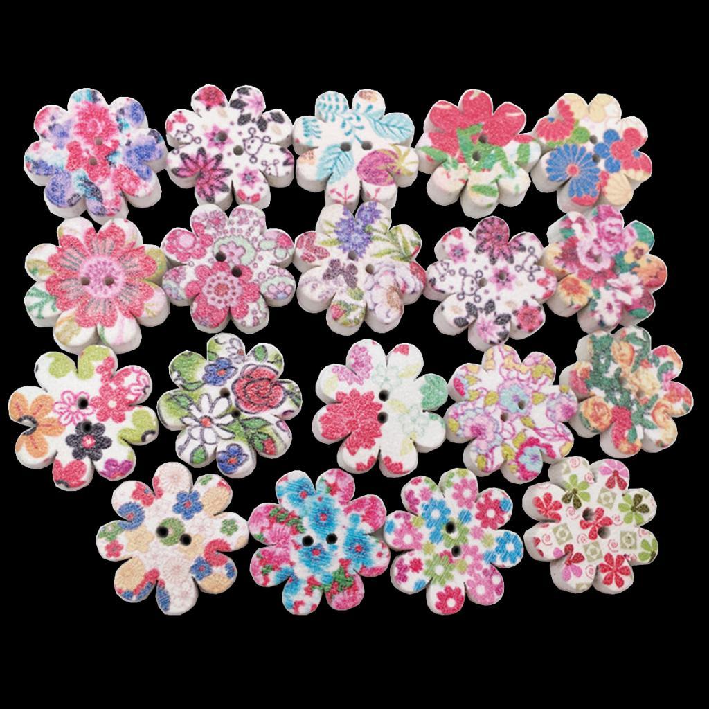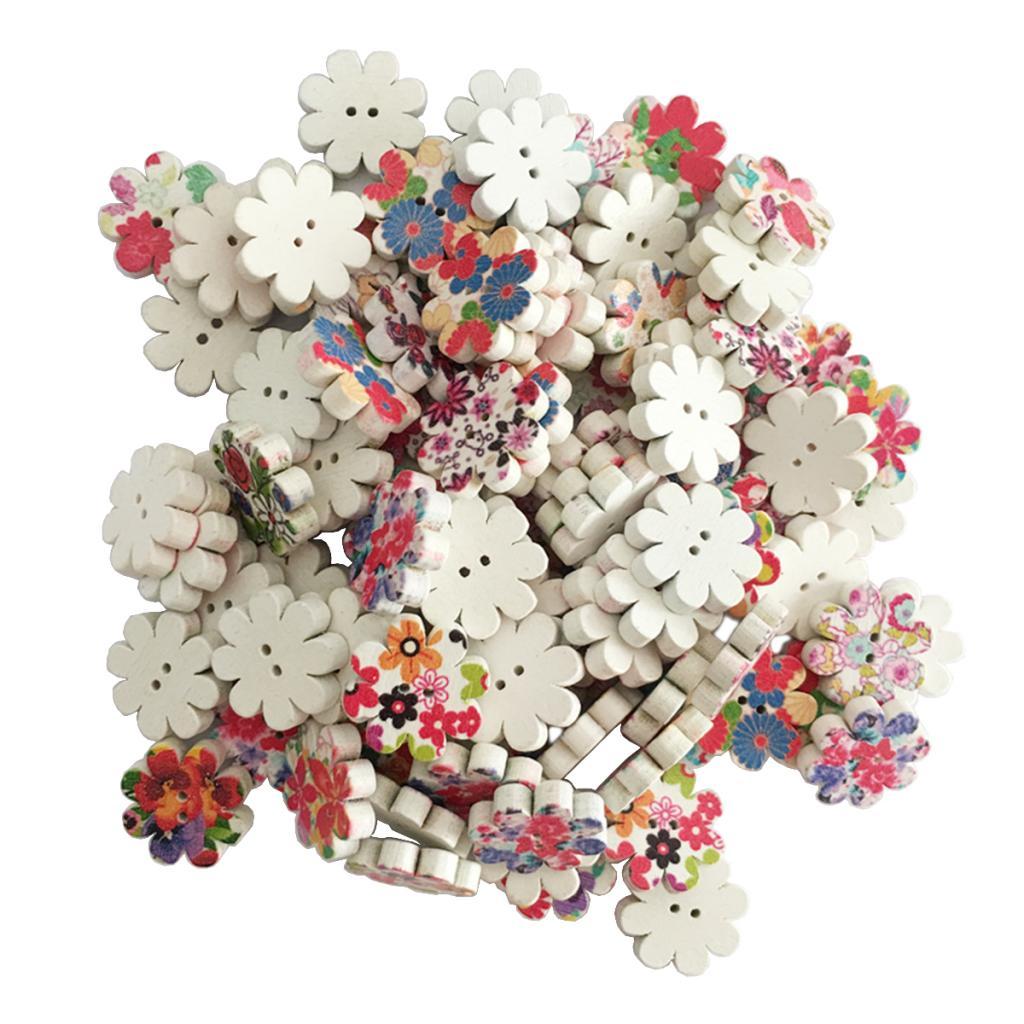 100 Pcs/pack Colors Printed Flower Wood Buttons for Sewing Crafts Supplies