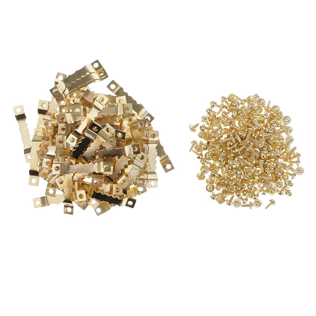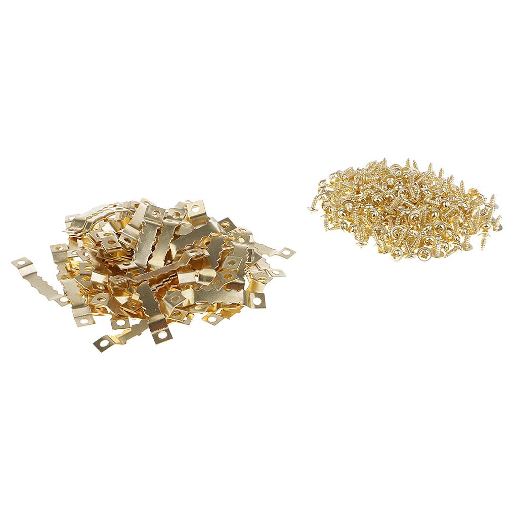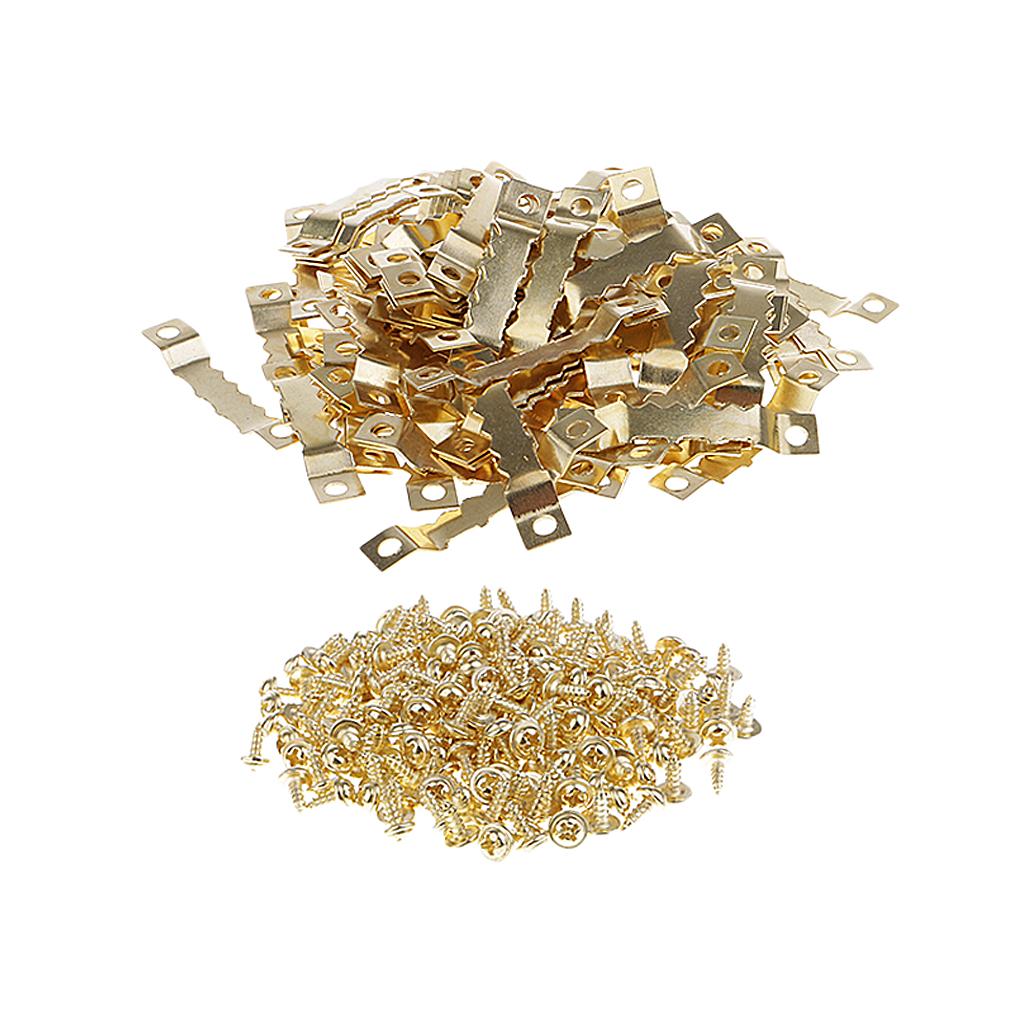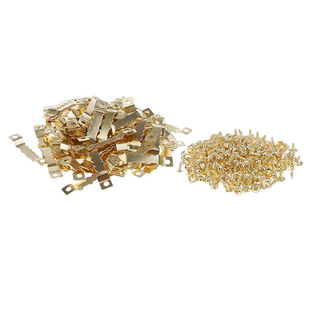 100 Pieces 45mm Golden Saw Tooth Hanging Bracket Clock Picture Frame Hook Painting Mirror Hanger Canvas Art Hangers with 200 Pieces Screw Nails