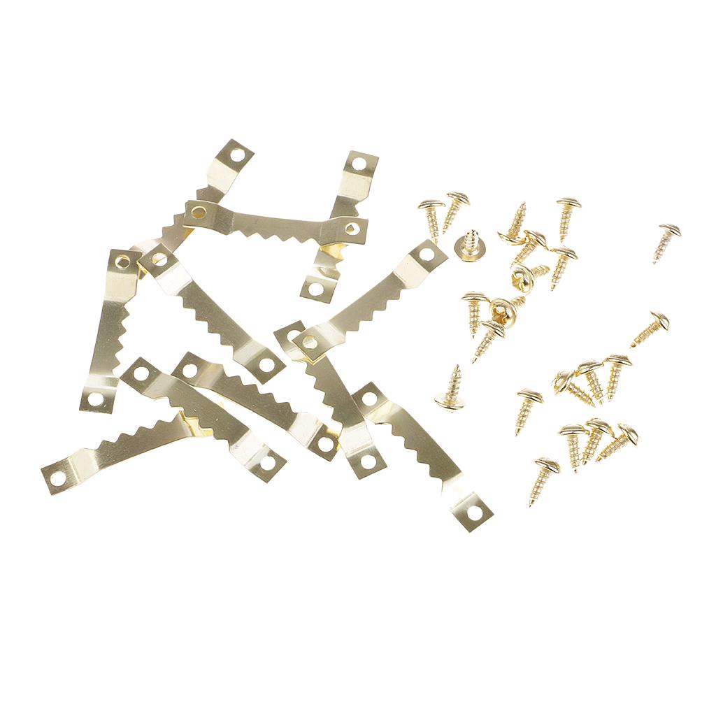100 Pieces Heavy Duty Golden Saw Tooth Sawtooth Hanger Hanging Picture Photo Oil Painting Mirror Frame Hanger Hook with Screws Art Canvas Hanger 39mmx7mm Furniture Accesories