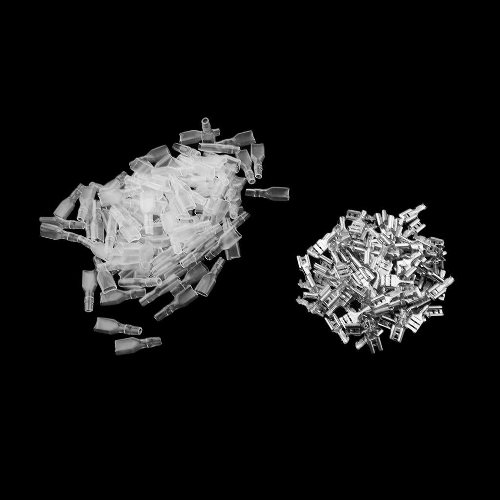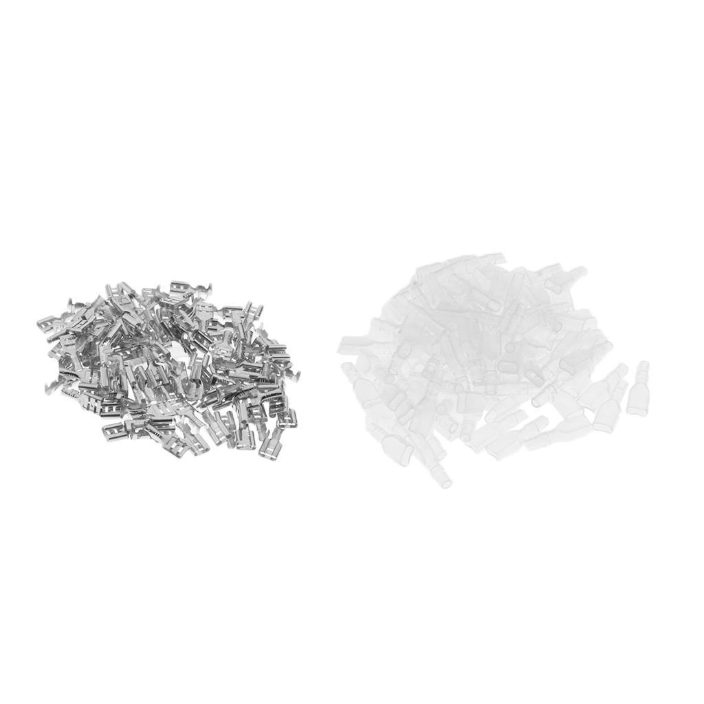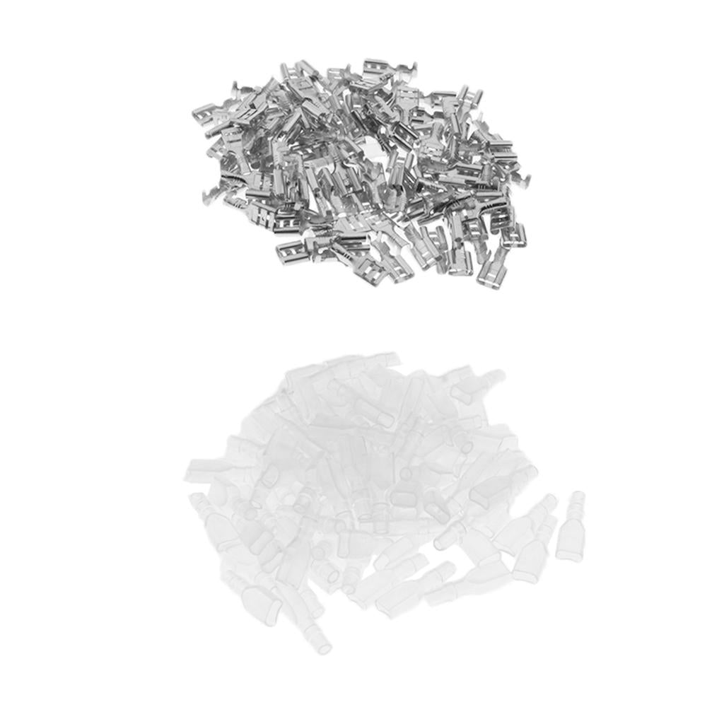 100 Pieces 4.8mm Crimp Terminal Female Spade Connectors & Insulating Sleeve AWG 22-16