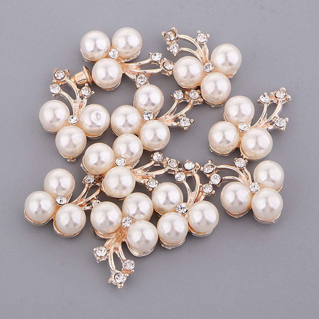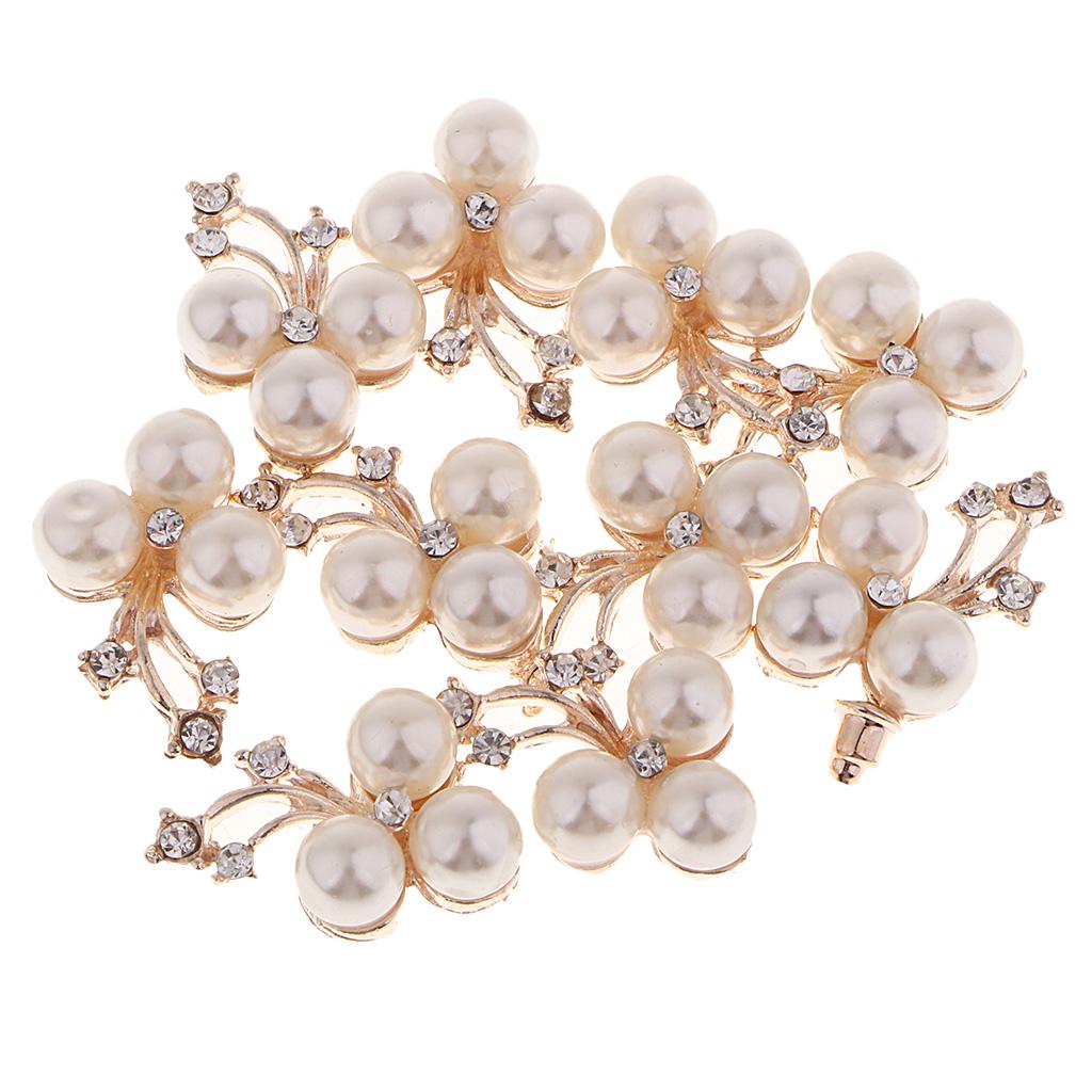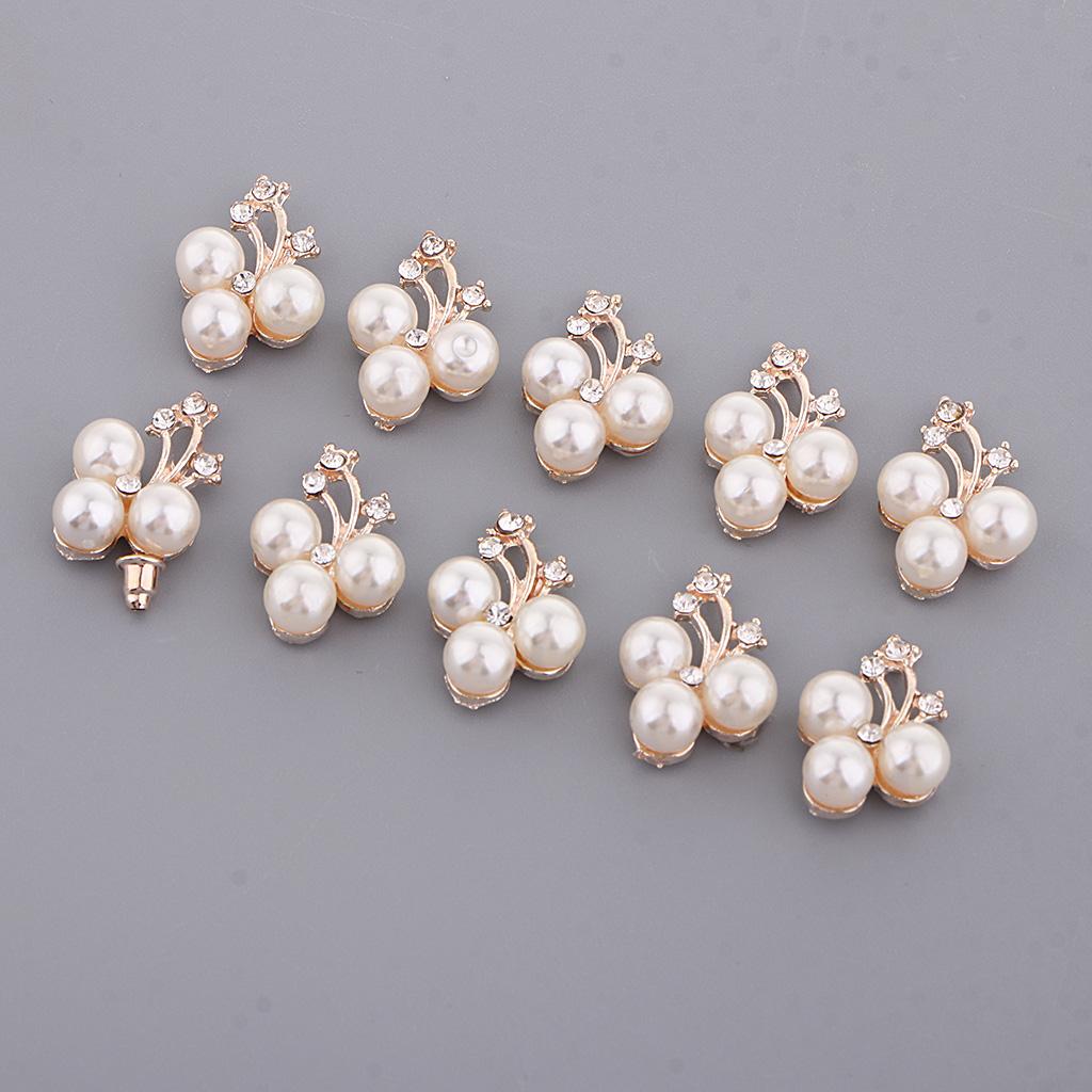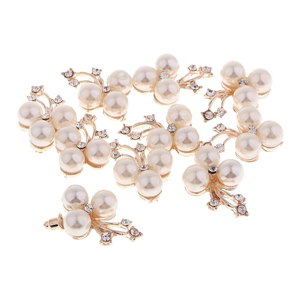 10 Pieces Pearl Rhinestone Flower Embellishments