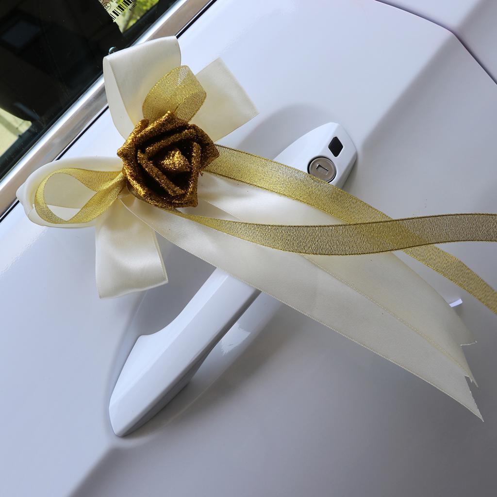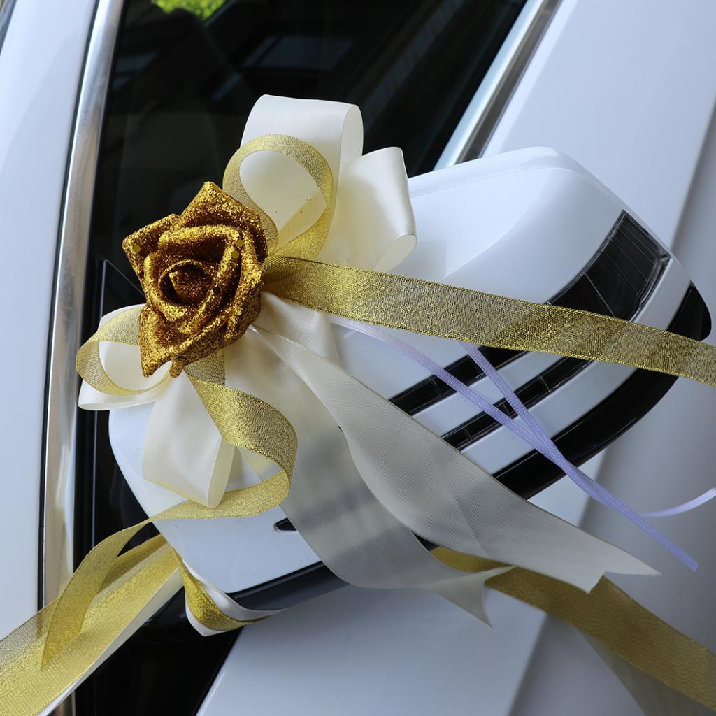 Easy for you to be fixed 1 piece flower plate ribbon on the car head, 4 pieces satin bows on car roof, 2 pieces flower bows on car mirror, 4 pieces flower bows on car door handle.