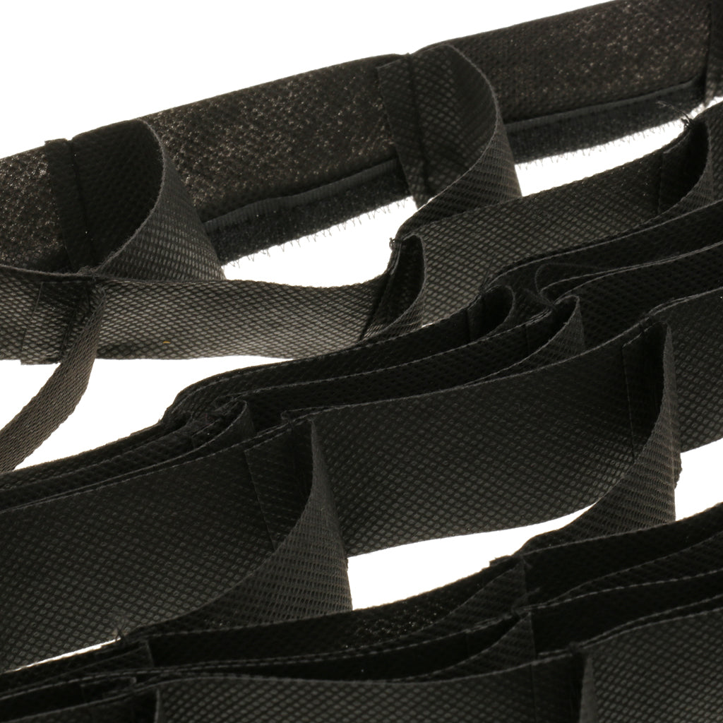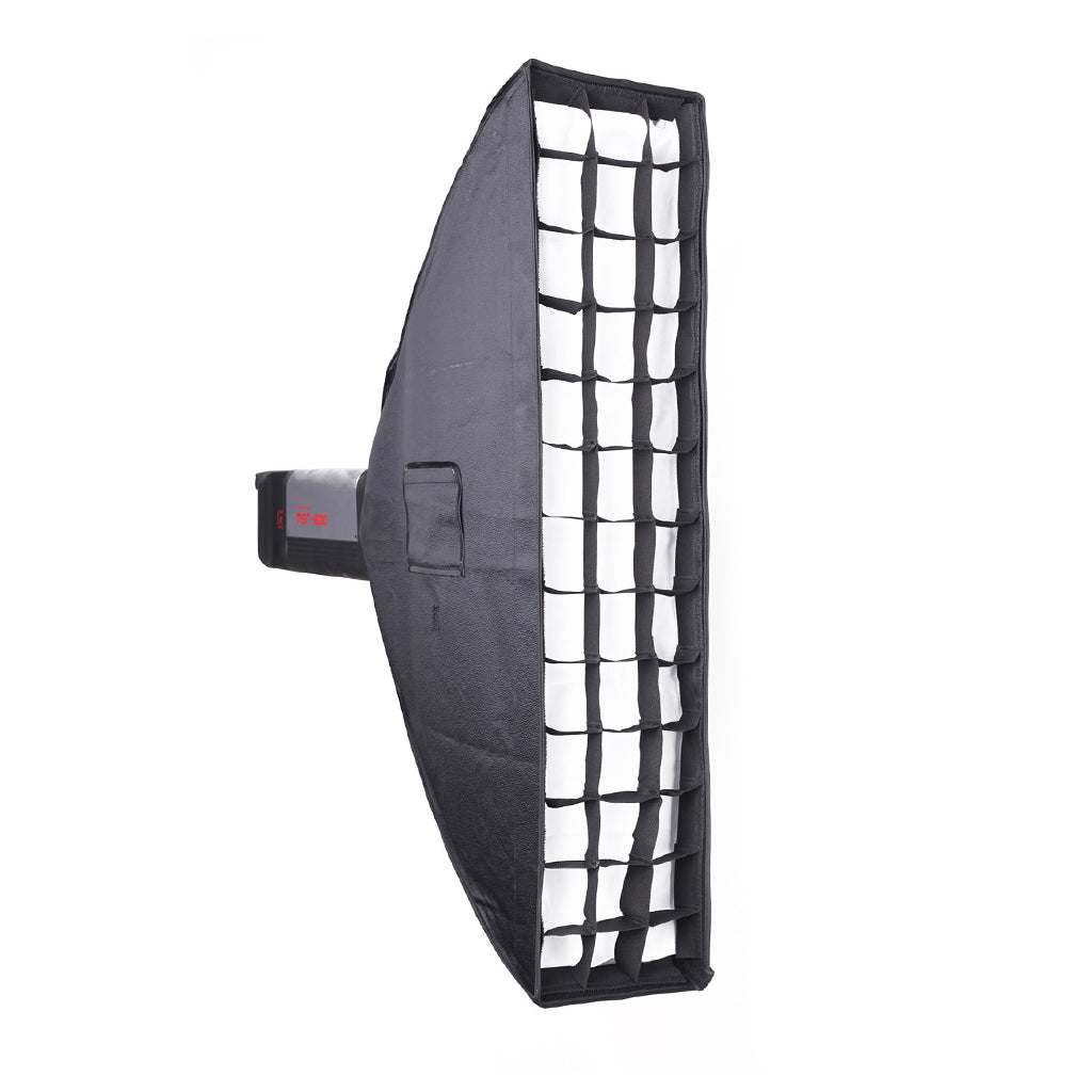 The grid is made of black special fabric, with honeycomb-style design and paste sewn around the sides, can be respectively fastened to the inner side of the 14"x63" / 35x160cm softbox.