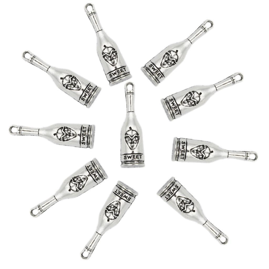 Antique silver mini wine beer bottle shape design jewelry making charms pendant;