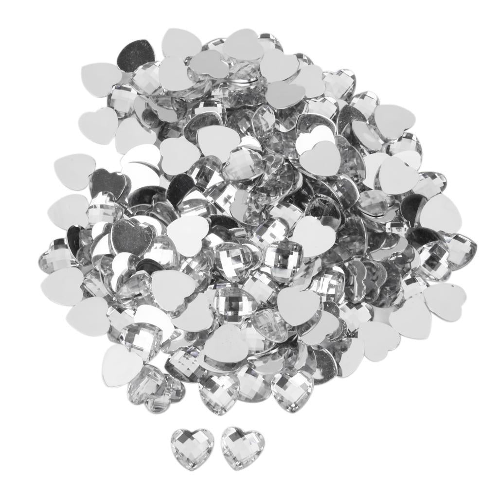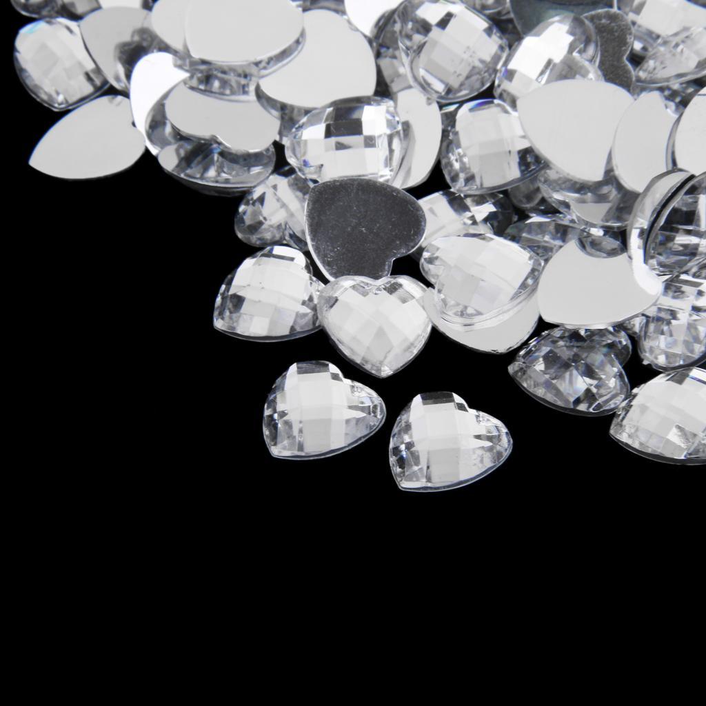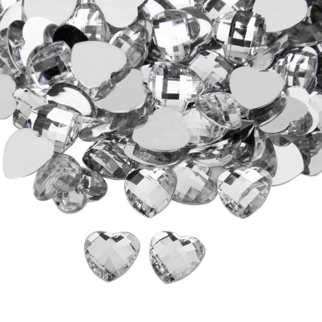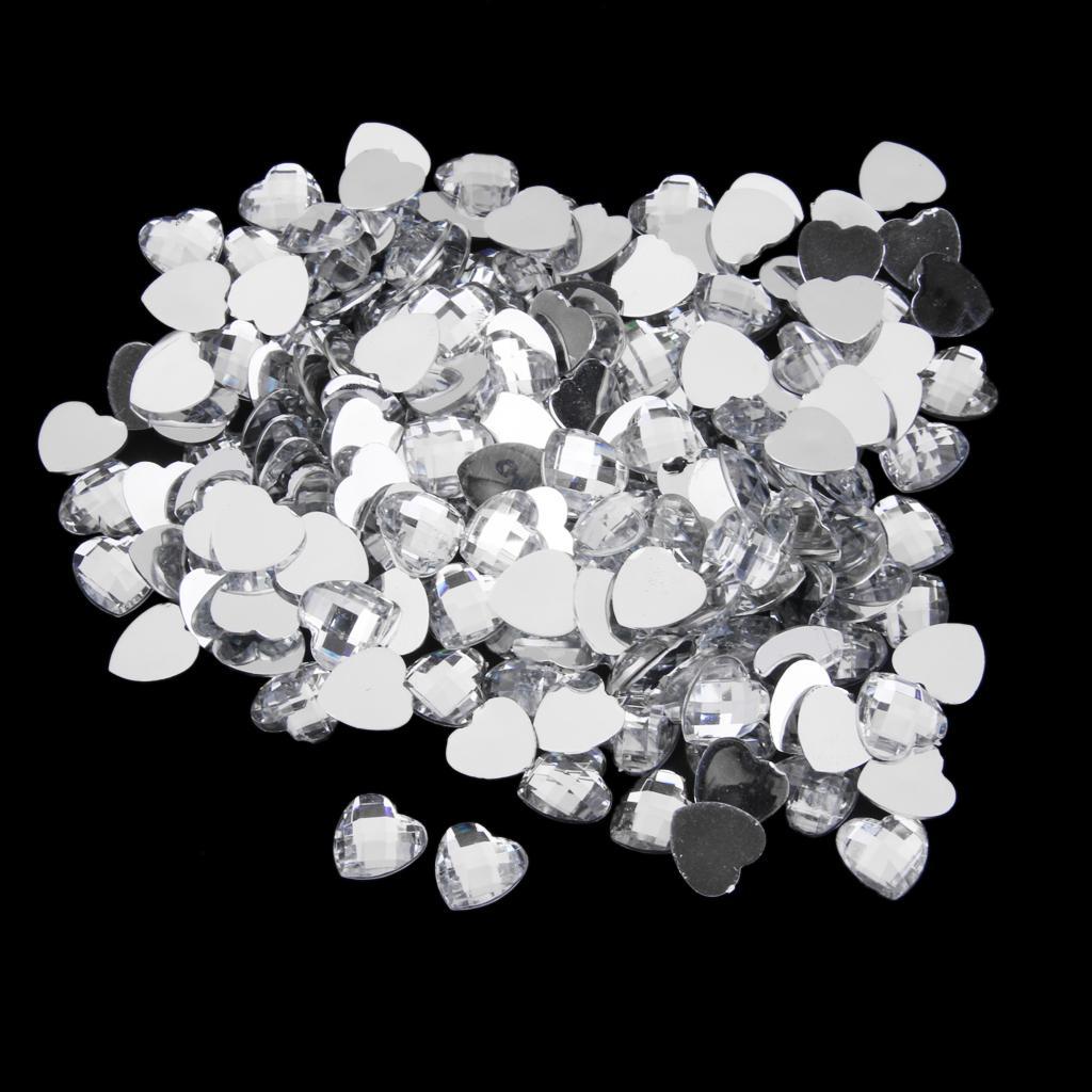 200pcs Nail Art Heart Shape Decors Flatback Acrylic Rhinestone Gems White