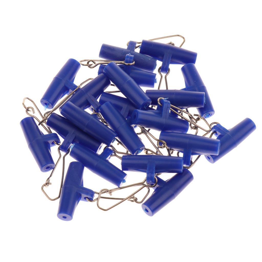 20Pcs Fishing Sinker Slides with Hooked Snap Connector for Braid Line L Blue