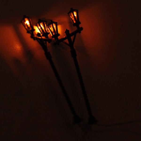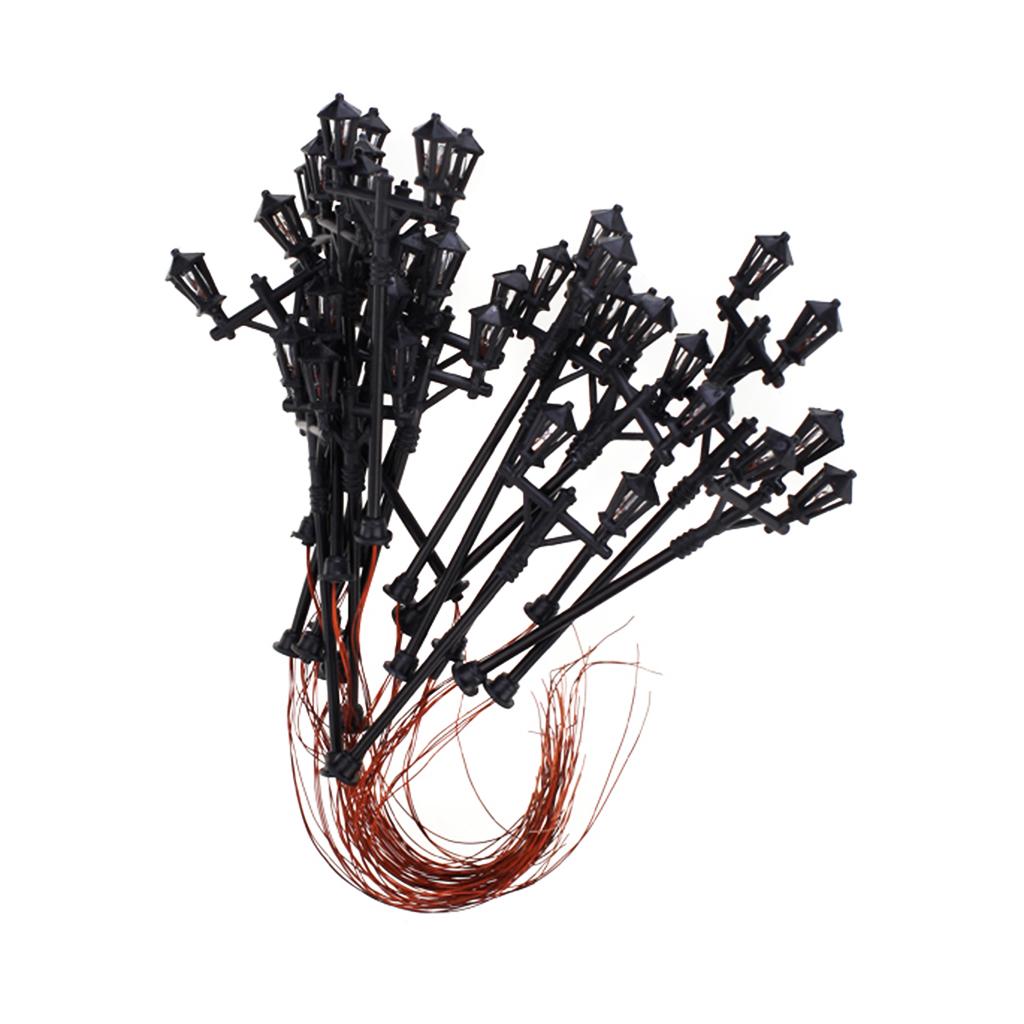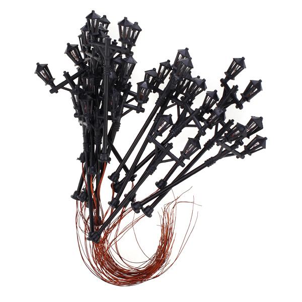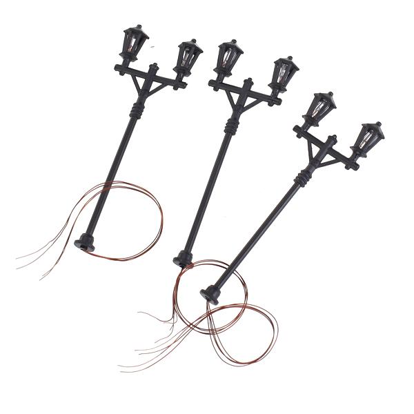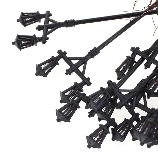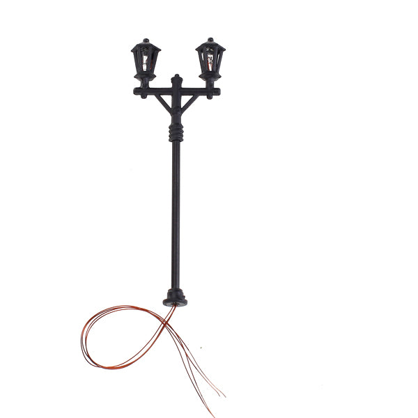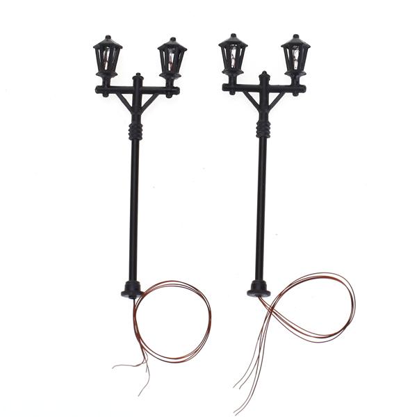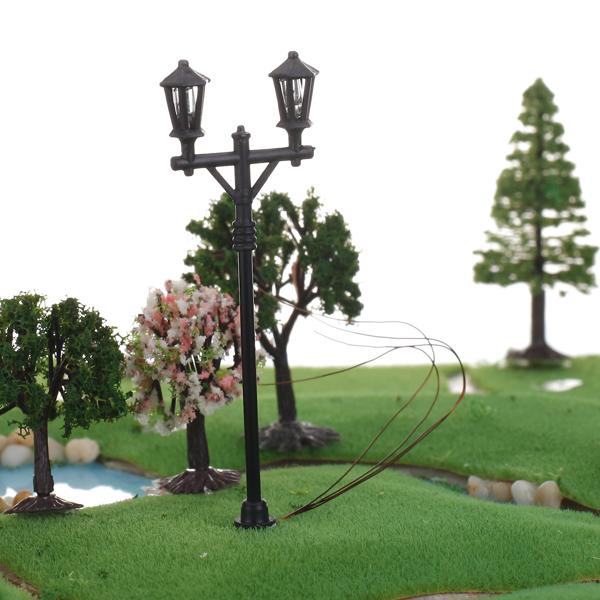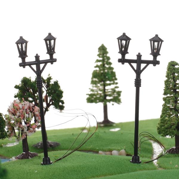 These delicate model garden lights are mainly used in teaching, photography, and various kinds of scene model. Each of them is completed with wires and has double heads, which can be lighten with 6V power. These model lights measure about 7cm high. Light up your model layout with this great model lamppost!