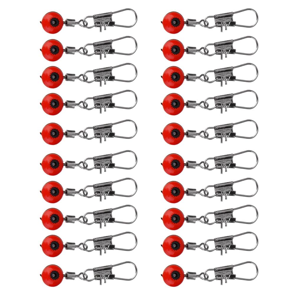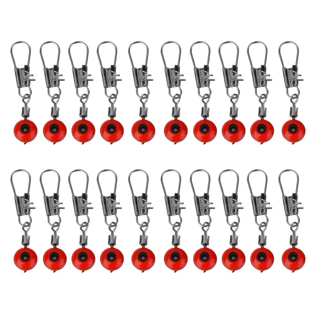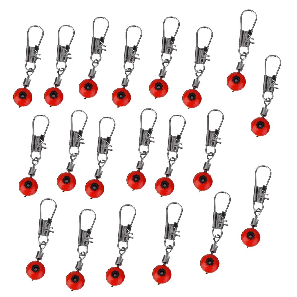 20pcs Space Beans Fishing Line to Hook Swivels Shank Clip Connector Red L