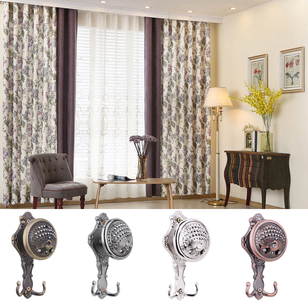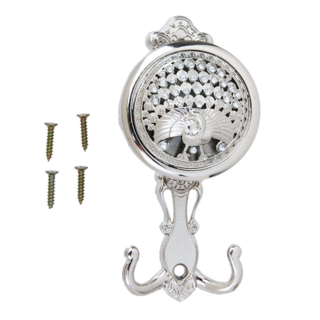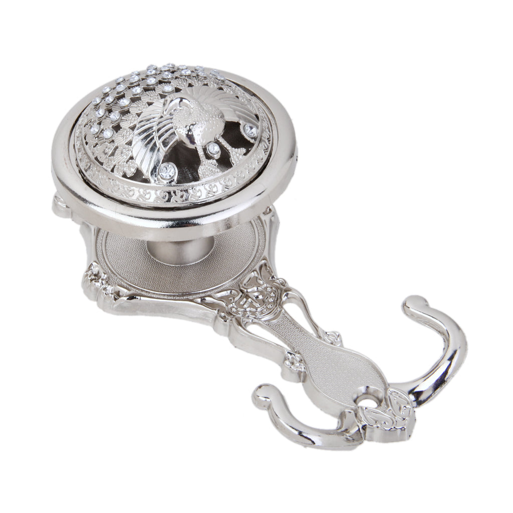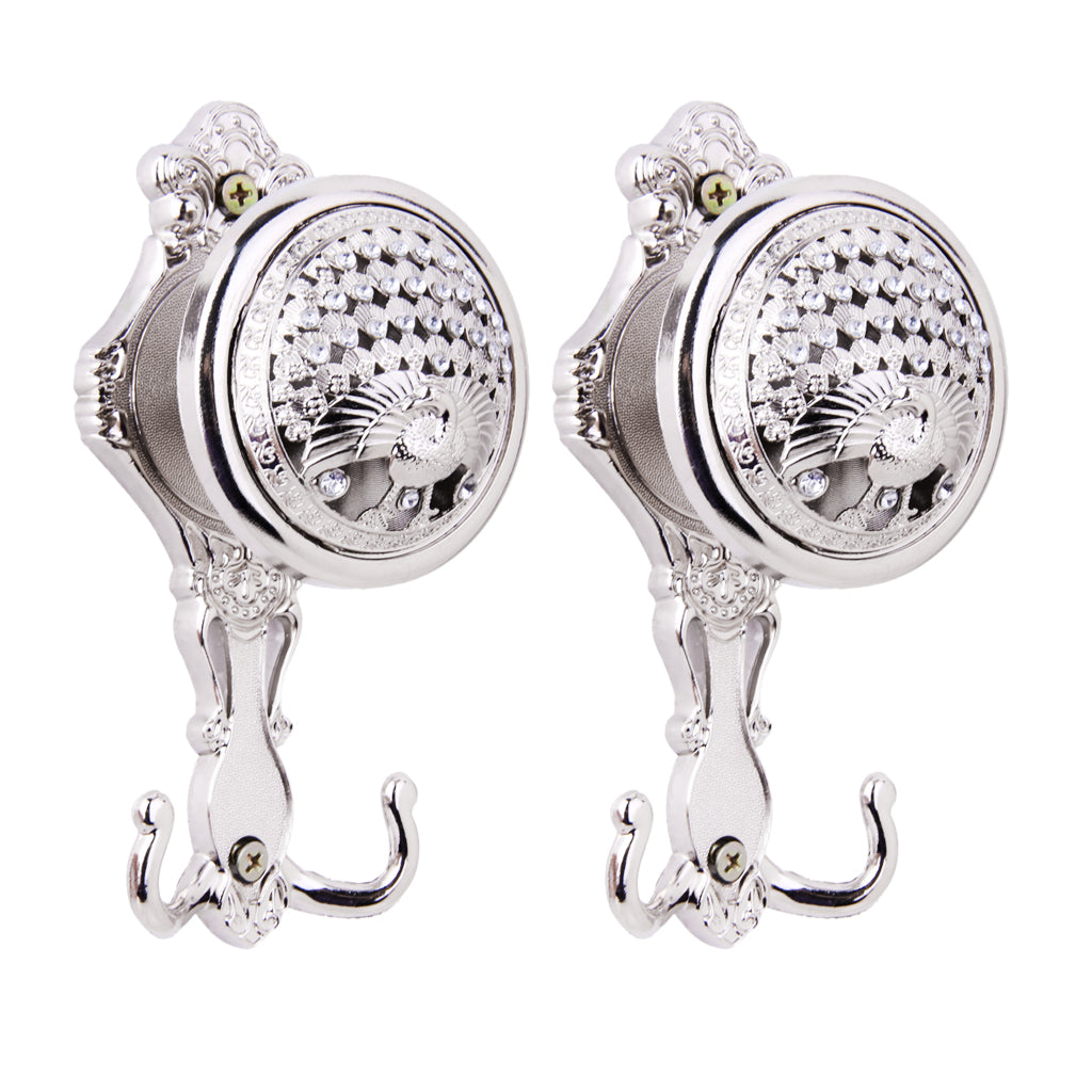 2pcs Peacock Rhinestone Design Curtain Tiebacks Wall Hook Door Hanger-Sliver