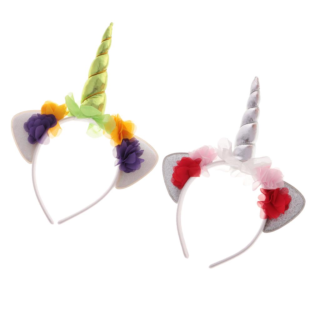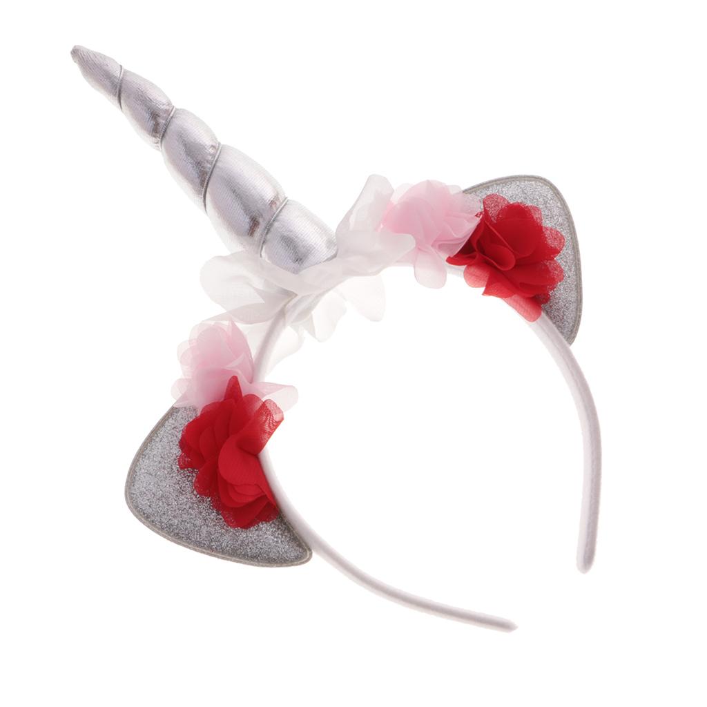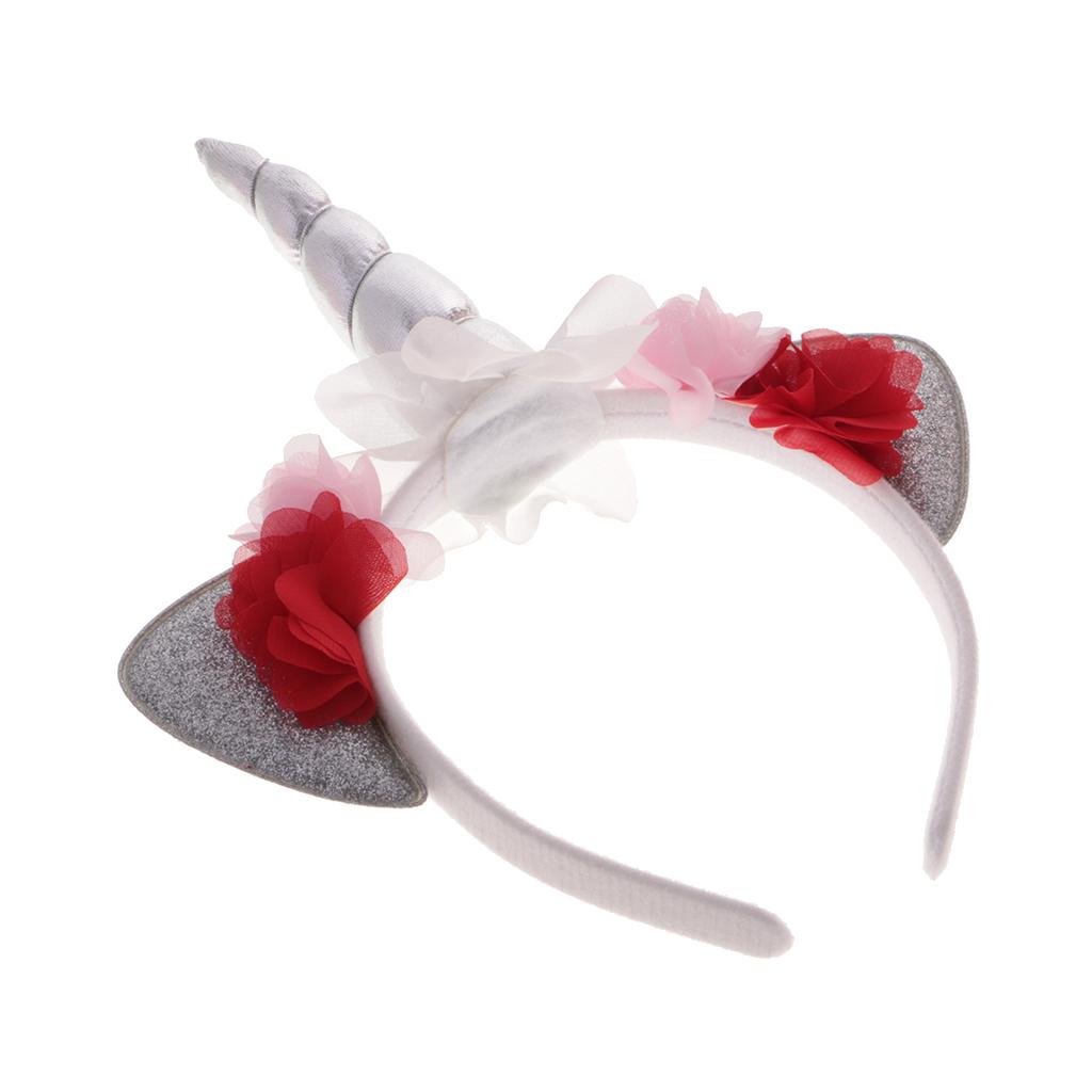 Soft fabric wrapped band, unicorn horn / ears with tulle flower decoration