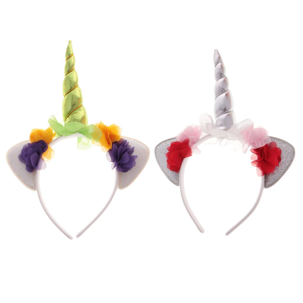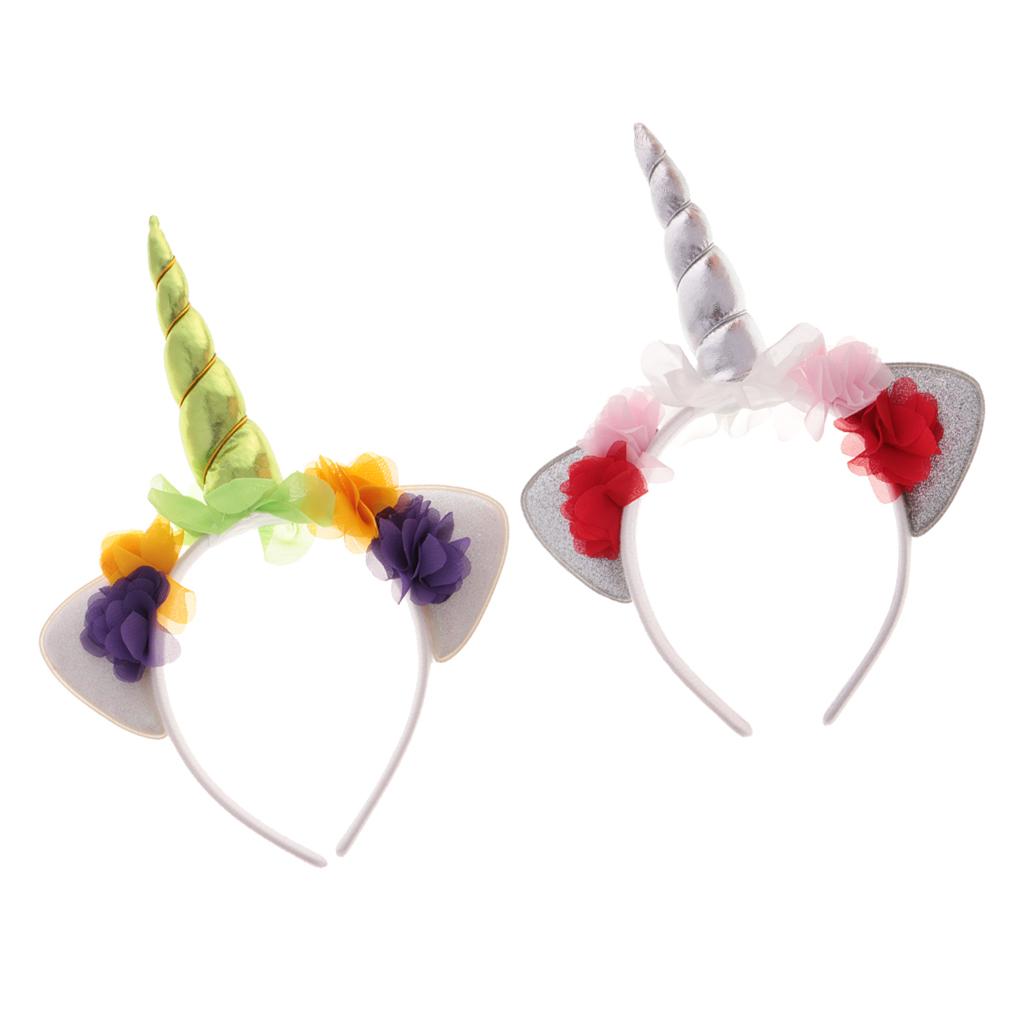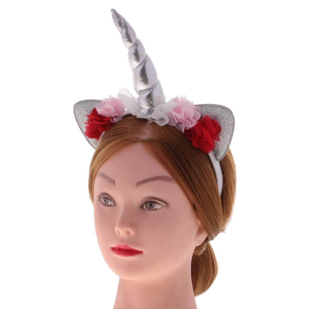 Soft fabric wrapped band, unicorn horn / ears with tulle flower decoration