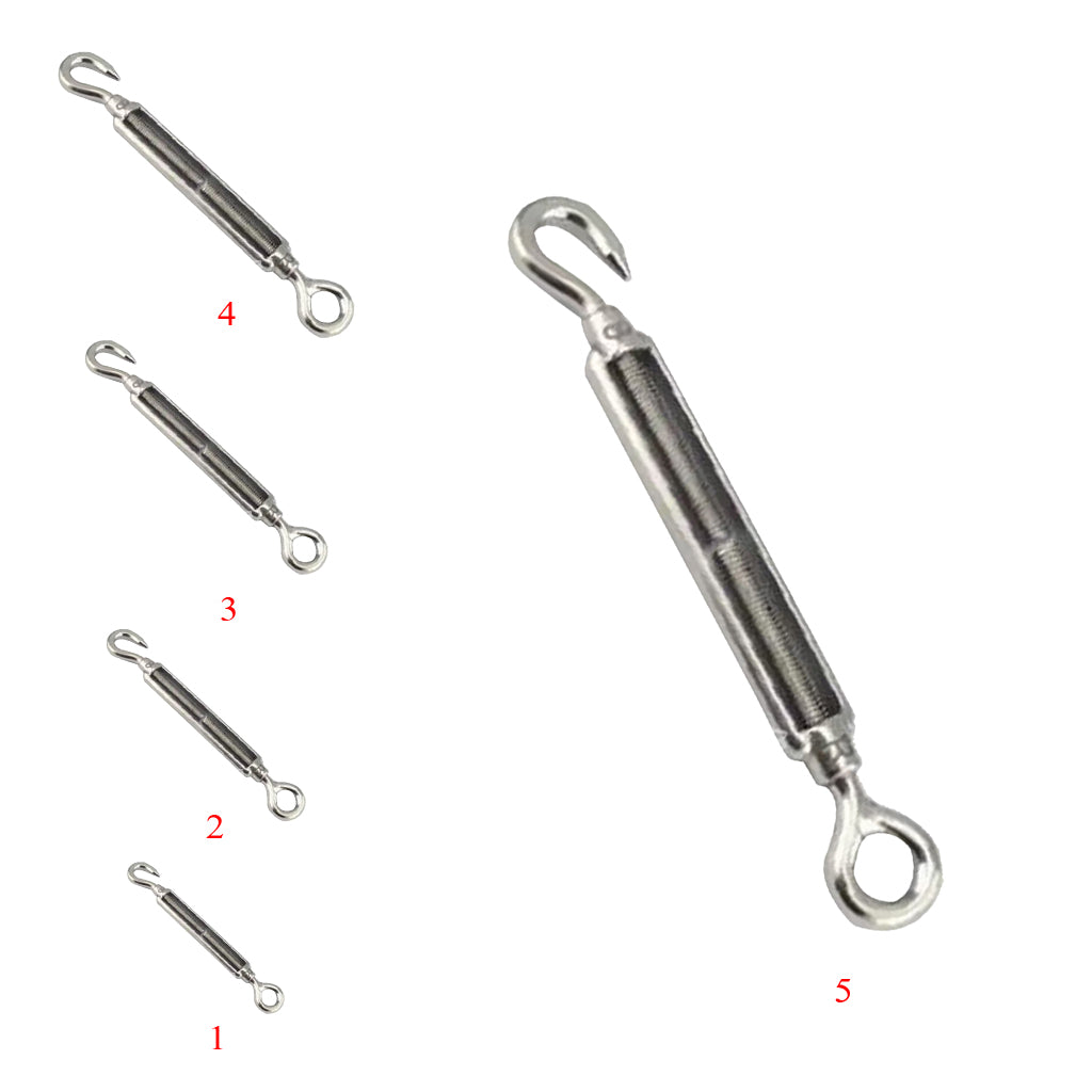 These are also known as Tensioners, Turn Buckles, Straining Screws, Barrel Strainers, or Open Body Rigging Screws.