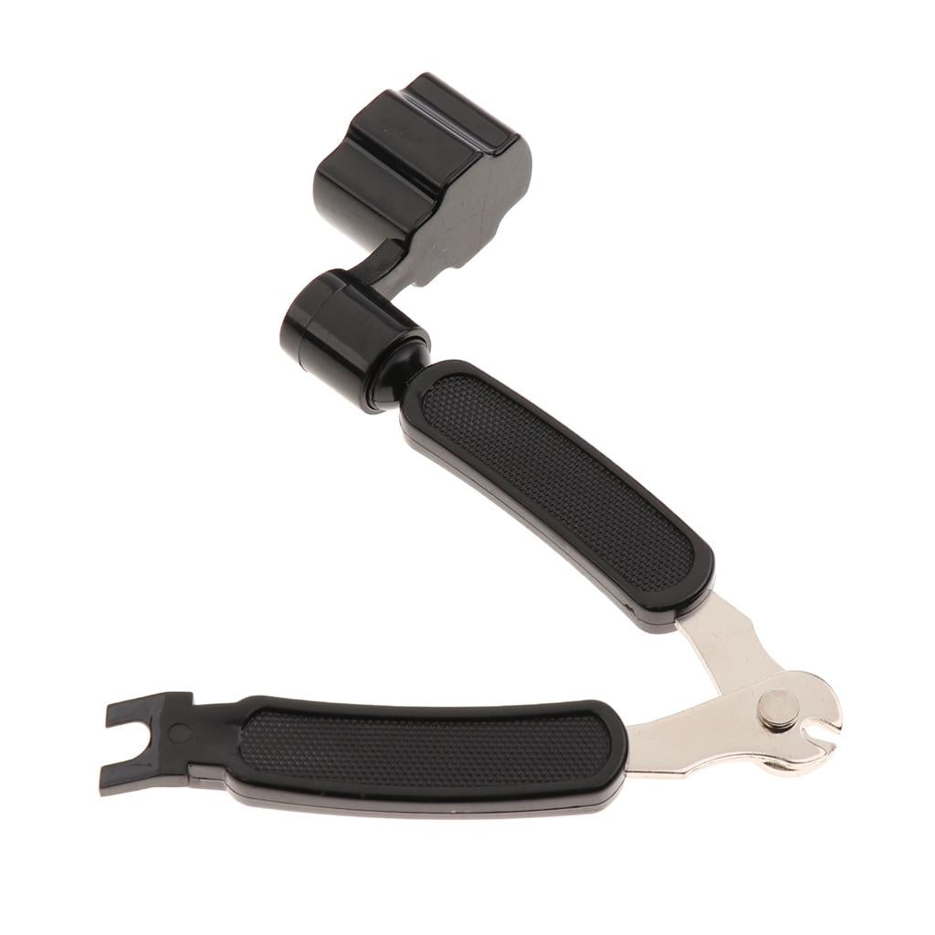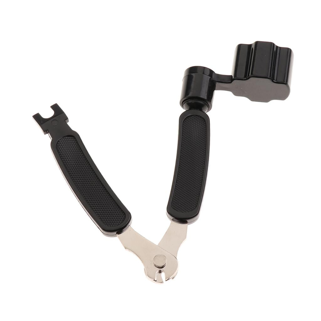• The ergonomic design makes string changes easier than ever before with it's built-in clippers, bridge pin puller, and peg winder all rolled into one product.