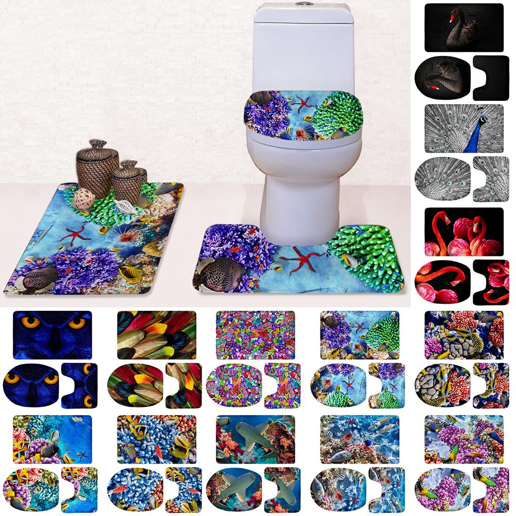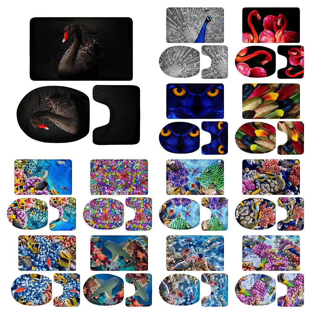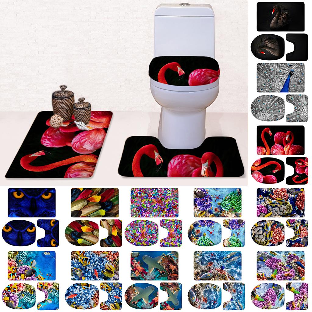 3 Piece Animal Toilet Covers Set included:1 piece Bath Mat 1 piece Pedestal Rug 1 piece Lid Toliet Cover