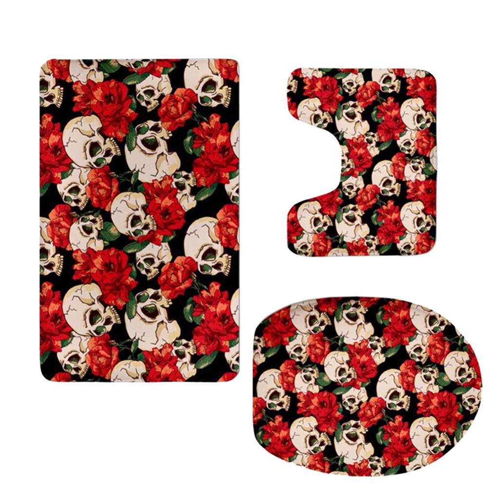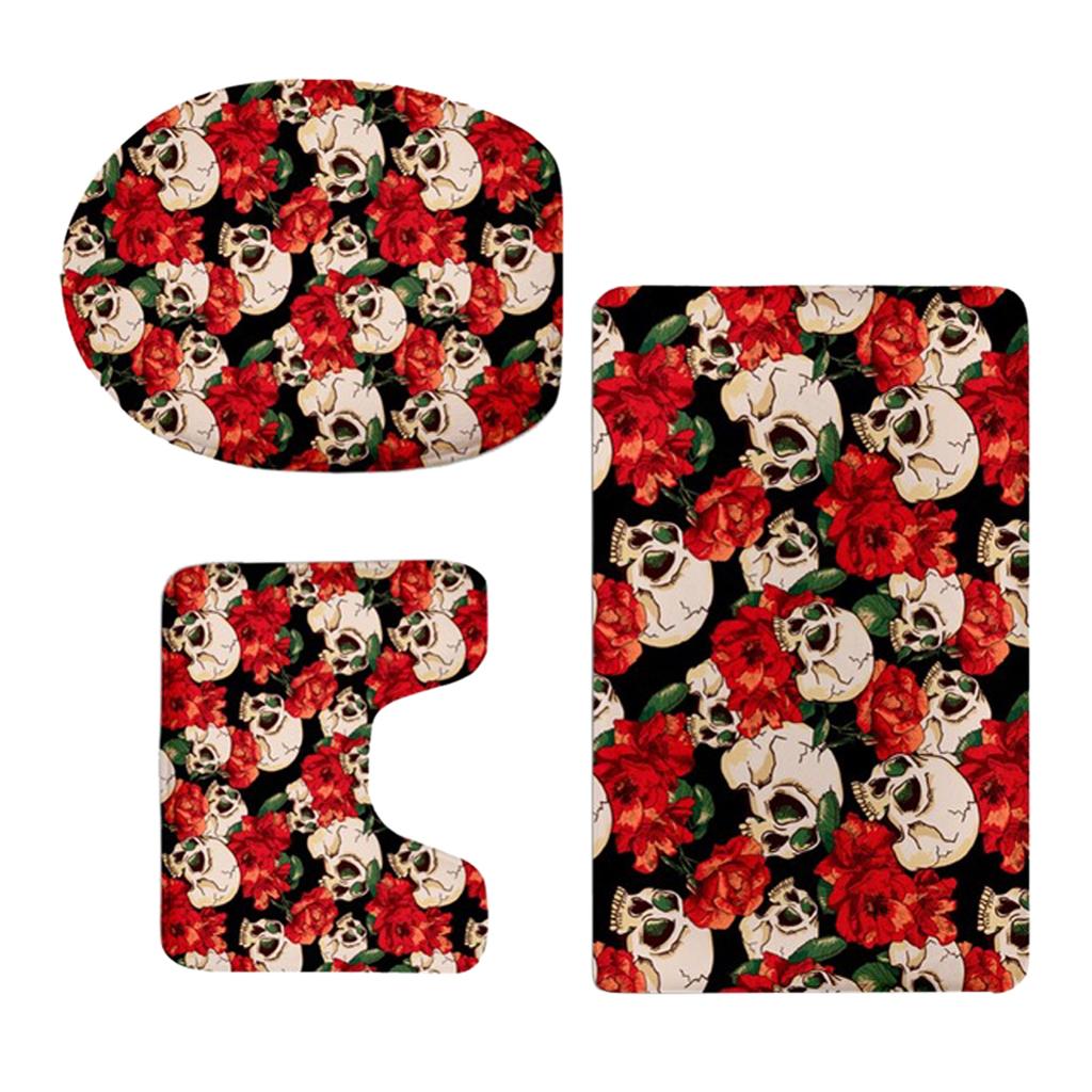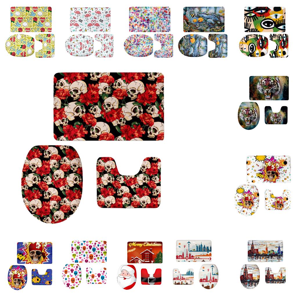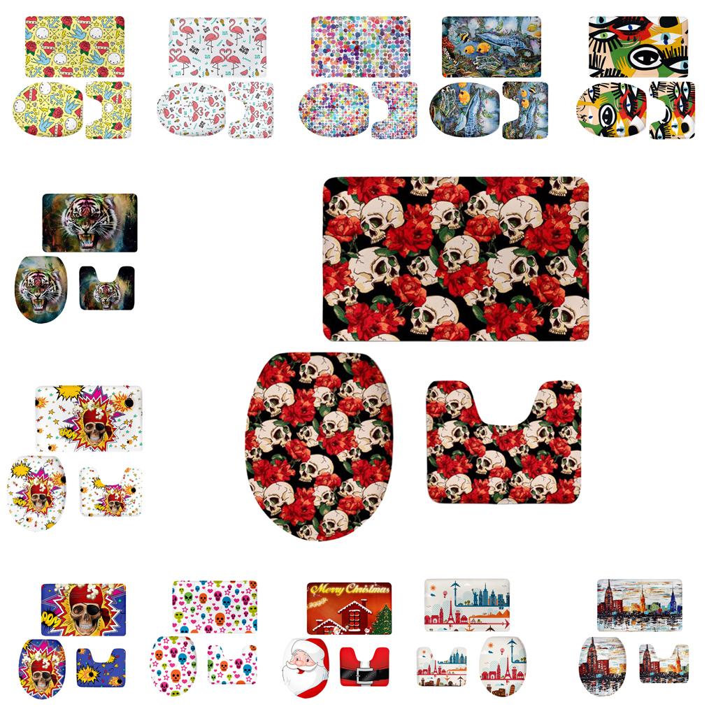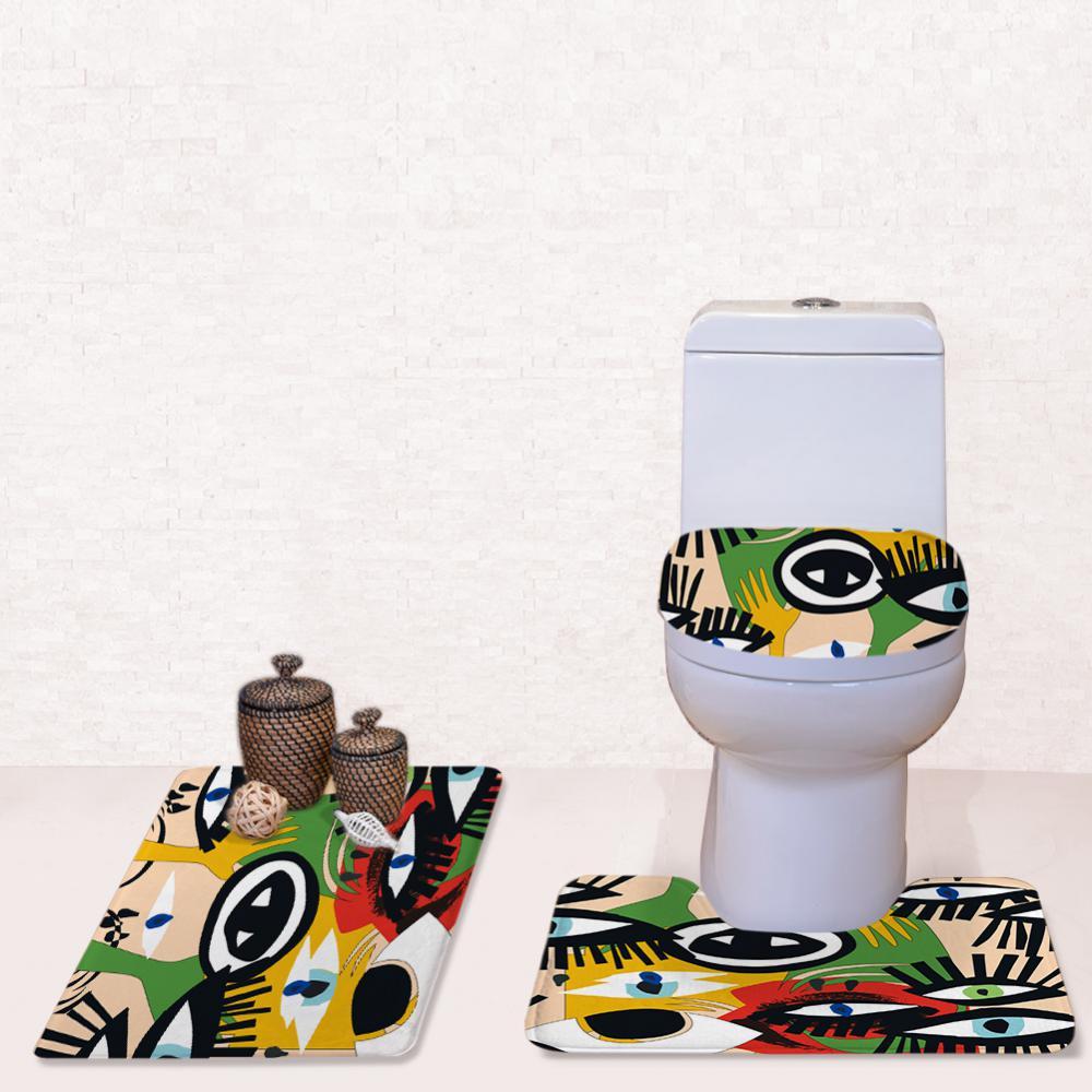 3 pieces Non-slip Flannel Toilet Covers Mat Bath Shower Soft Pad Rug Set.