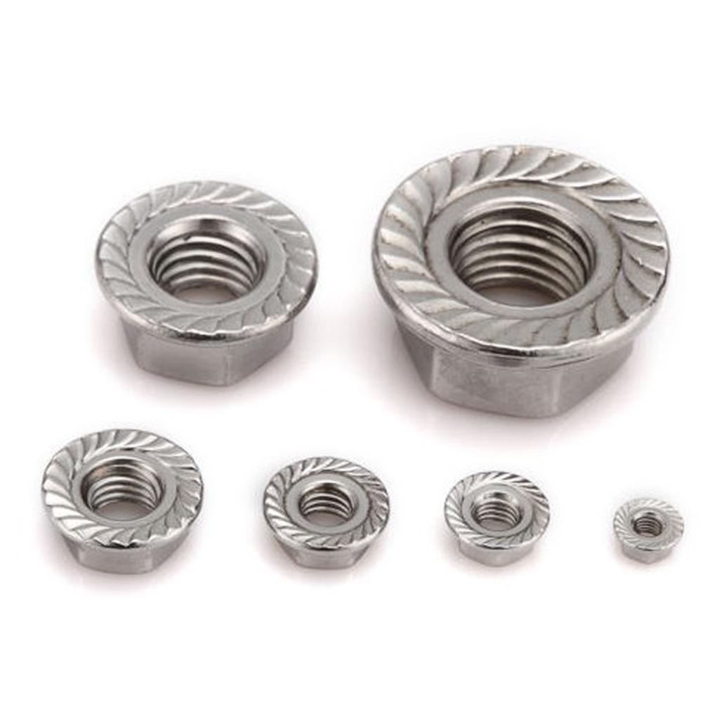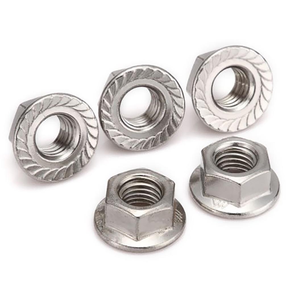 A flange nut is a nut that has a wide flange at one end that acts as an integrated, non-spinning washer