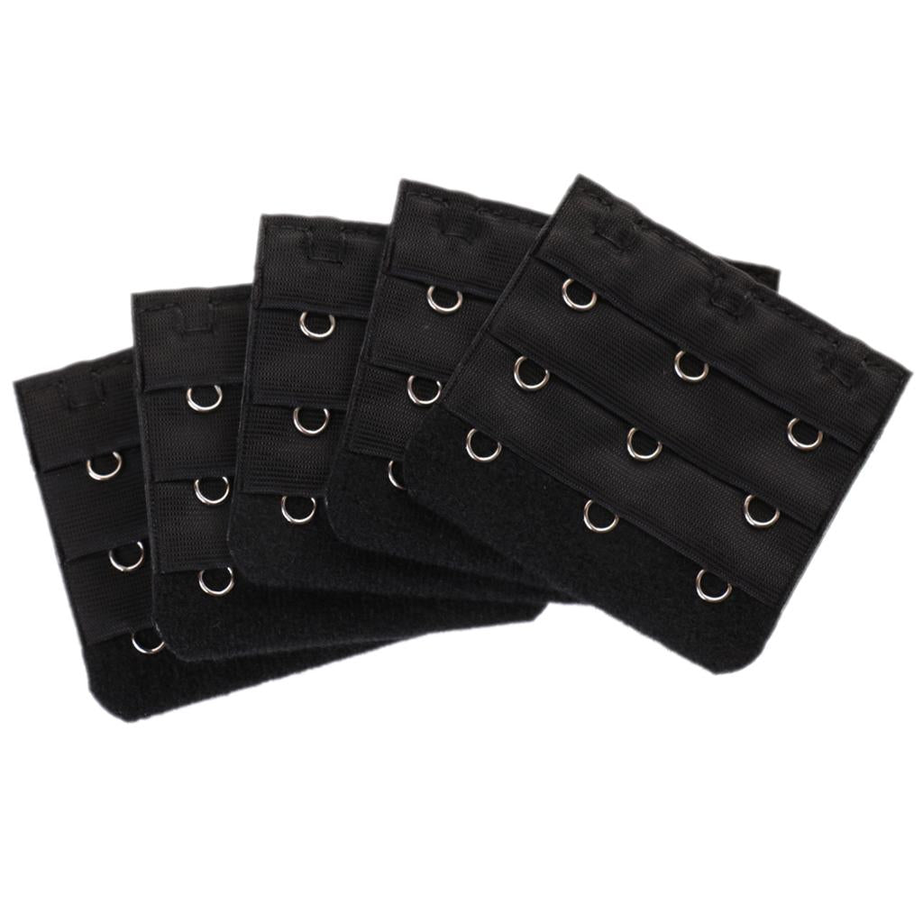5pcs Elastic Bra Strap Extension Bra Extenders 3x 3 Hook Black