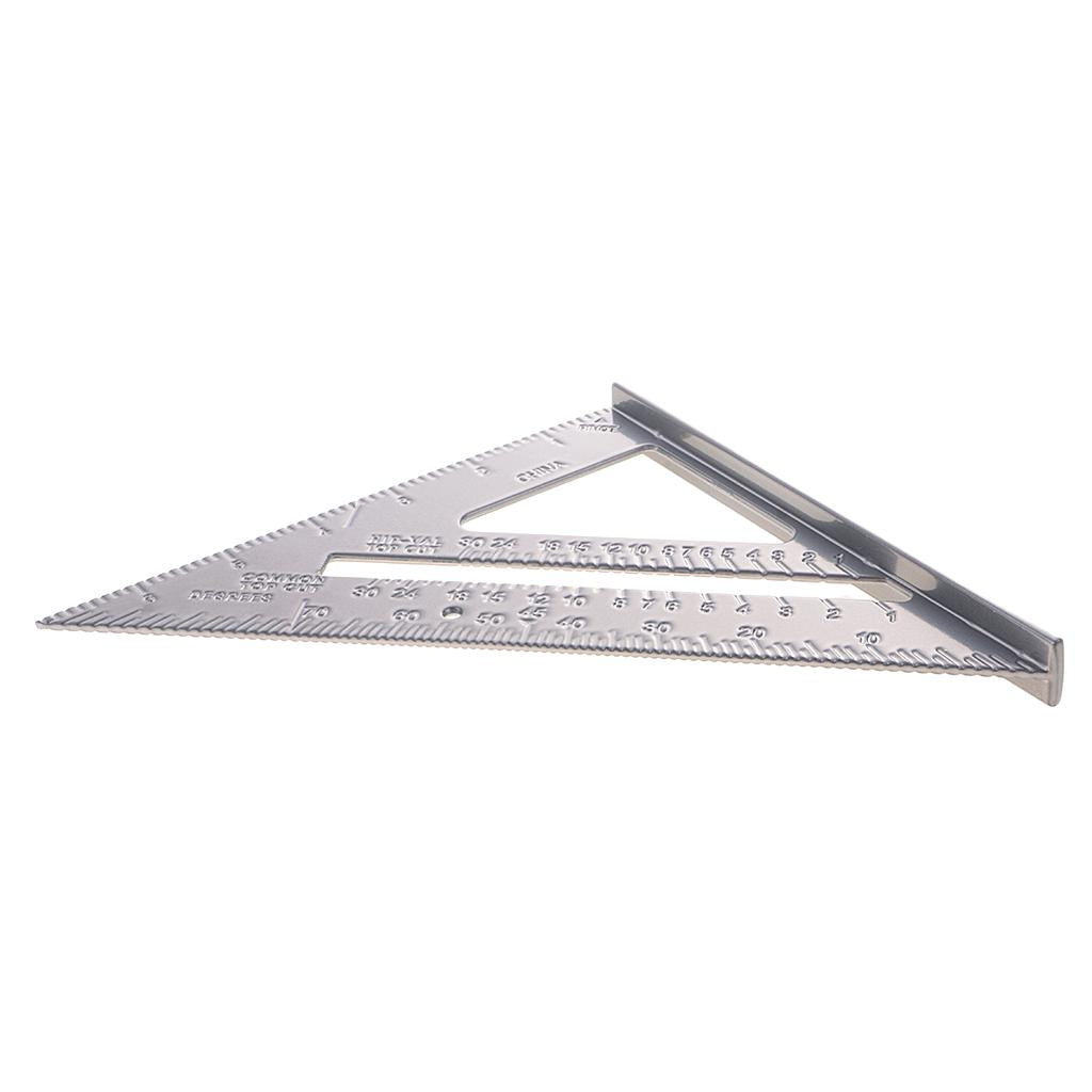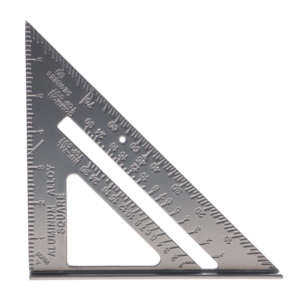 Incorporates features of framing square, tri square, mitre square, and protractor square.