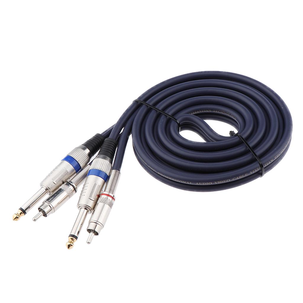Dual 1/4'' Mono TS (6.35mm Jack) Male to Dual RCA Male Plug ,Gold-Plated Connector, Oxygen-Free Copper Conductor , Antioxidant. For easy transfer and long service life.