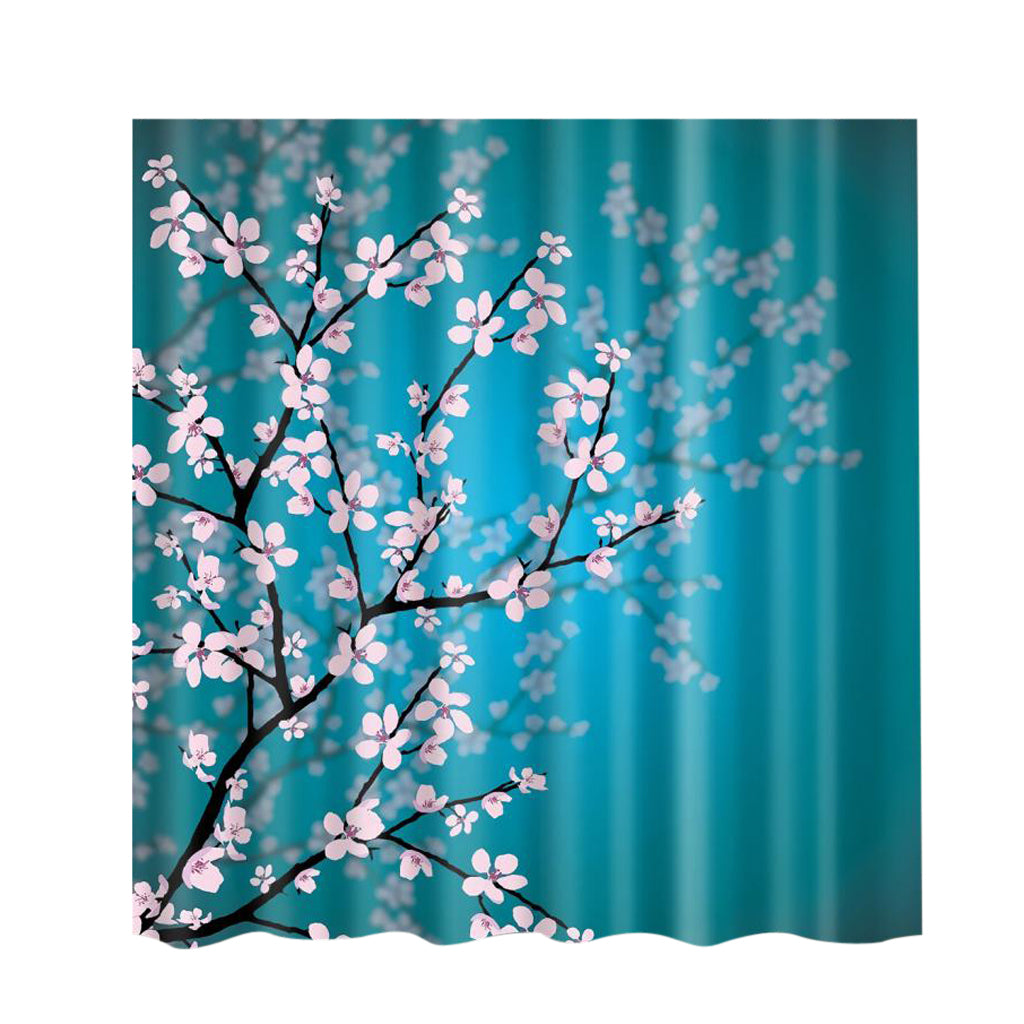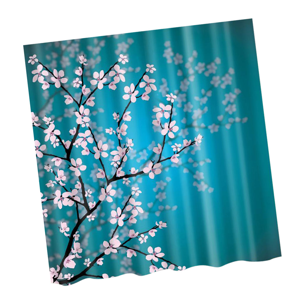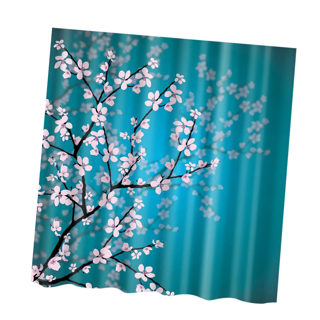 Bathroom Decor Shower Curtain Waterproof Fabric with Hooks Plum Blossom