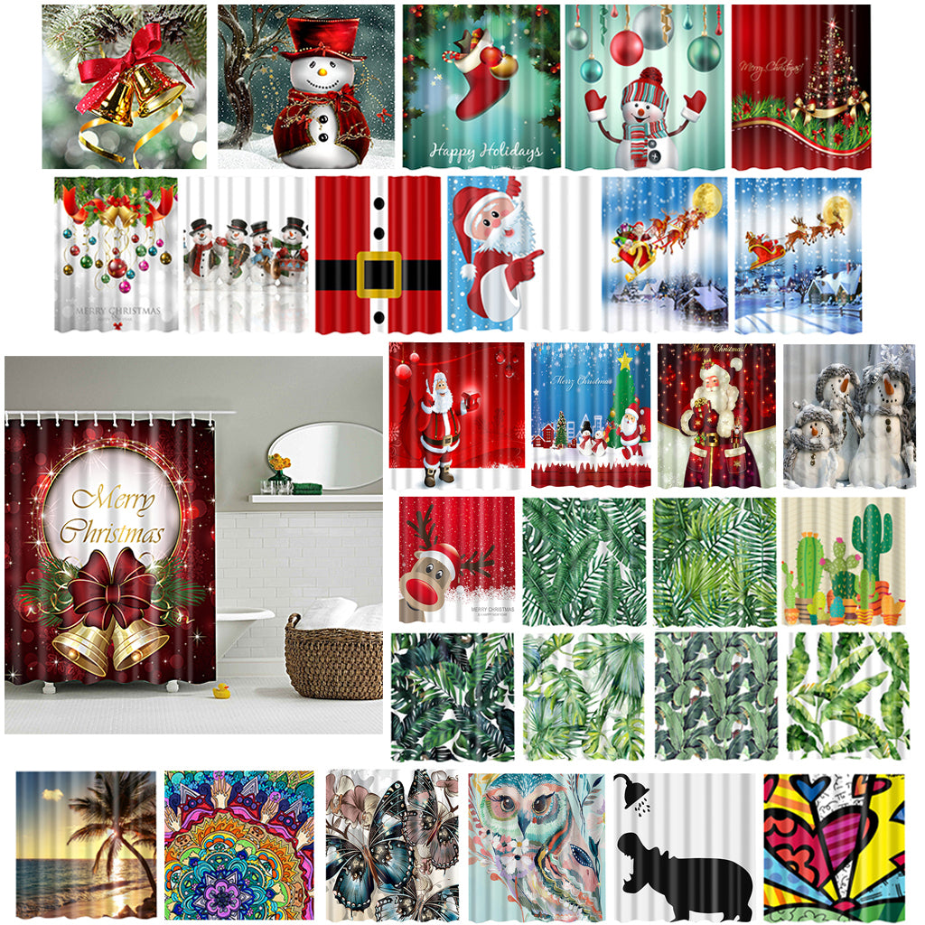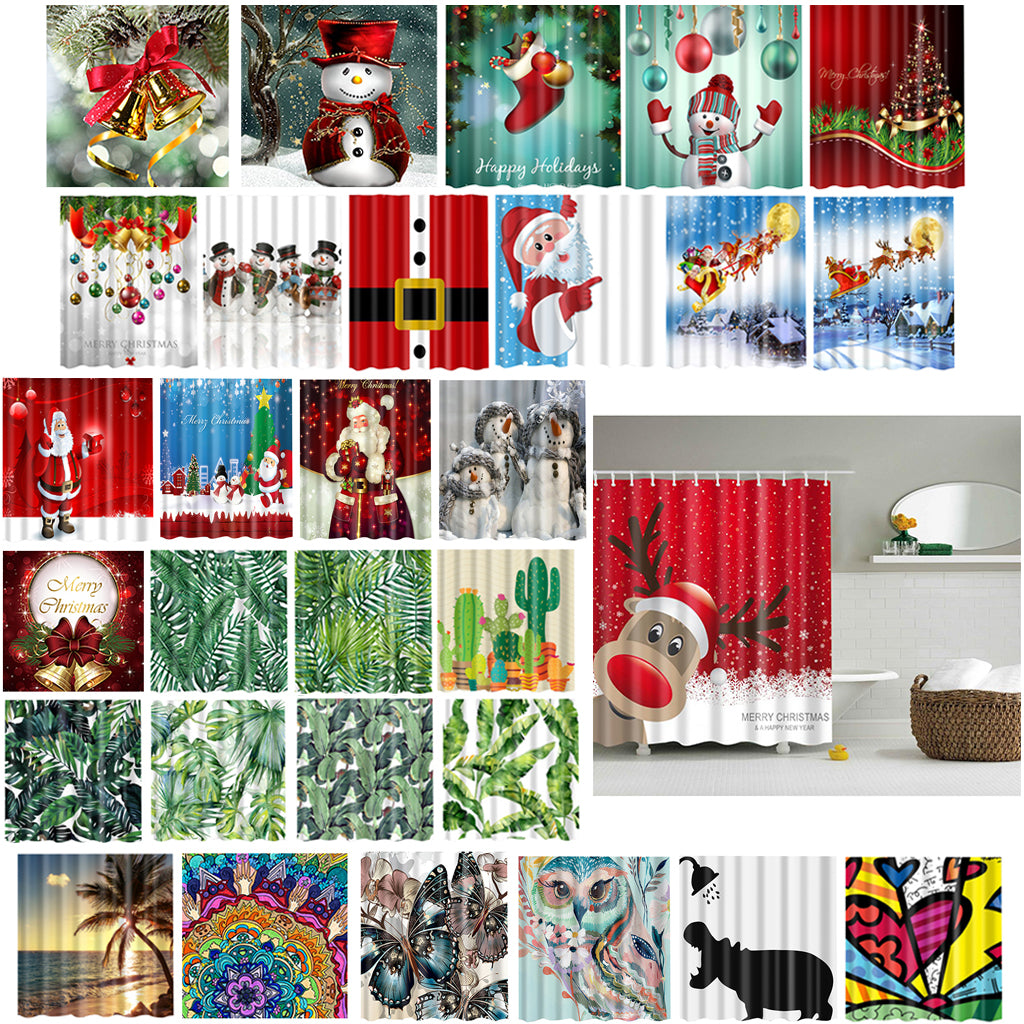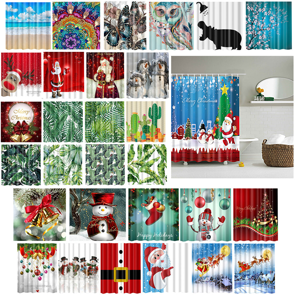 Bathroom Decor Shower Curtain Waterproof Fabric with Hooks Plum Blossom
