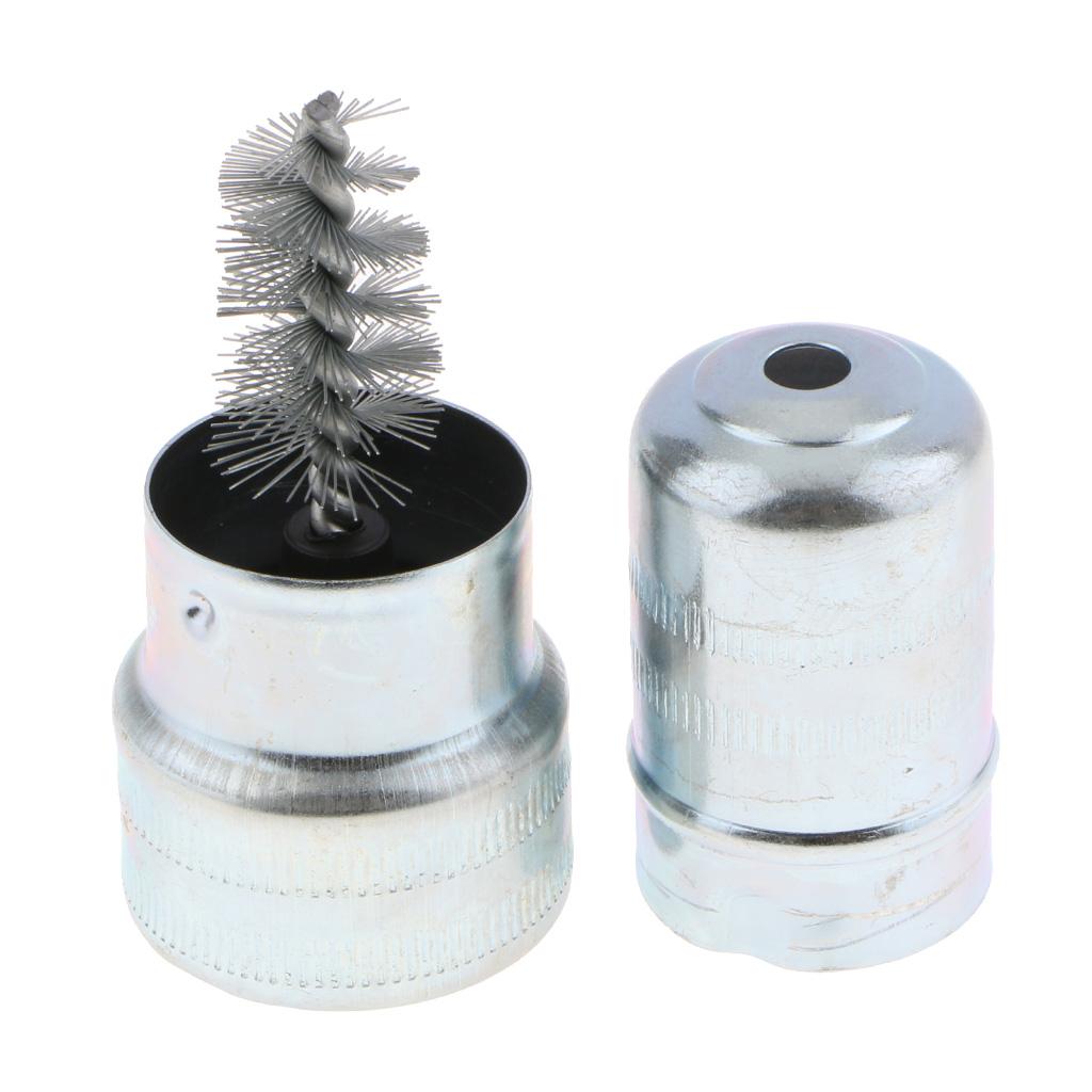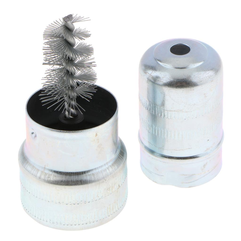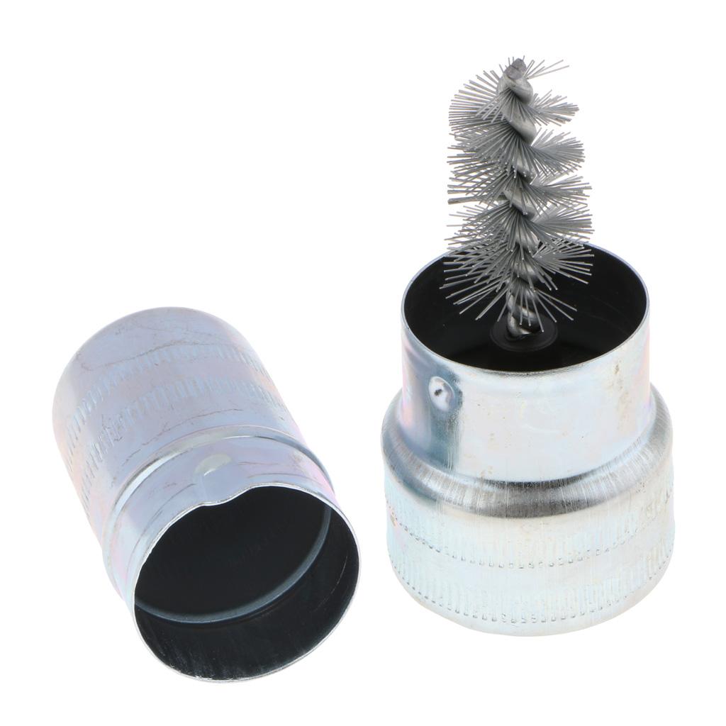 --Derusting the battery. Top brush cleans battery terminals. Bottom brush cleans battery posts.
