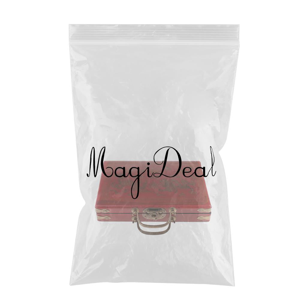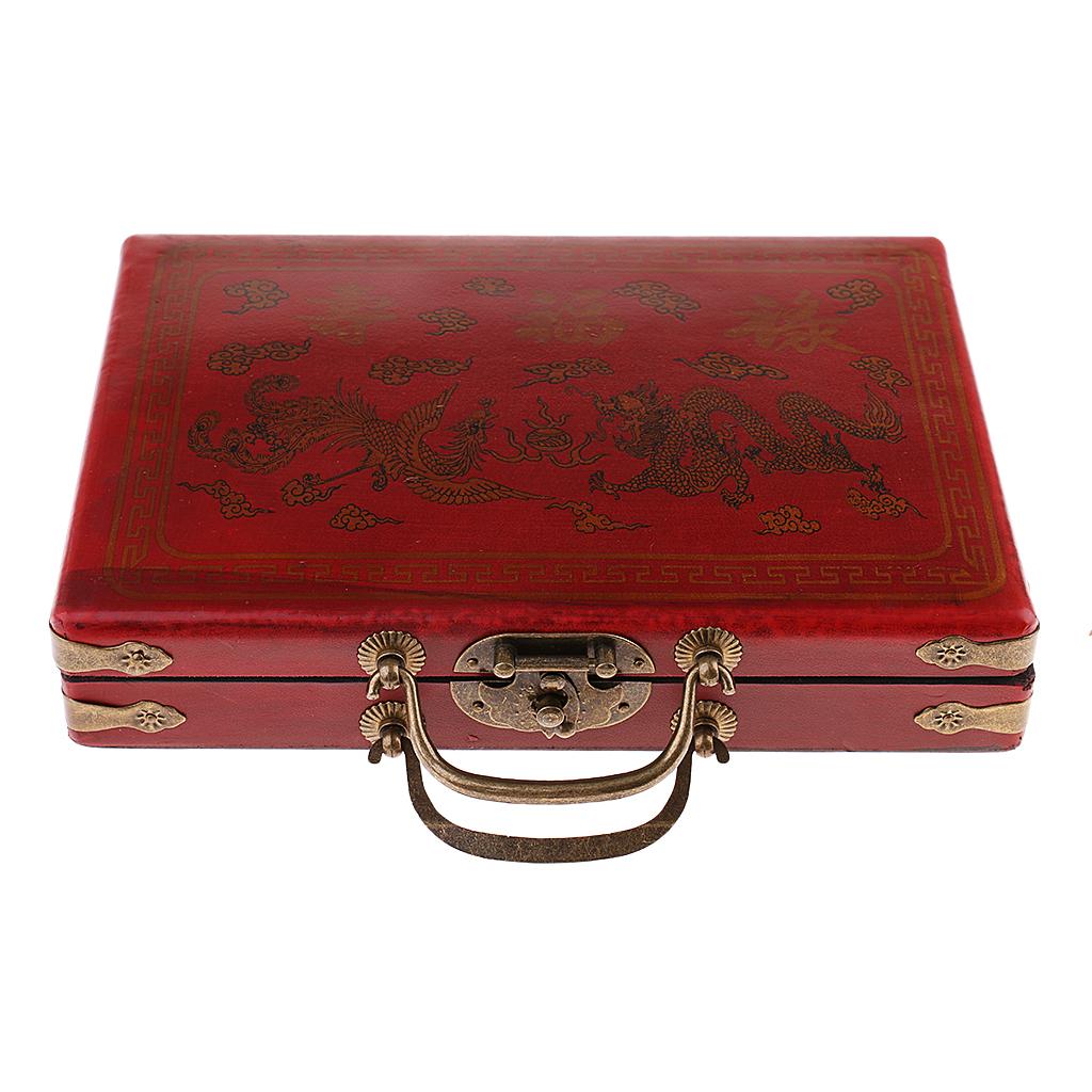 Chinese Antique Miniature 144 Mahjong Board Game in Vintage 2 Grids Phoenix Dragon Print Wooden Box