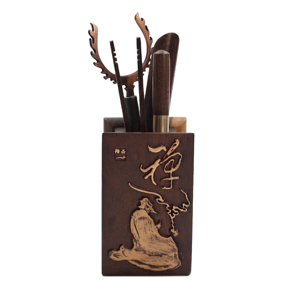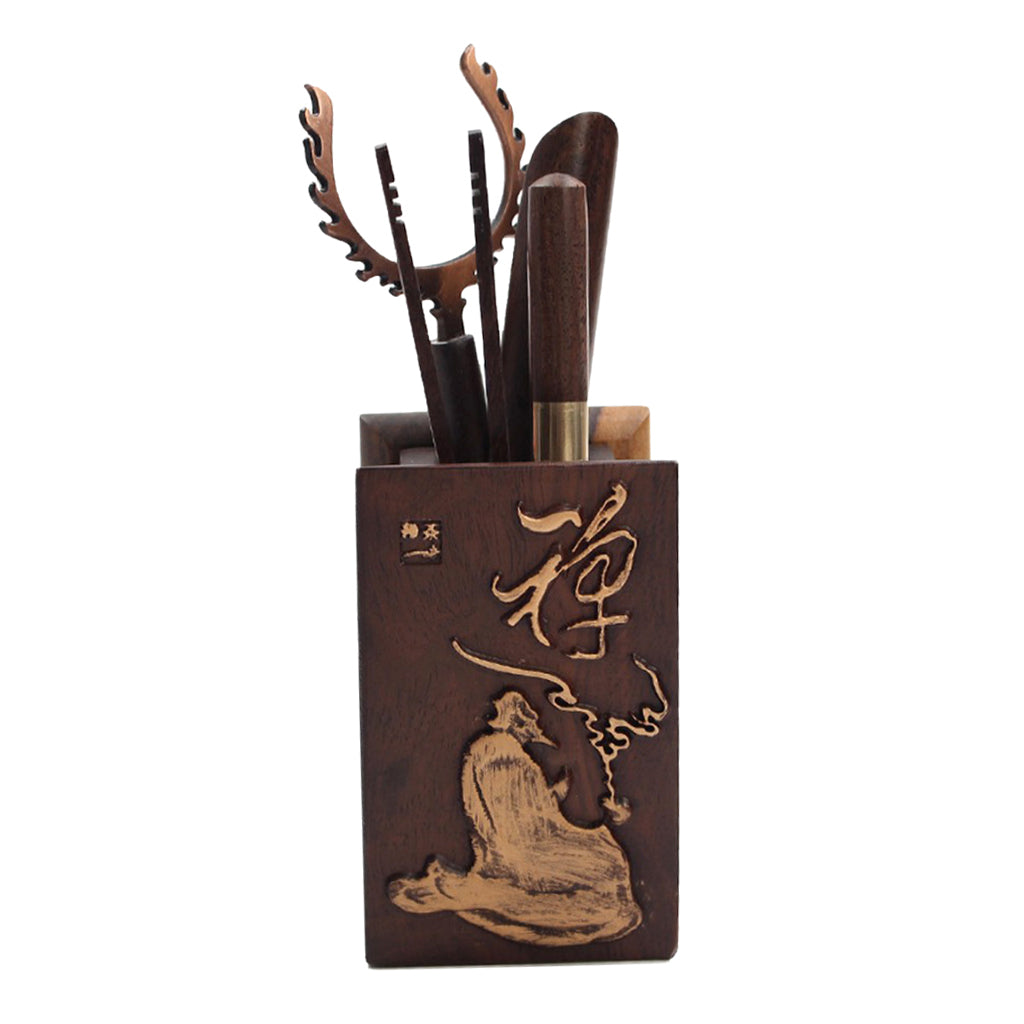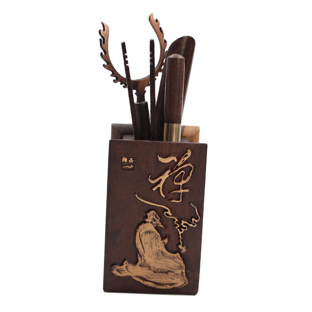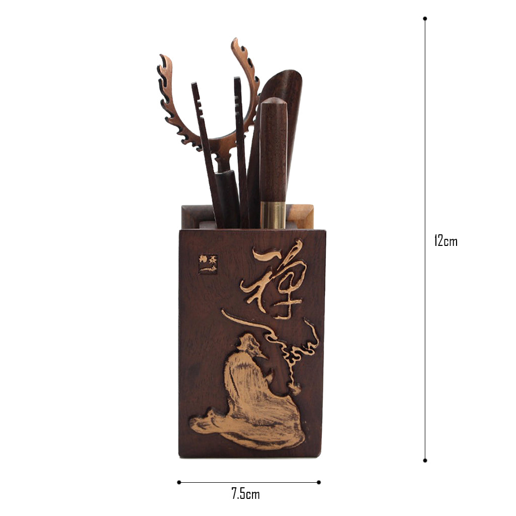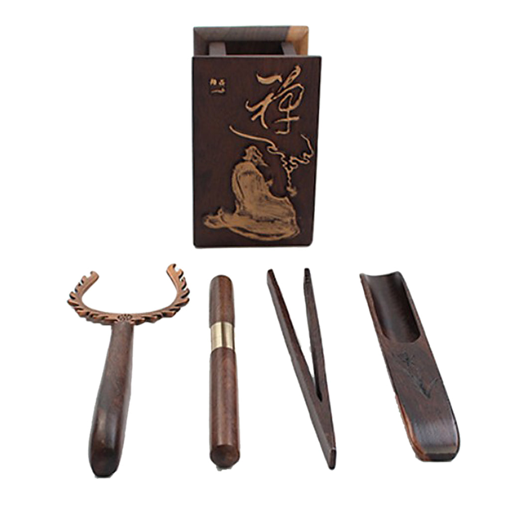 Chinese Tea Ceremony Utensil Set Tool Accessories Natural Ebony Wood Style_2