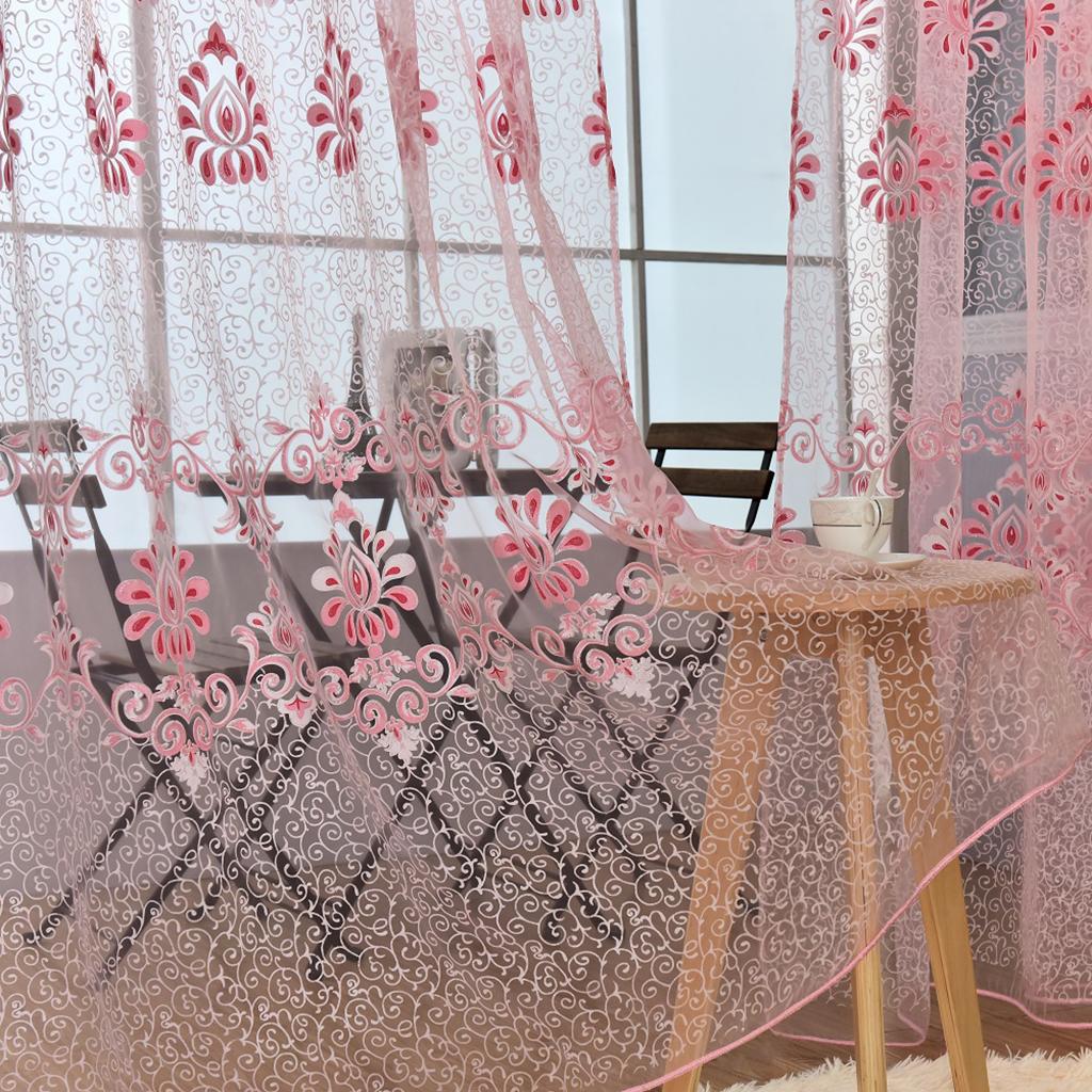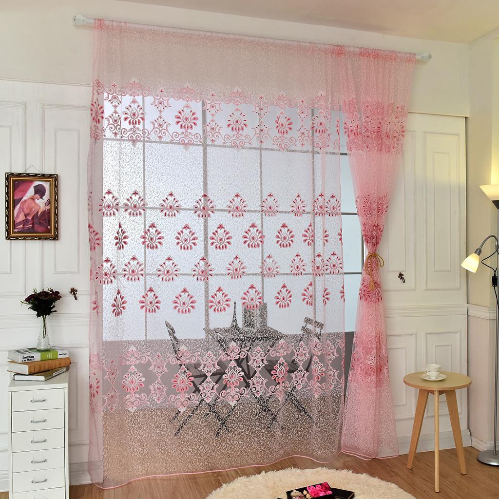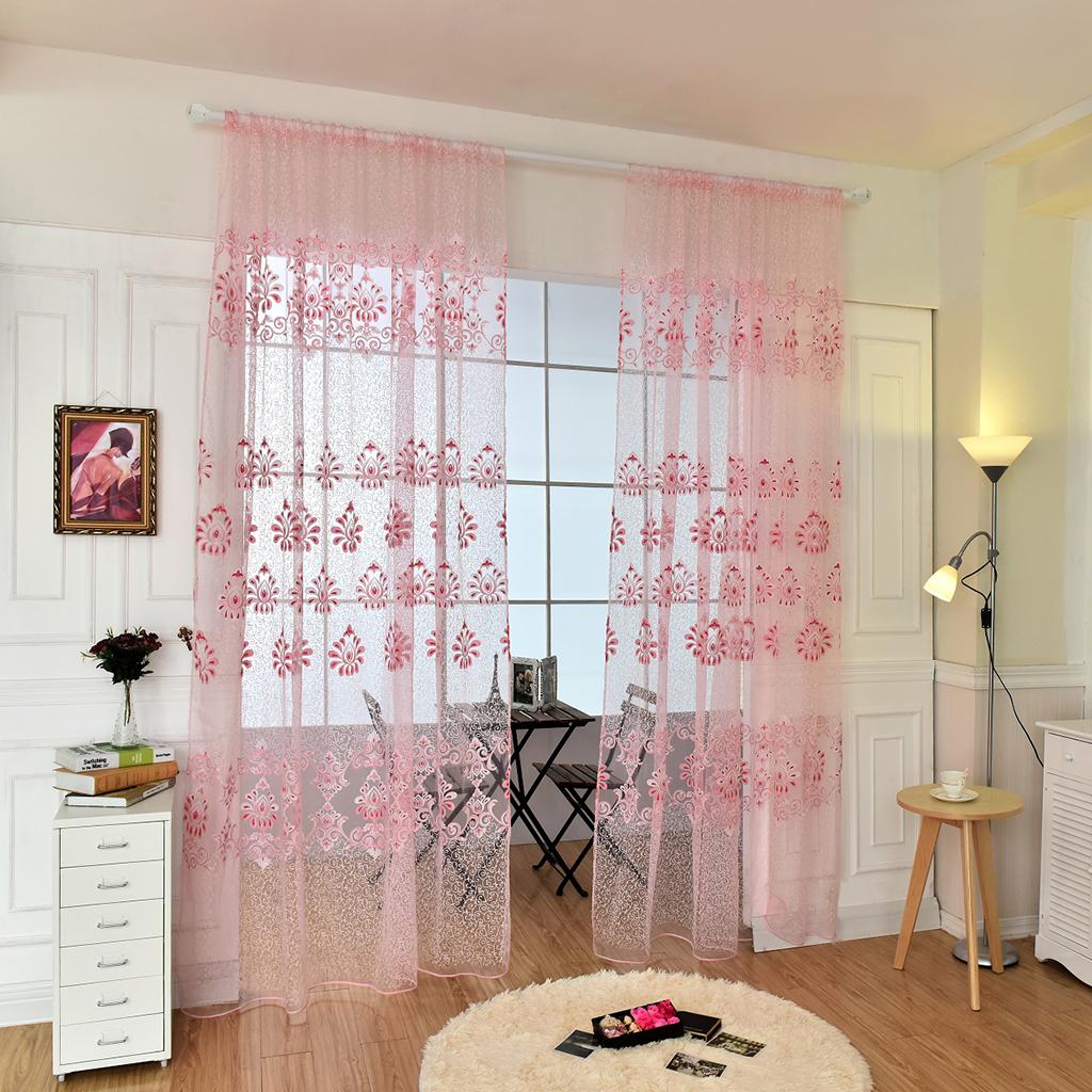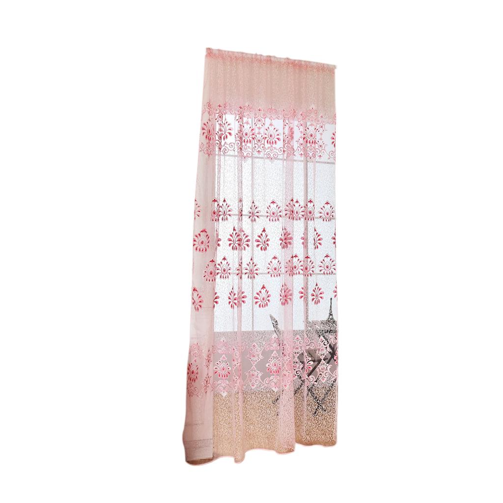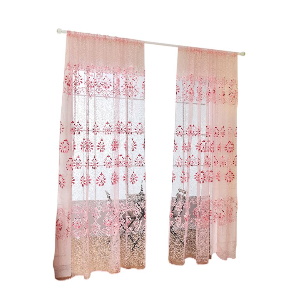 Classic Flower Tulle Voile Curtain Panel Sheer Drapes for Room Window Pink