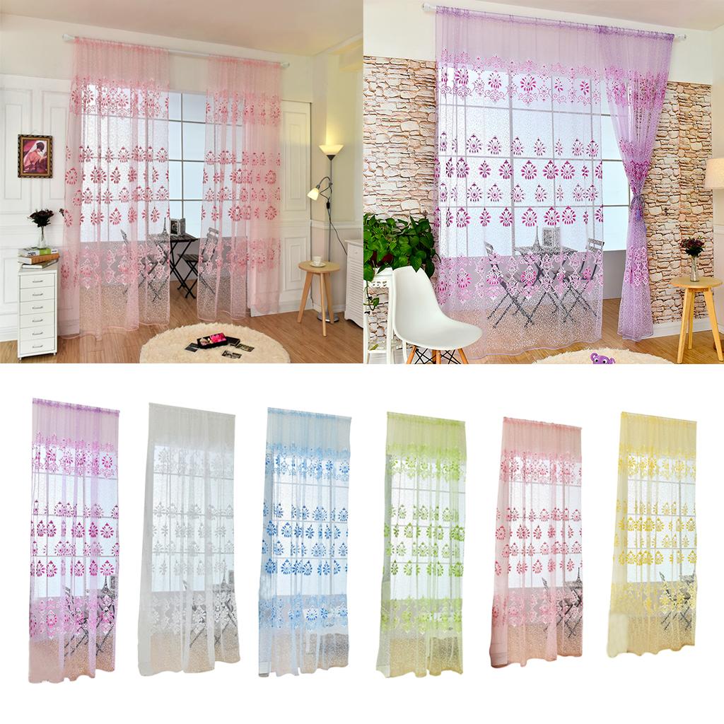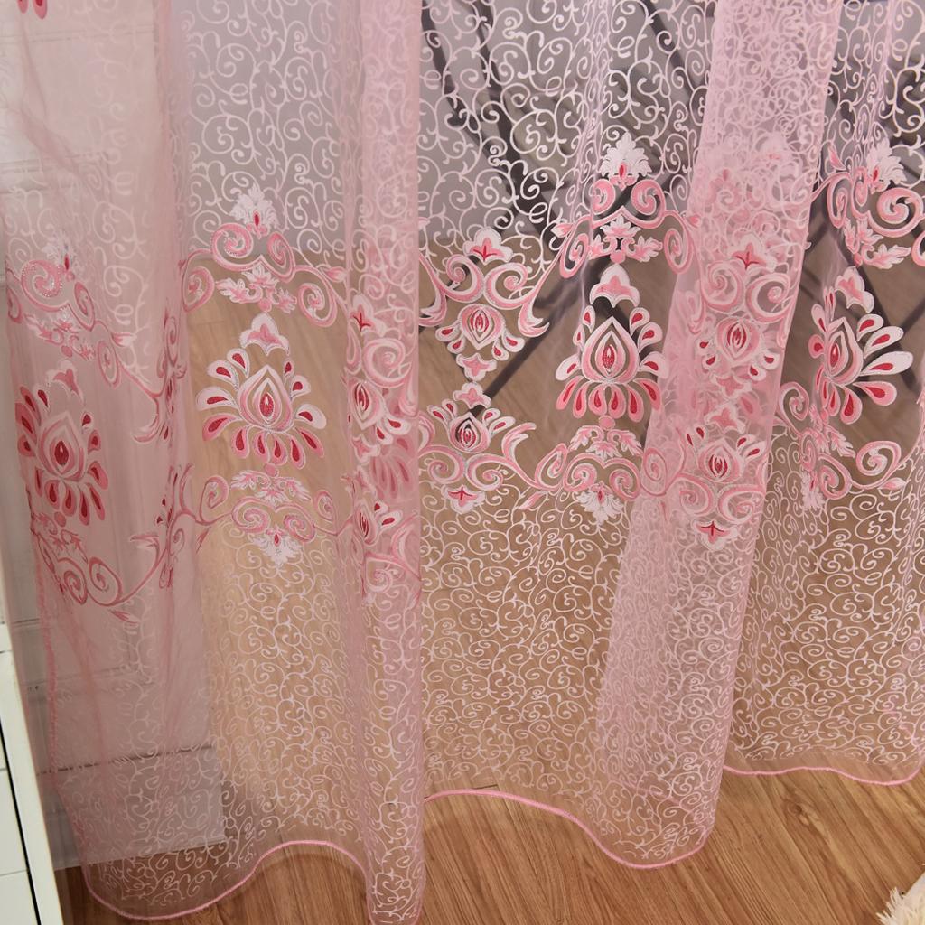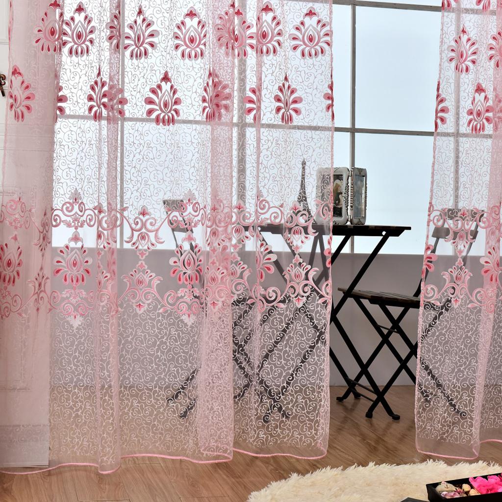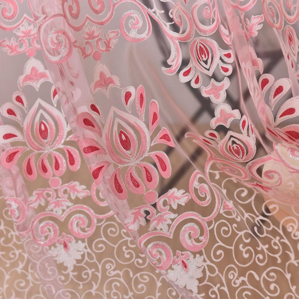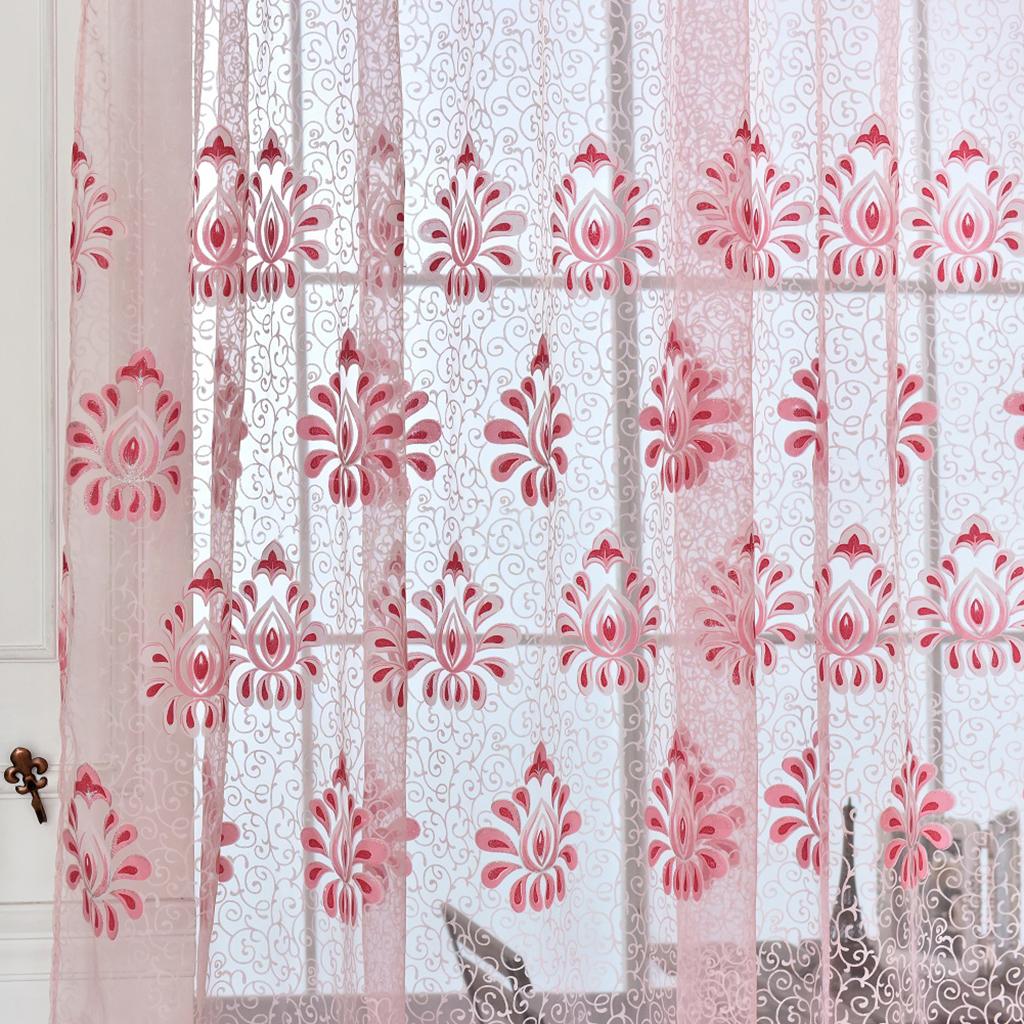 Classic Flower Tulle Voile Curtain Panel Sheer Drapes for Room Window Pink