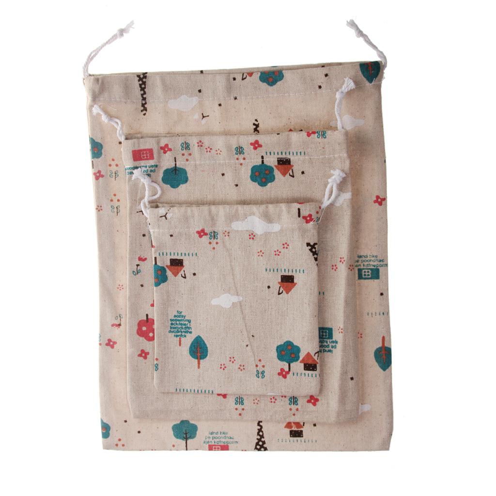 Cotton Linen Socks Bag Cosmetic Pouch Organizer Drawstring Bag Holder Eiffel
