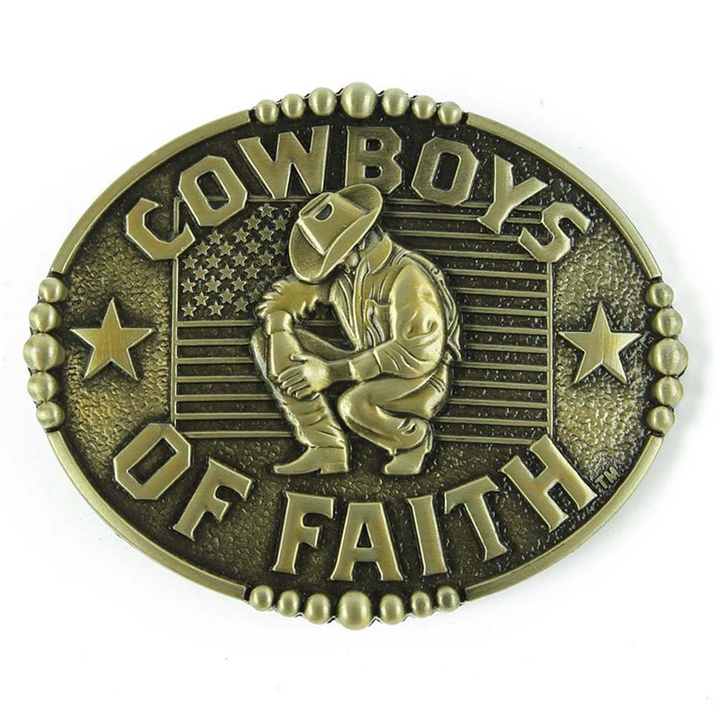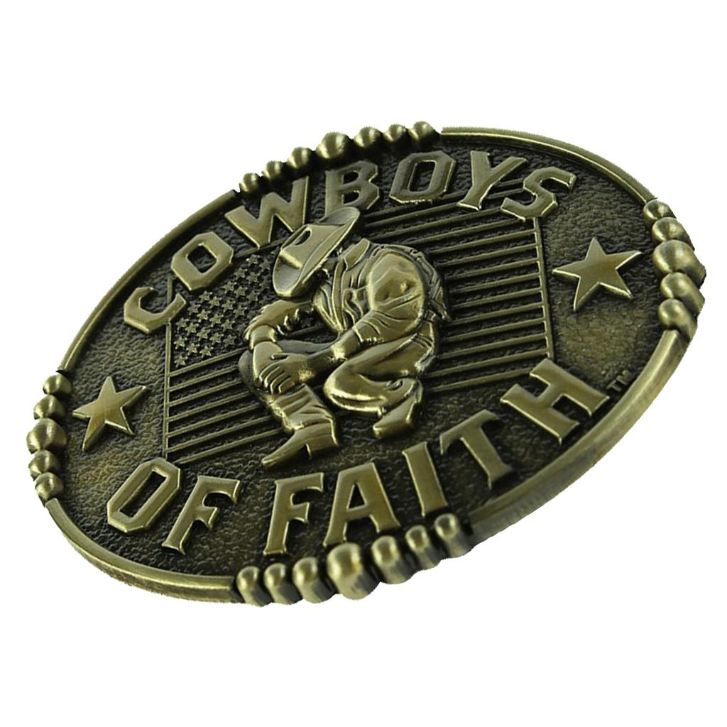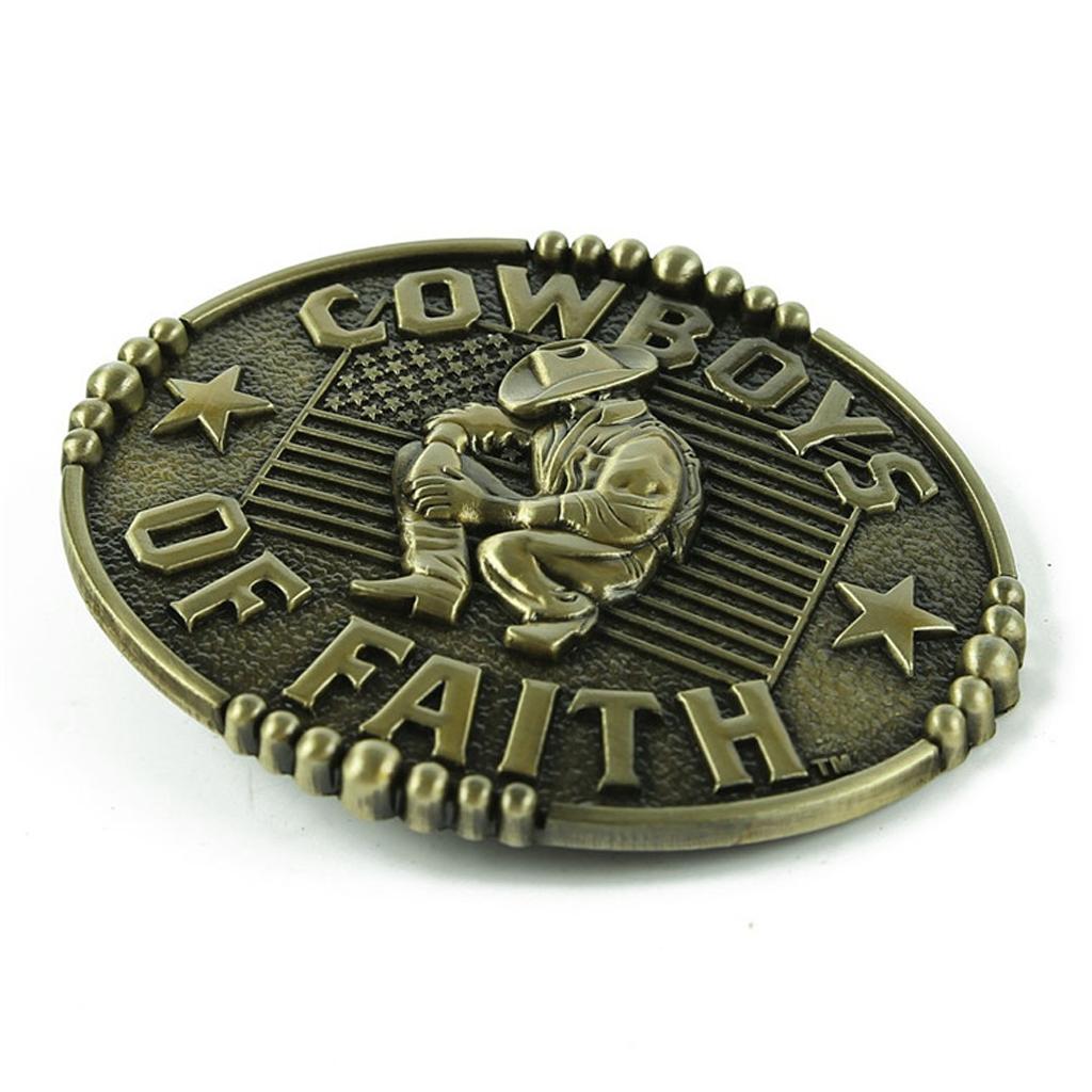Metal Finished, Hight Quality, a man with COWBOYS OF FAITH design, Zinc Alloy finish Belt Buckle.