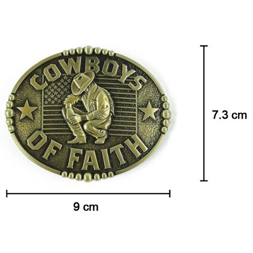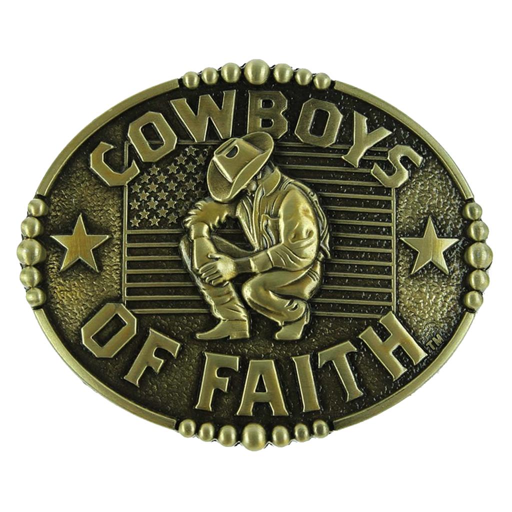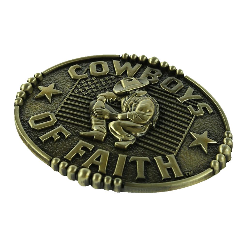 Metal Finished, Hight Quality, a man with COWBOYS OF FAITH design, Zinc Alloy finish Belt Buckle.
