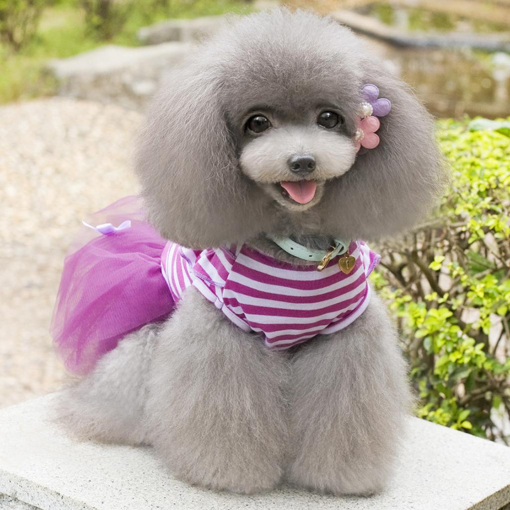 Cute Small Puppy Pet Dog Stripe Bow Lace Skirt Princess Dress Purple--XL