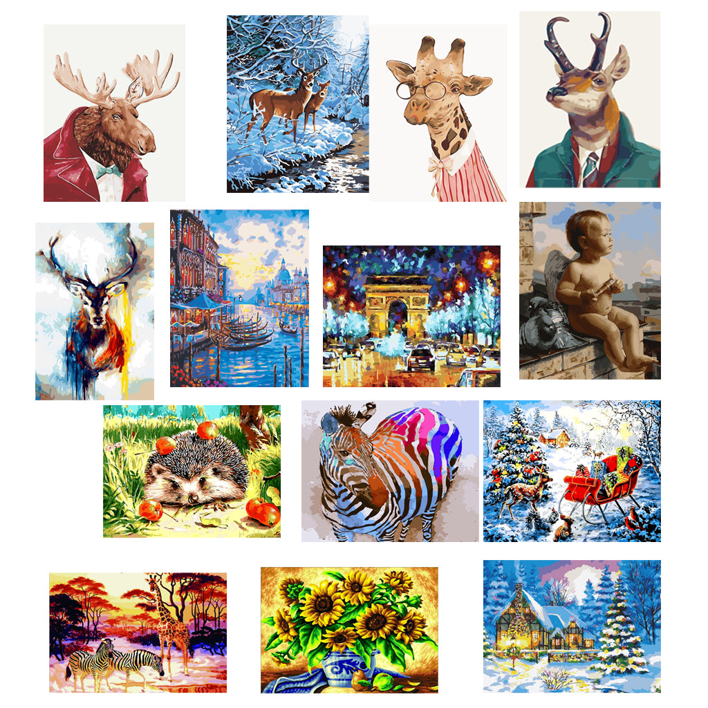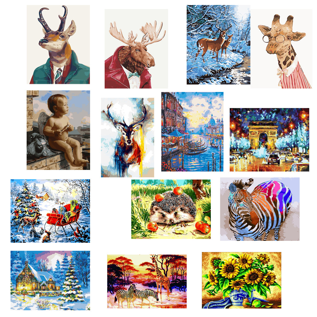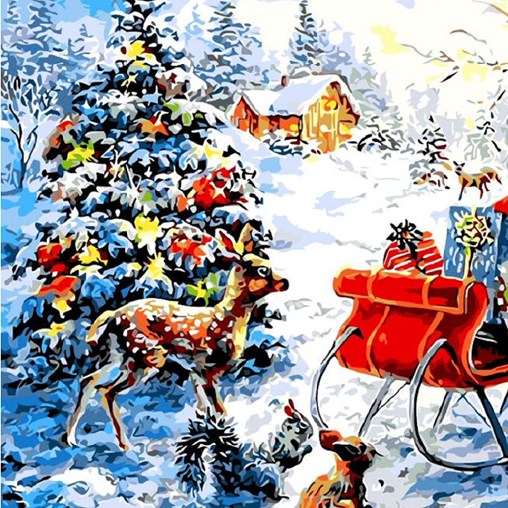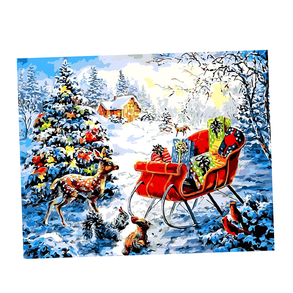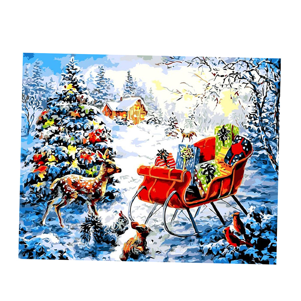 DIY Painting By Numbers Frameless Canvas Picture Christmas Deer Gifts