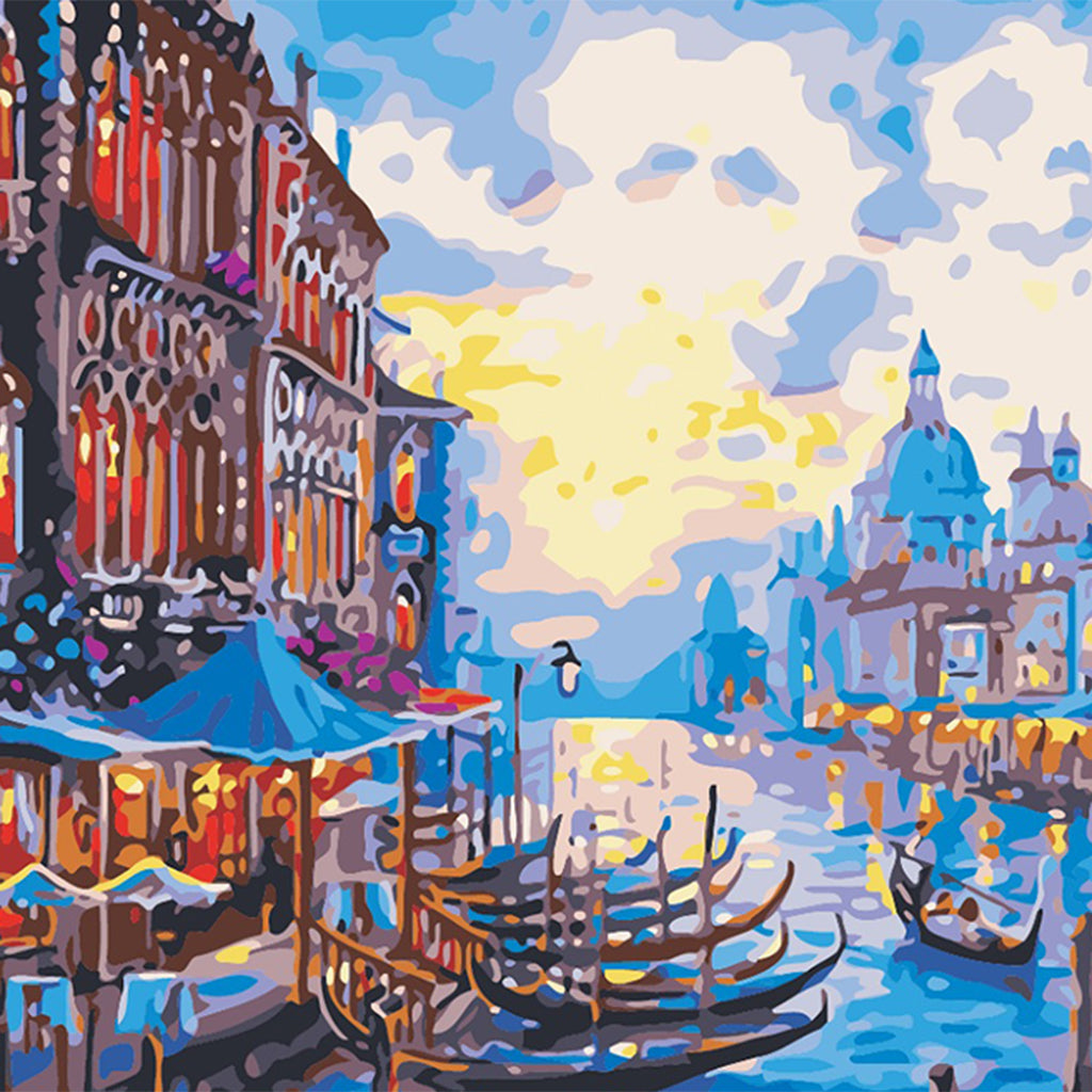DIY Painting By Numbers Frameless Canvas Picture Water City