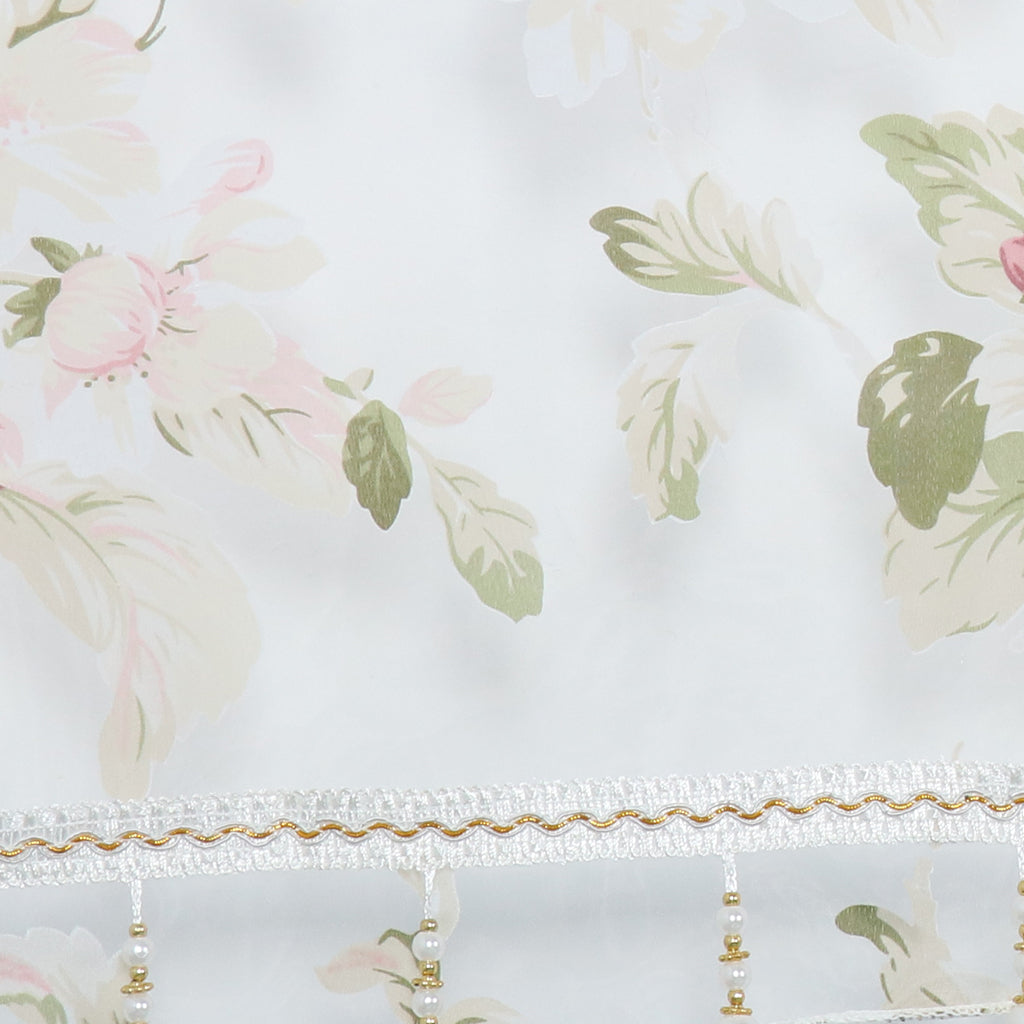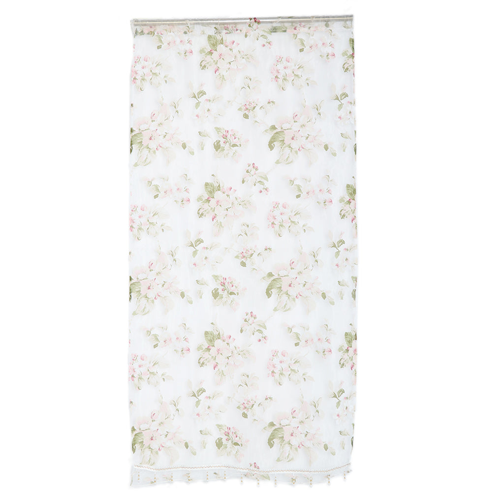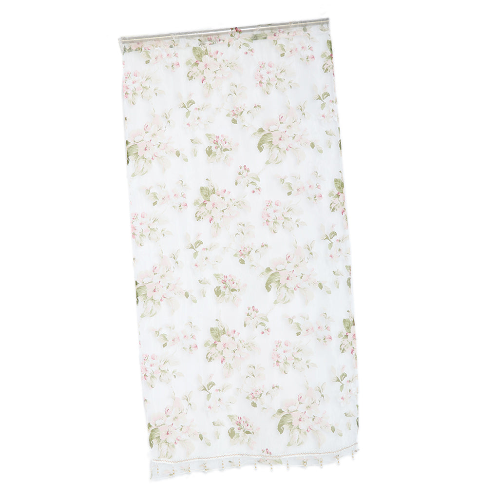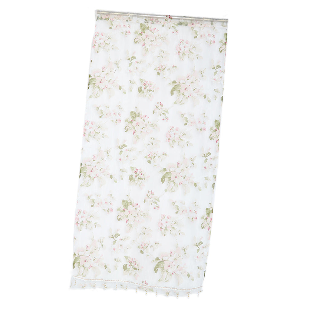 Floral Tulle Sheer Curtains Window Blinds Panel Bead Trims Pink 100x200cm