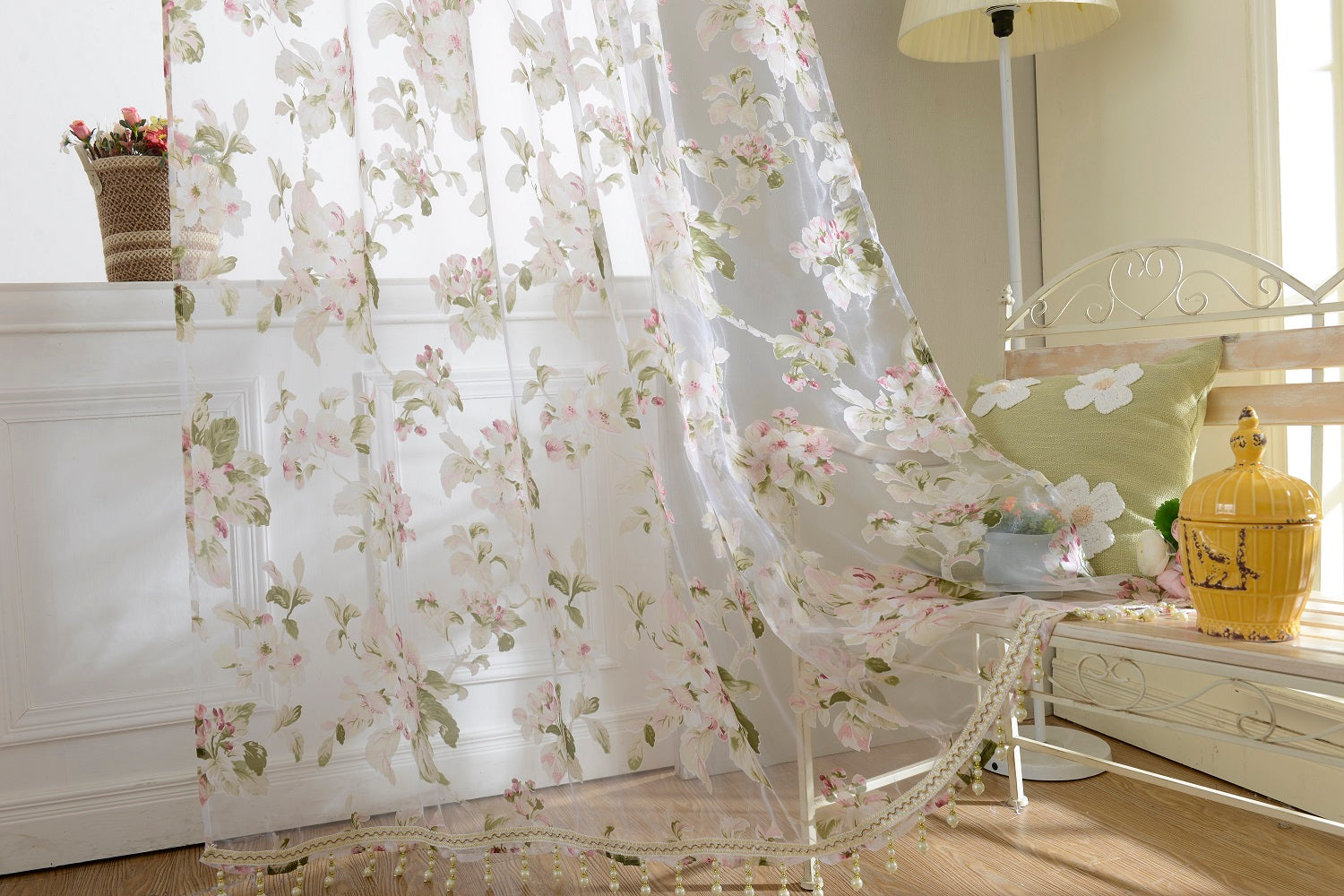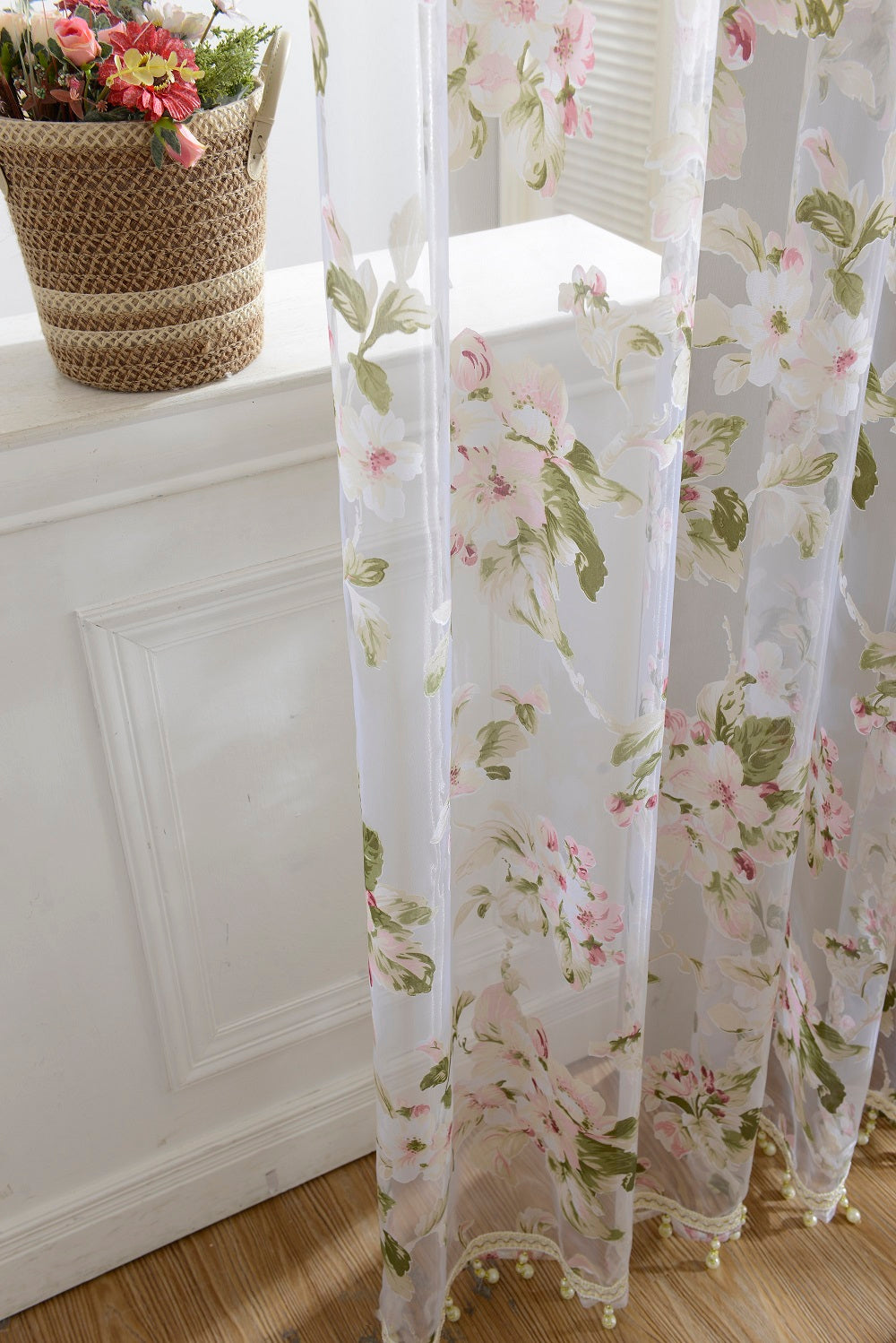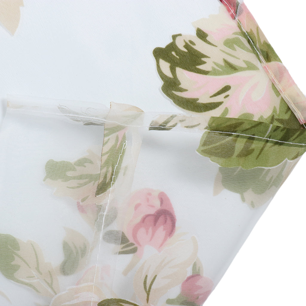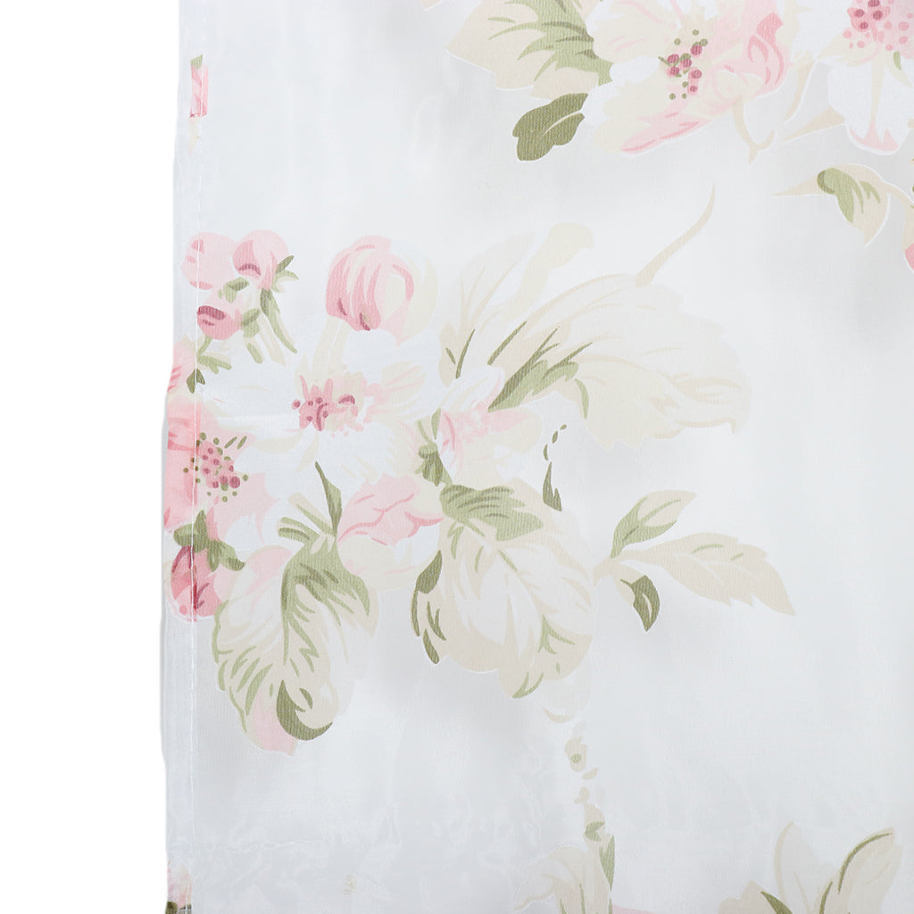 Floral Tulle Sheer Curtains Window Blinds Panel Bead Trims Pink 100x200cm