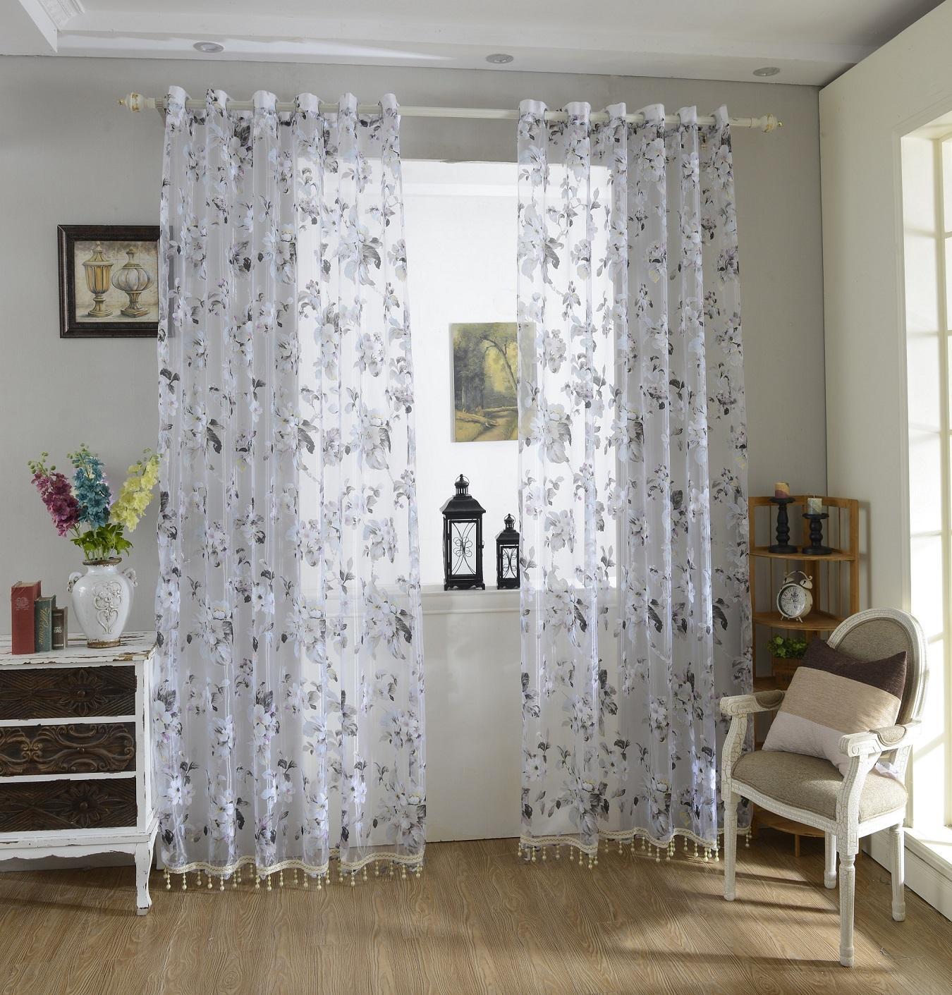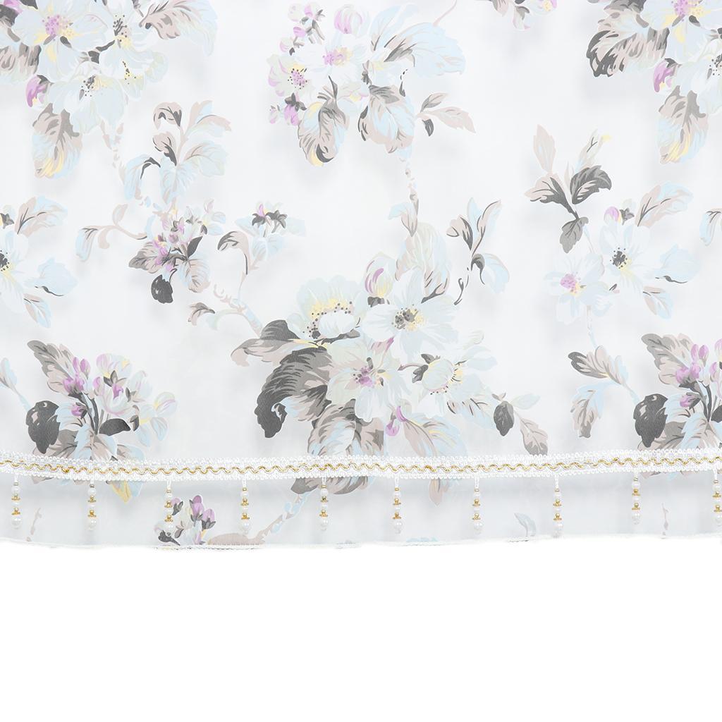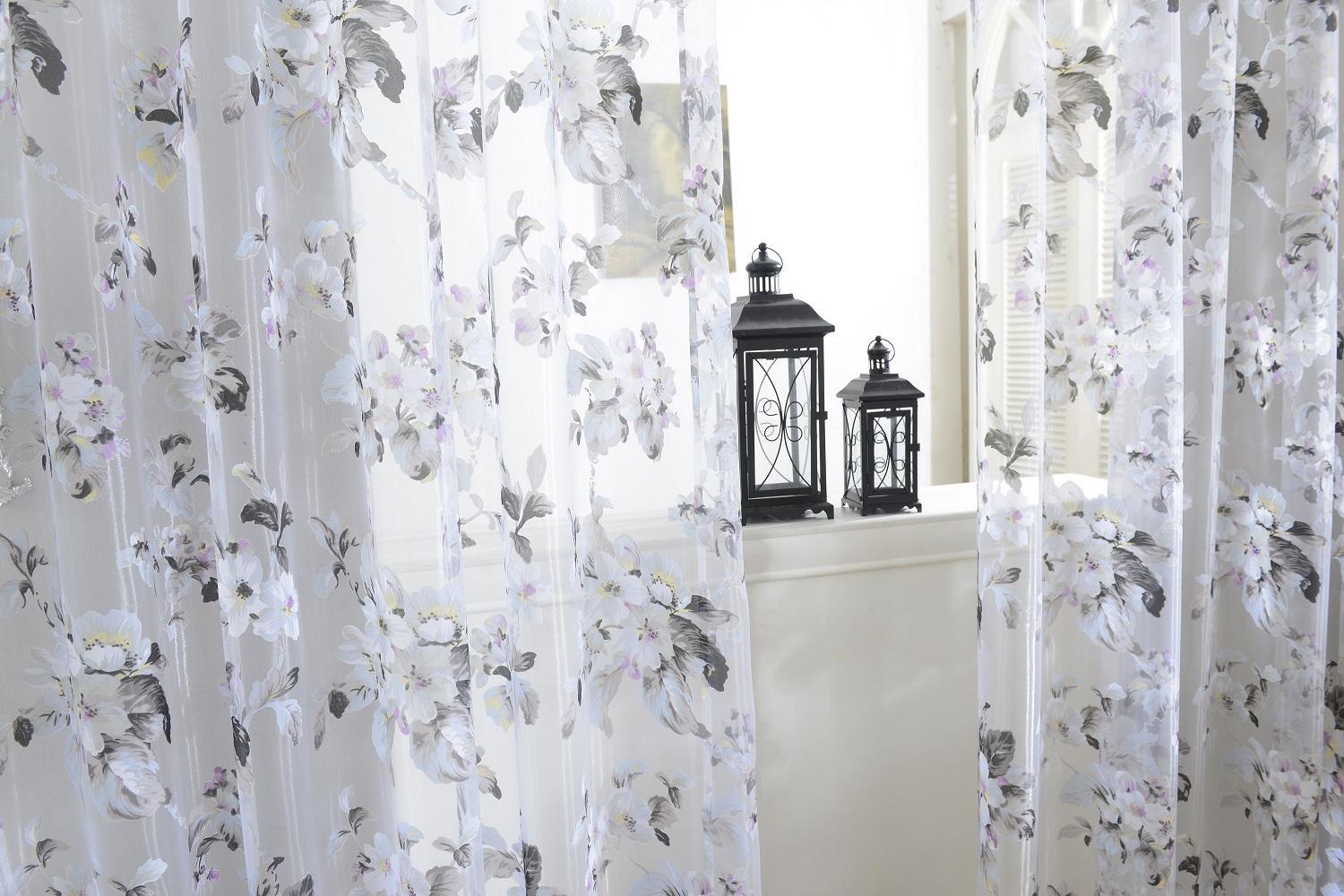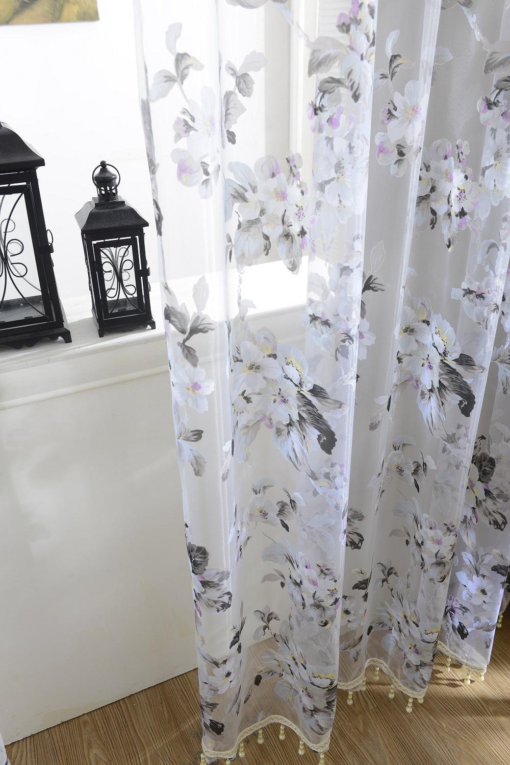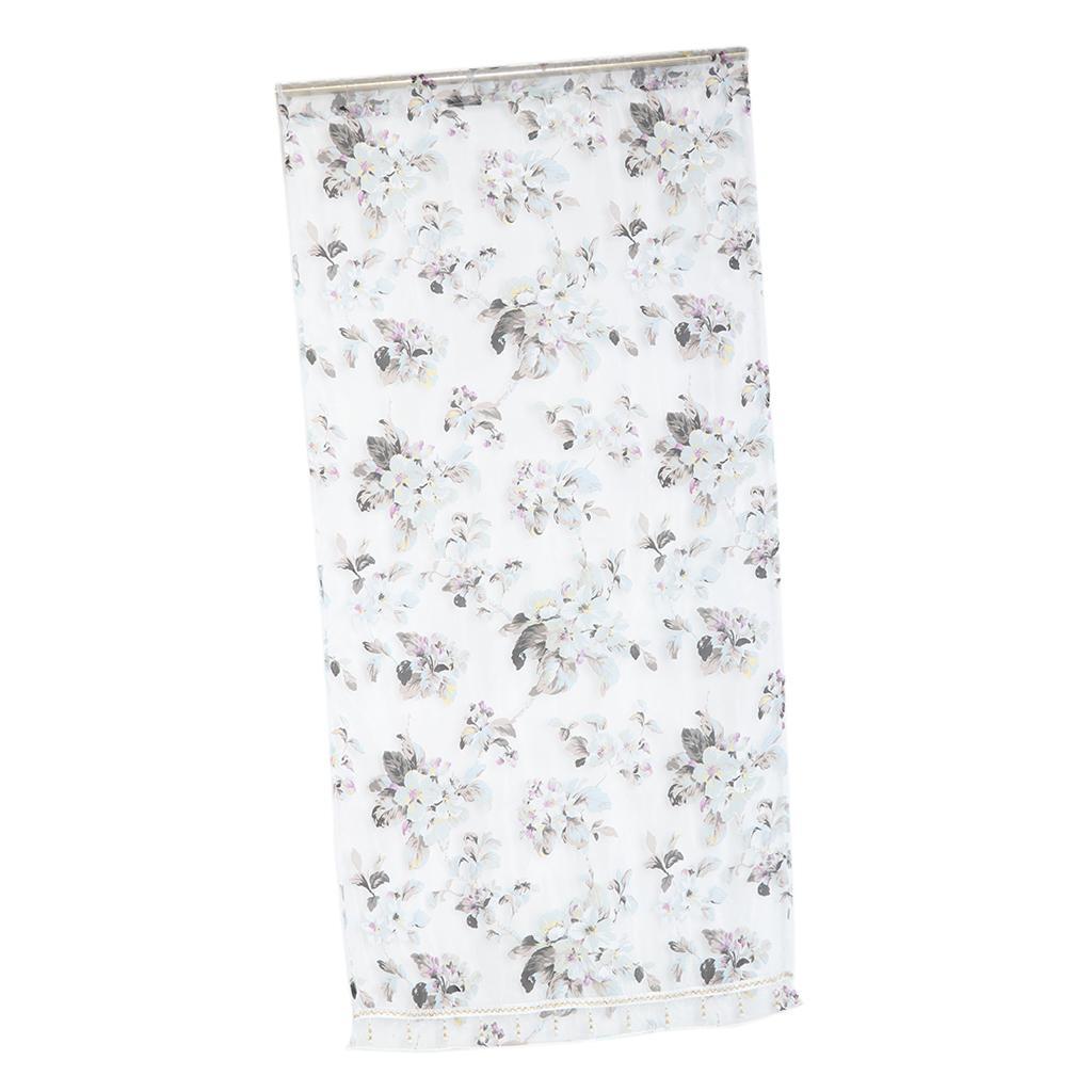Floral Tulle Sheer Curtains Window Blinds Panel Beads Trims Purple 100x200cm