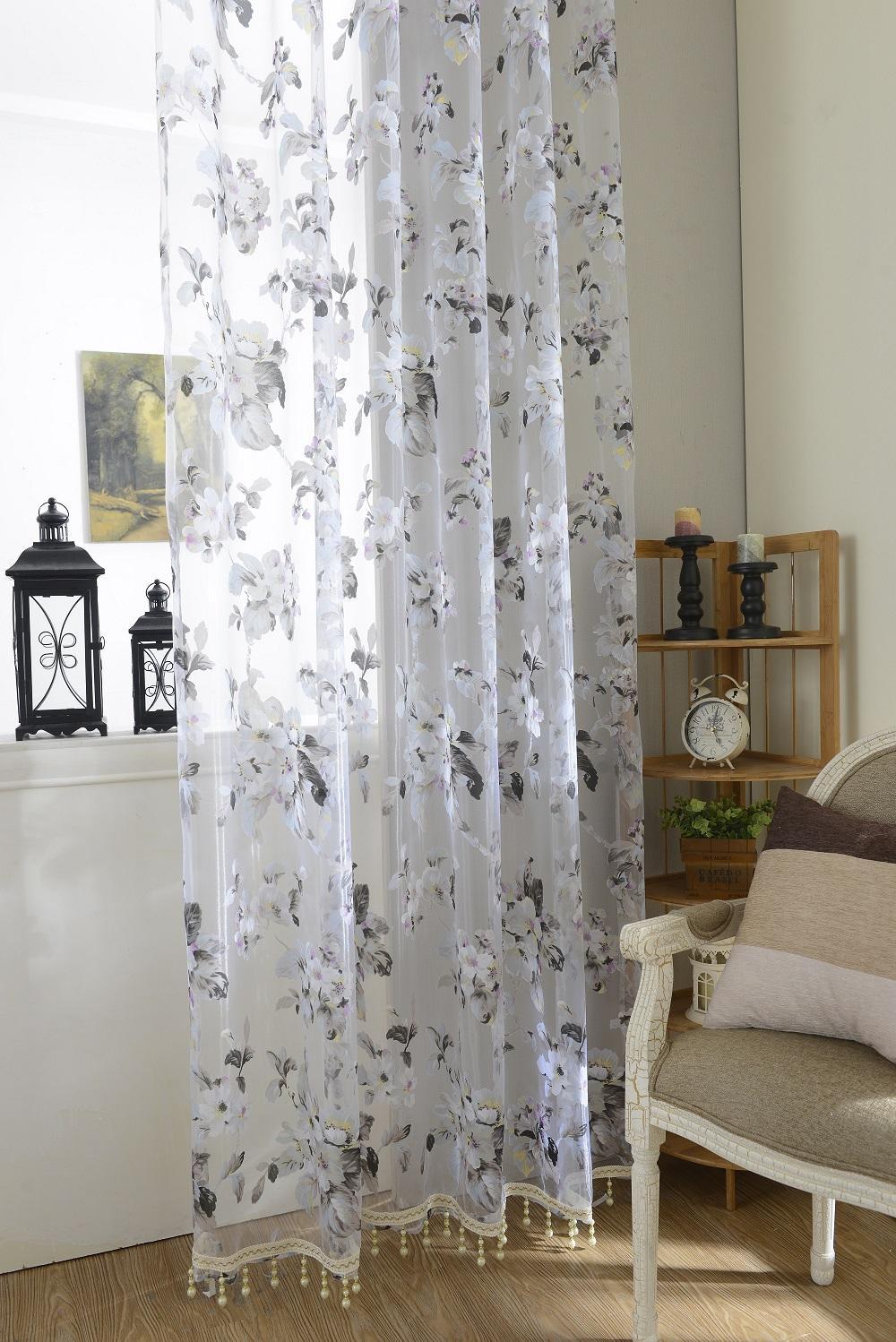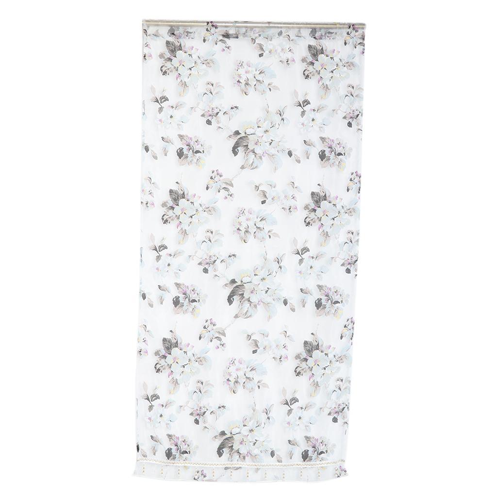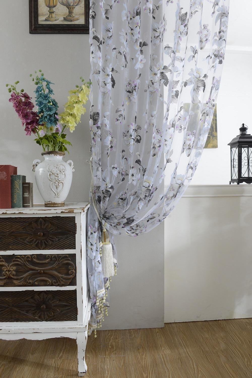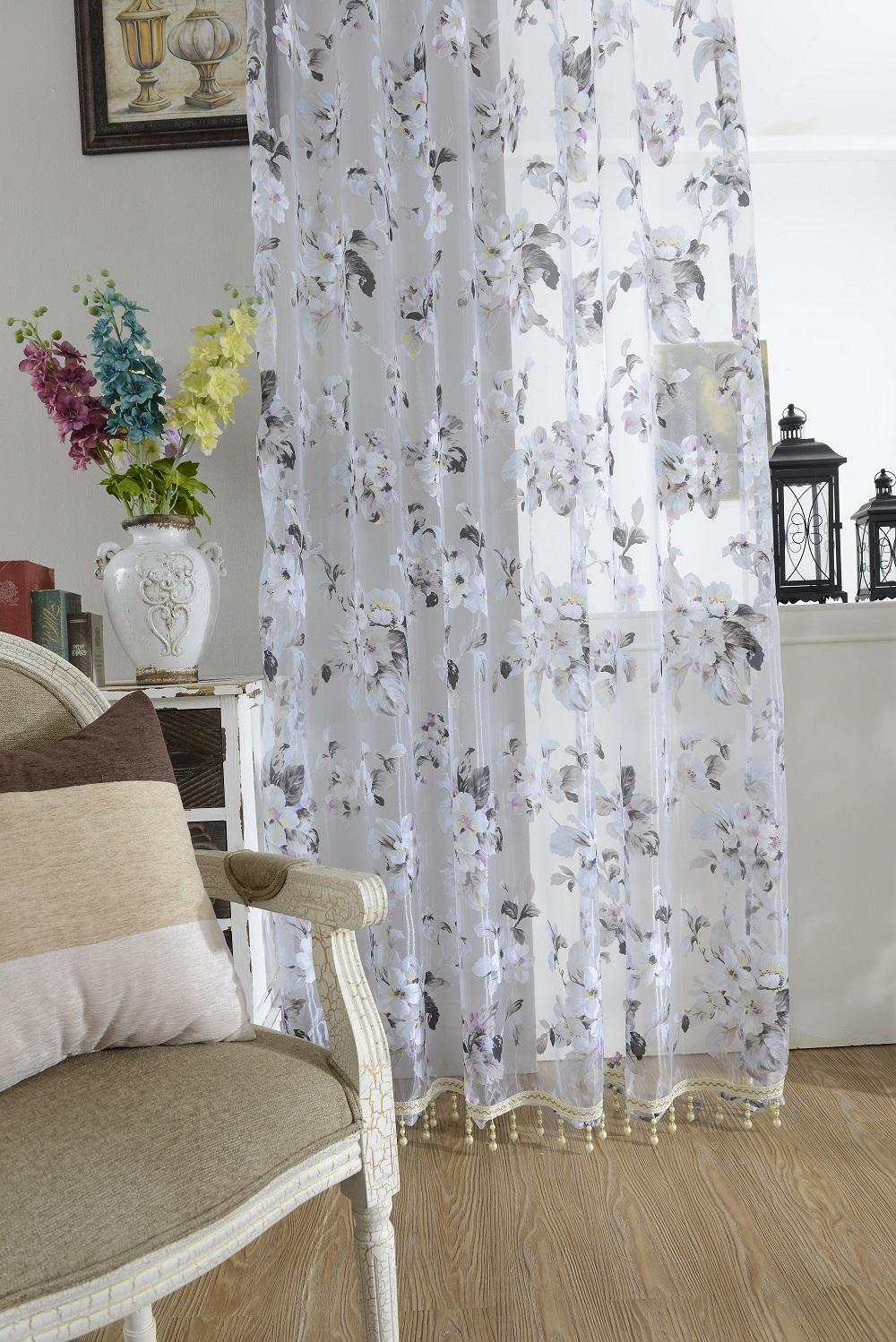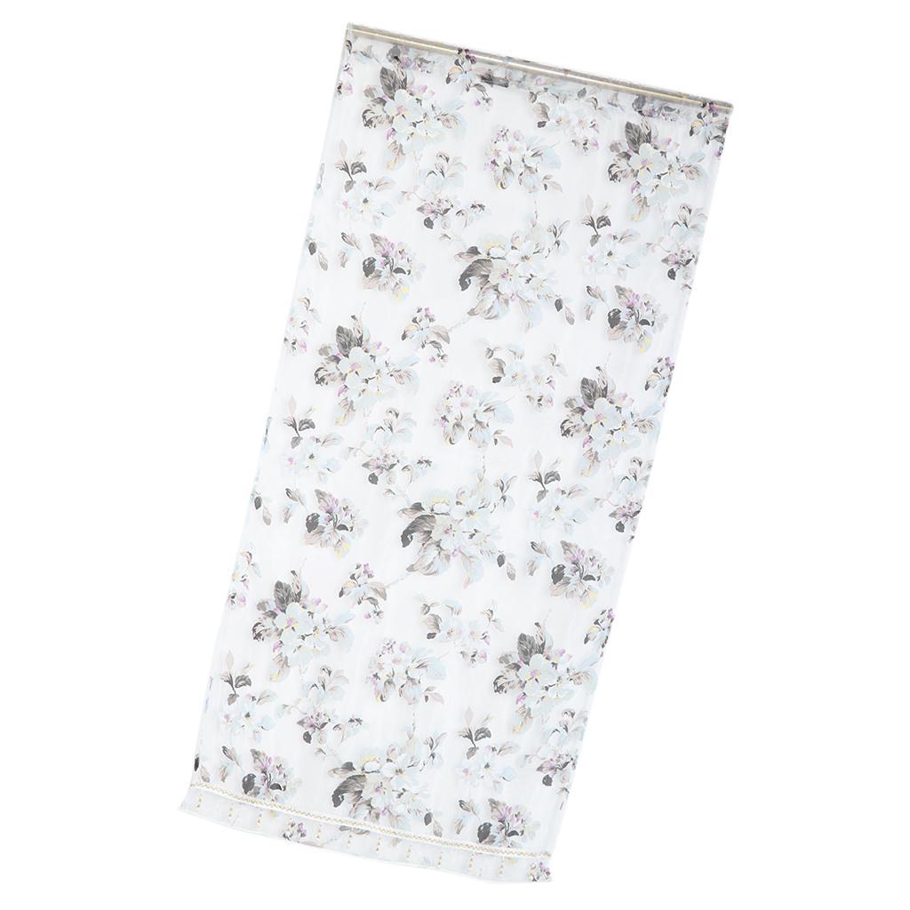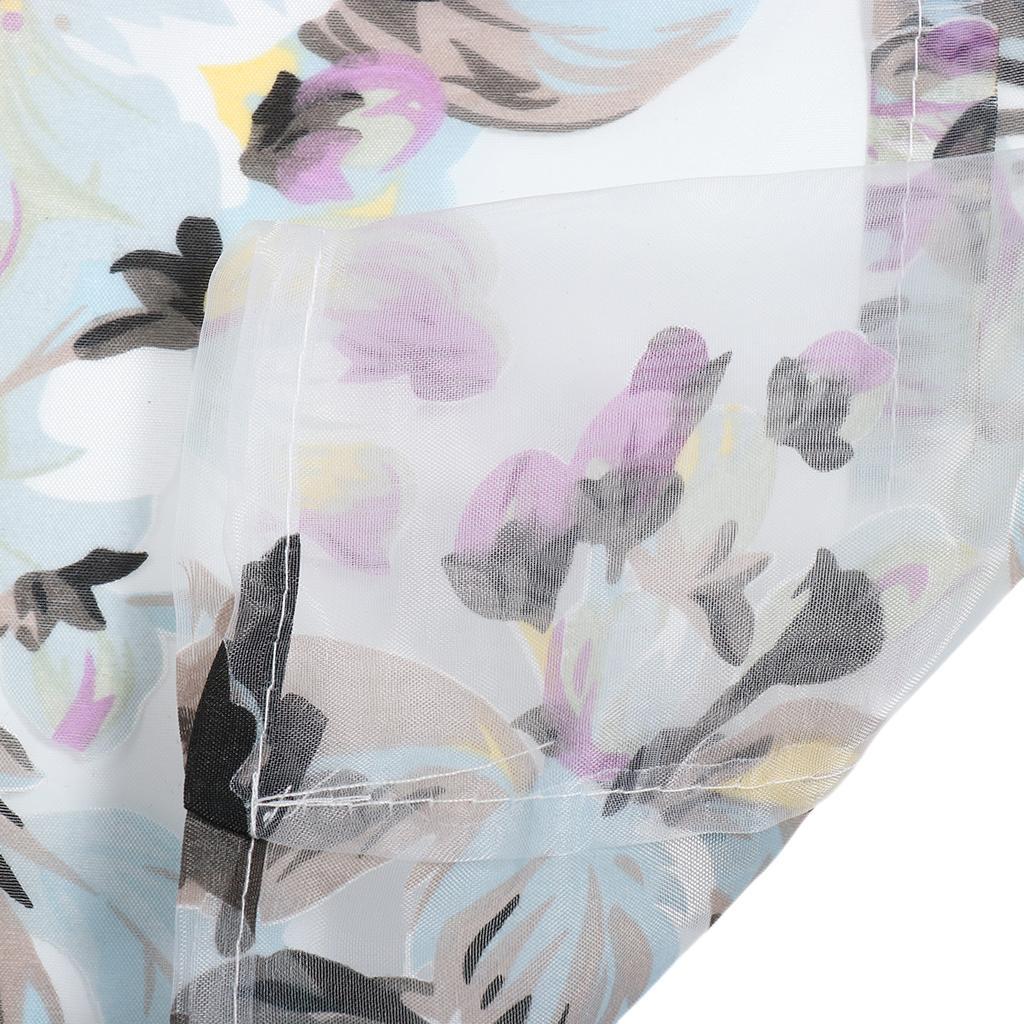 Floral Tulle Sheer Curtains Window Blinds Panel Beads Trims Purple 100x200cm