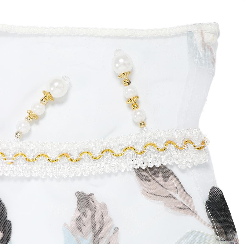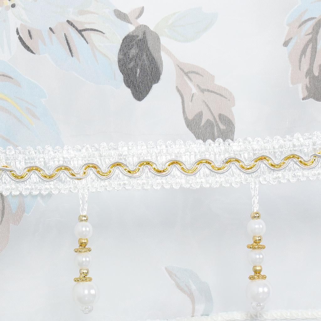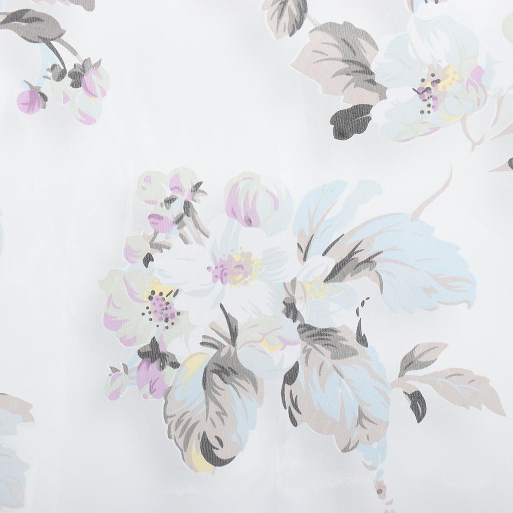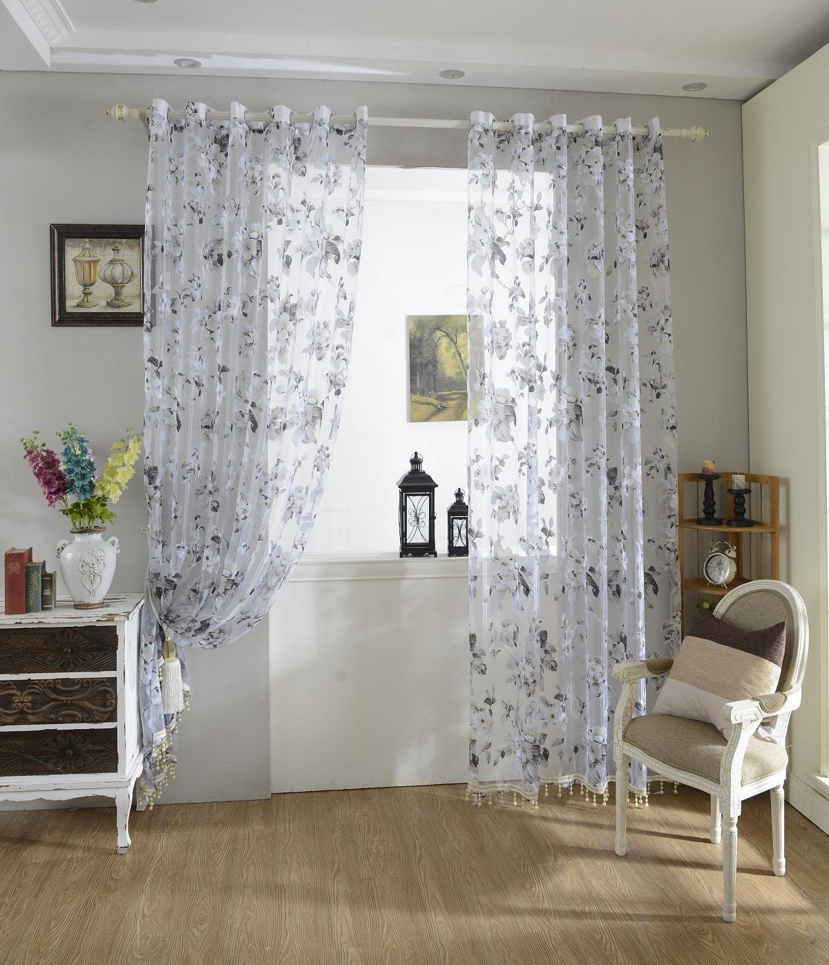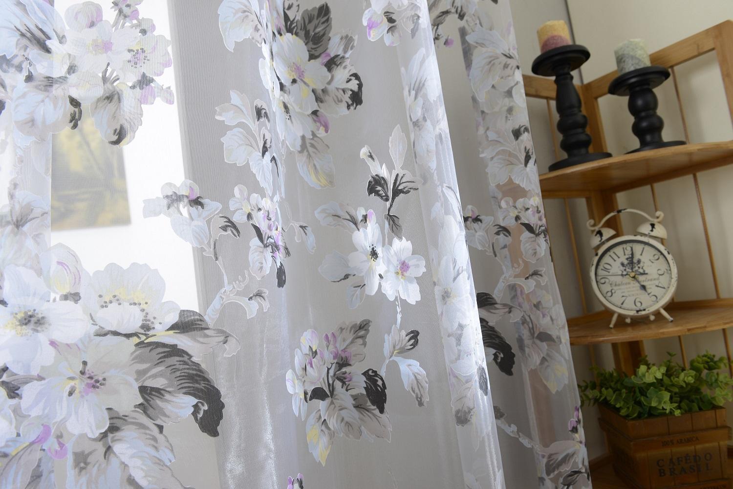 Floral Tulle Sheer Curtains Window Blinds Panel Beads Trims Purple 100x200cm