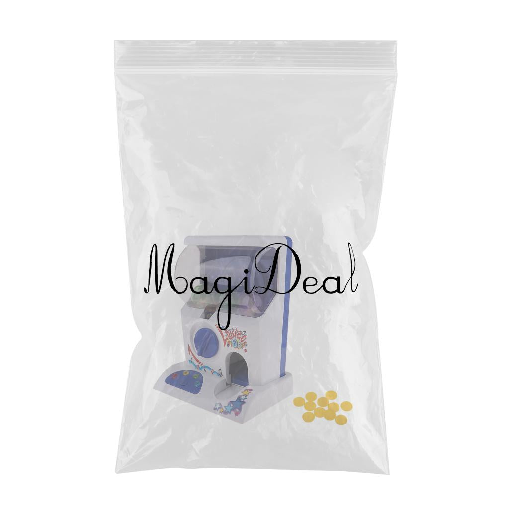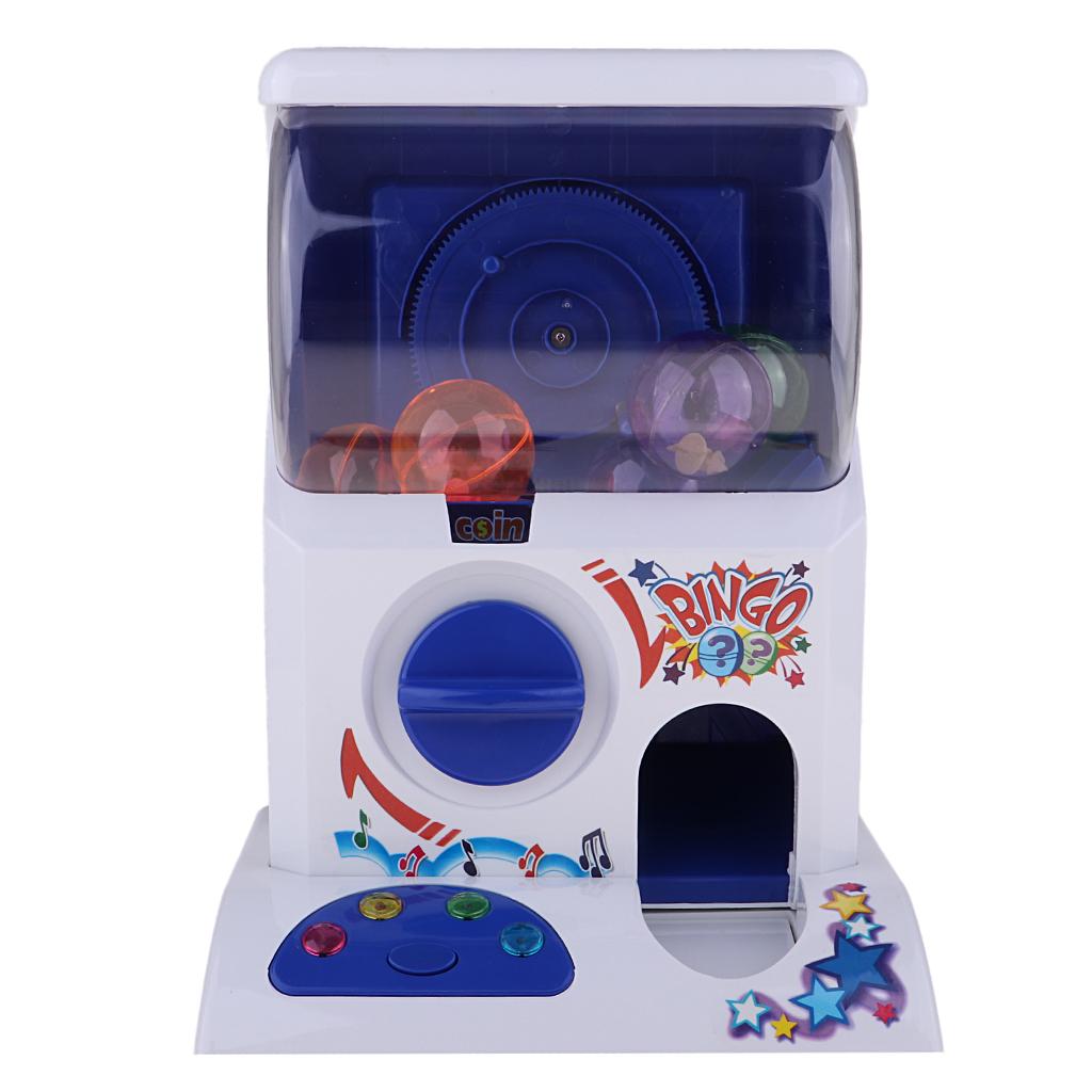 load the tabletop machine with your choice of small capsule toys, candy and gum. Use the included token coins to activate the machine, then rotate the switch to get your prizes.