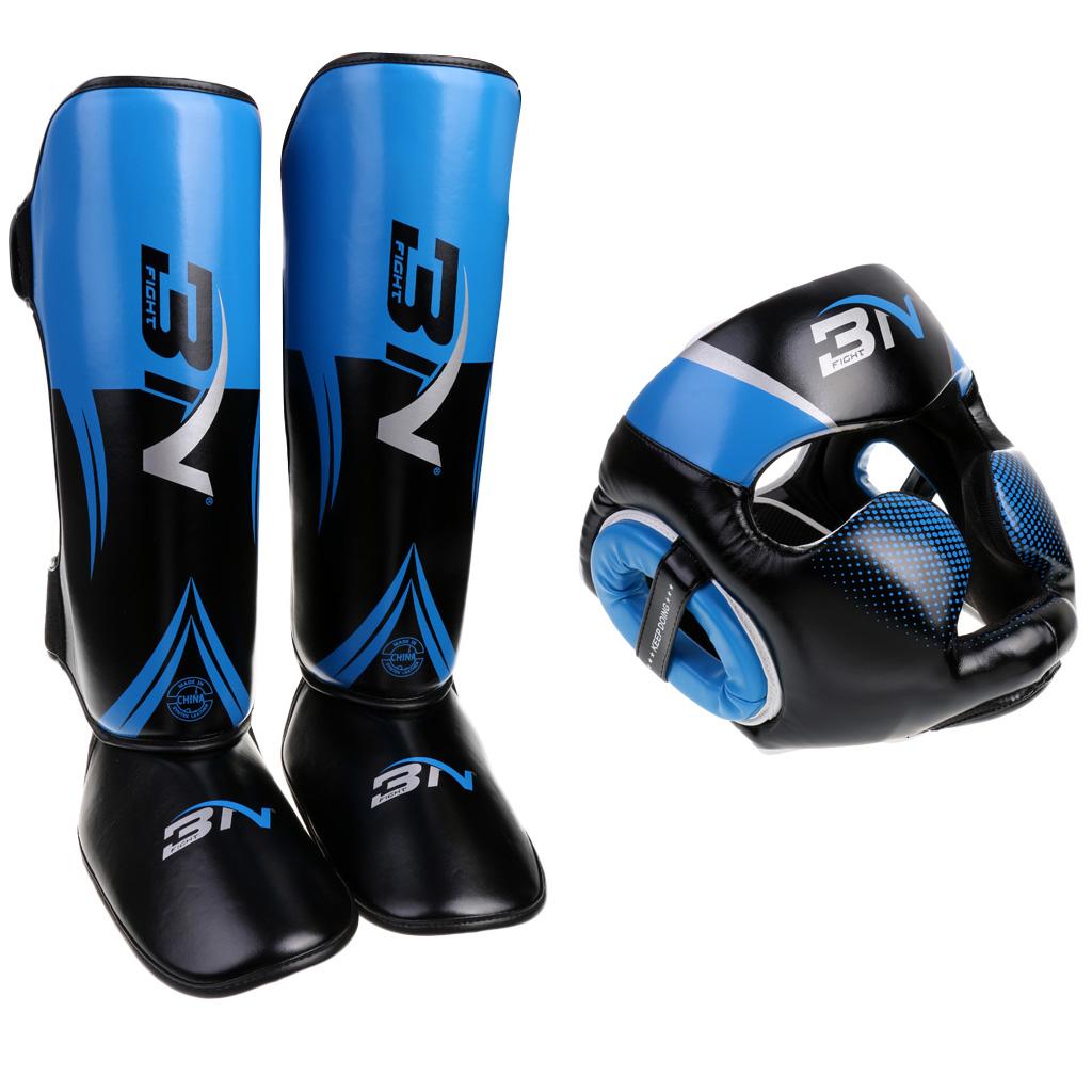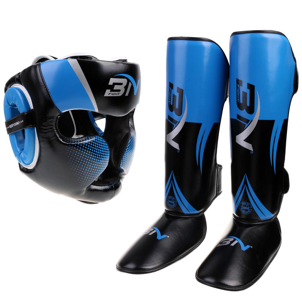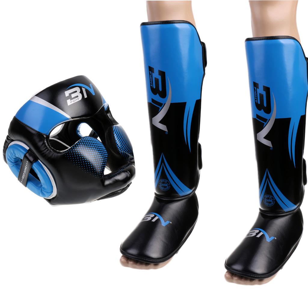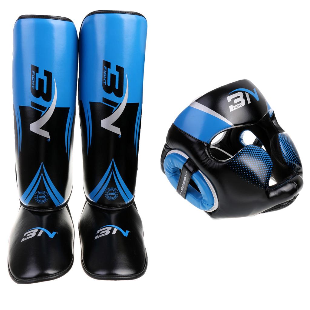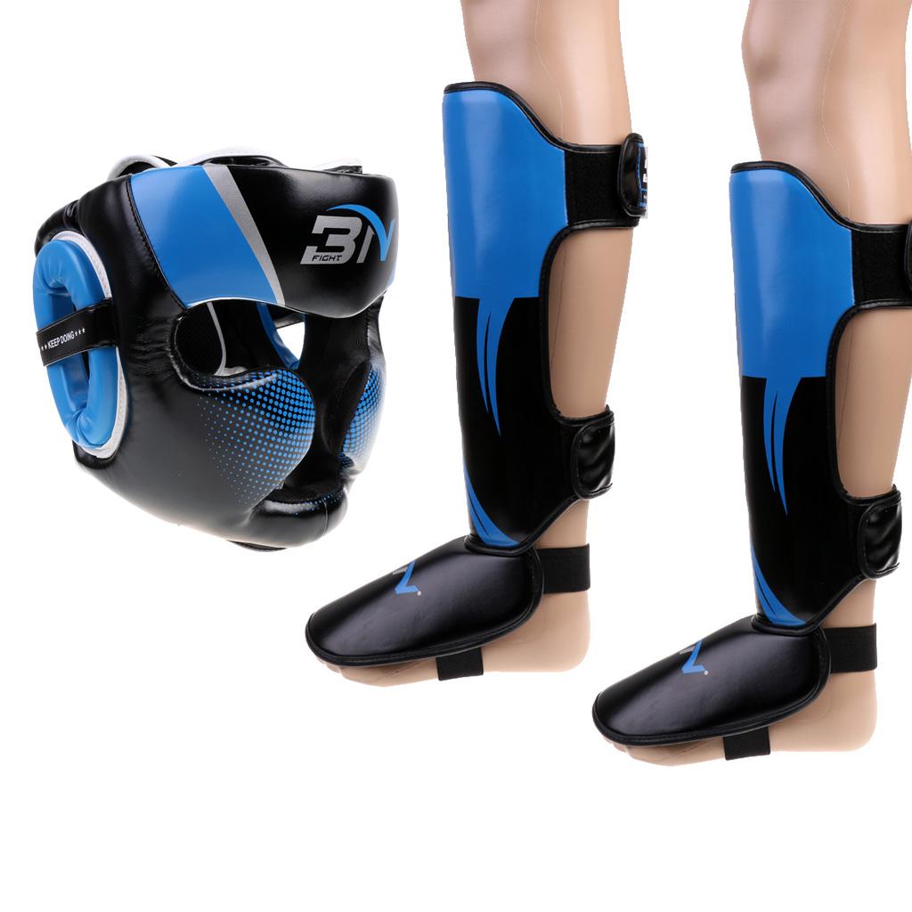 Instep Pads MMA Leg Foot Guards Muay Thai Kick Boxing Shin Guards + Helmet