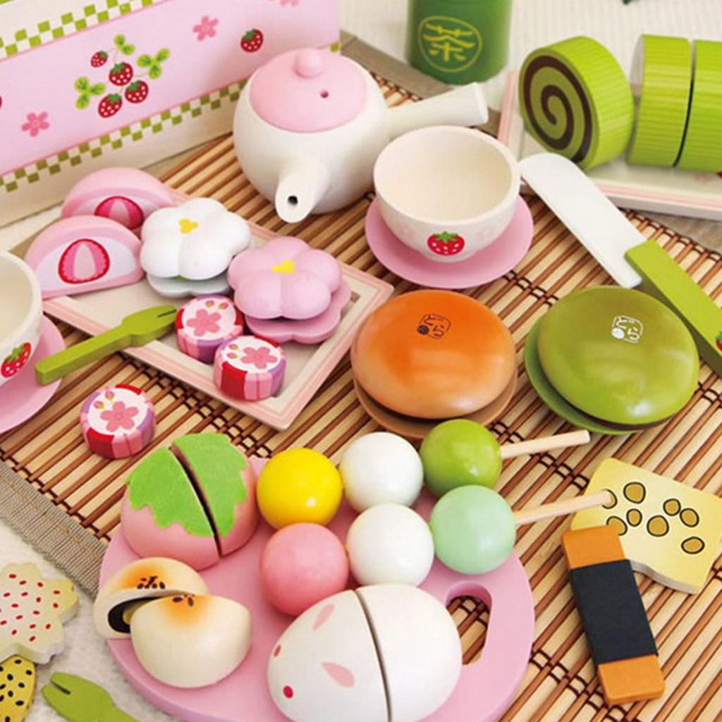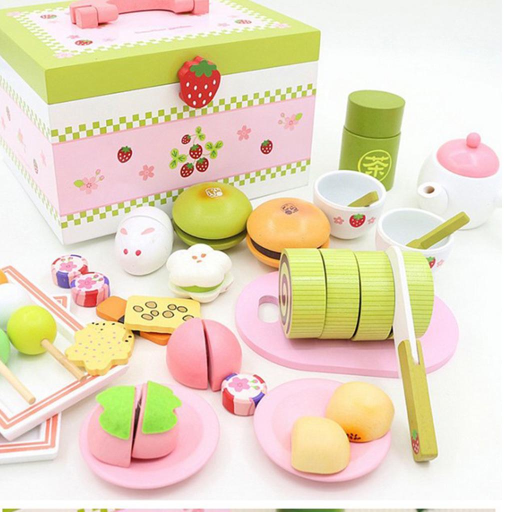 Wooden Kitchen Pretend Play Birthday Cake Cutting Play Food Creative Toy Set